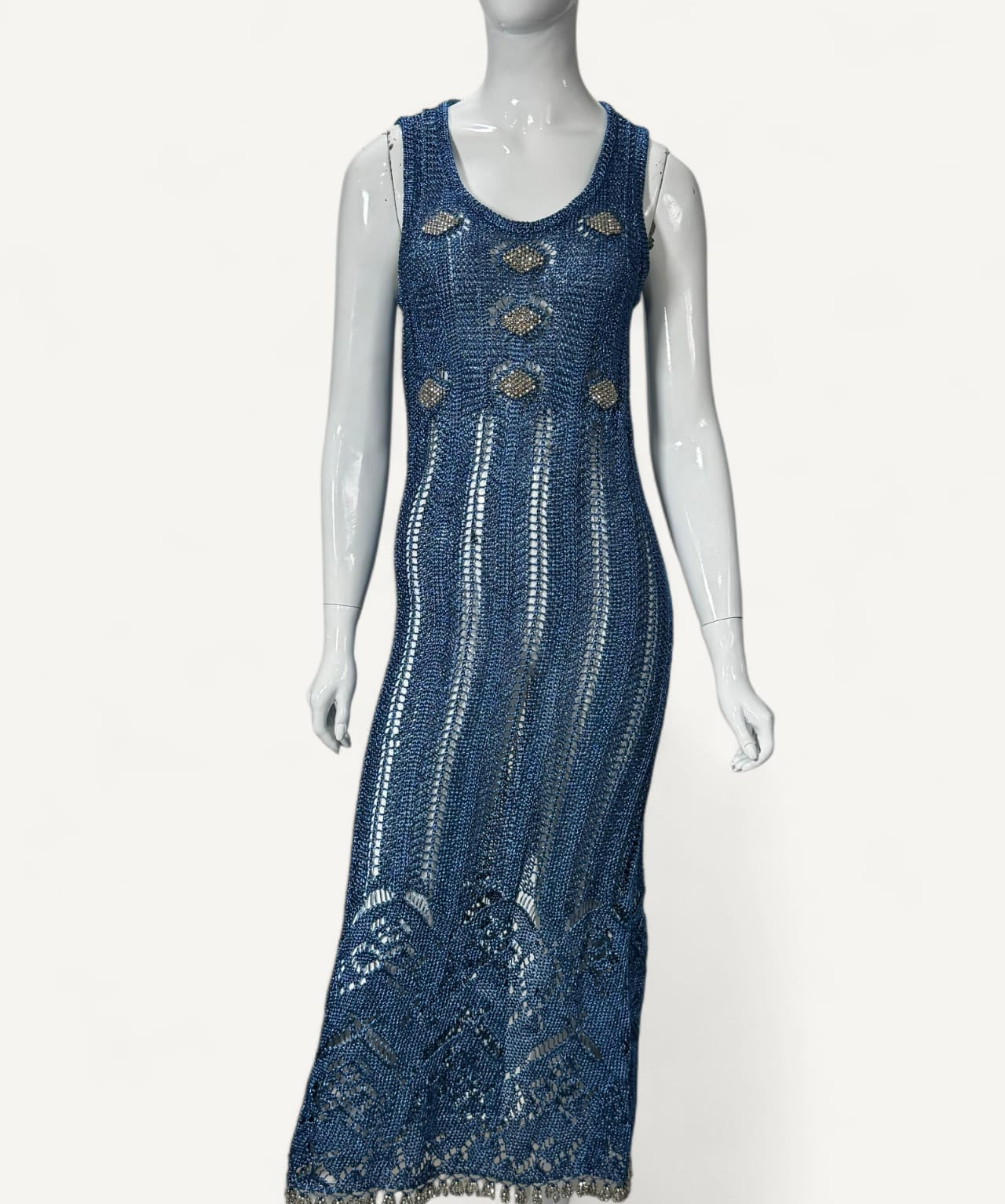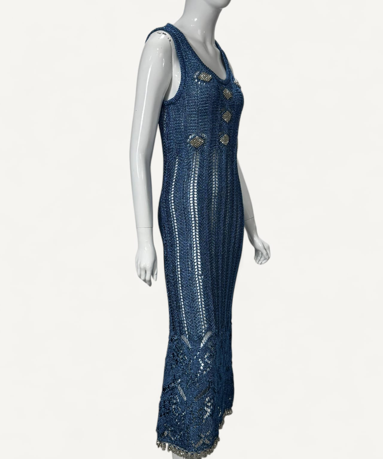 Vestido Rabanne Midi de Tricô com Detalhe em Aplicações