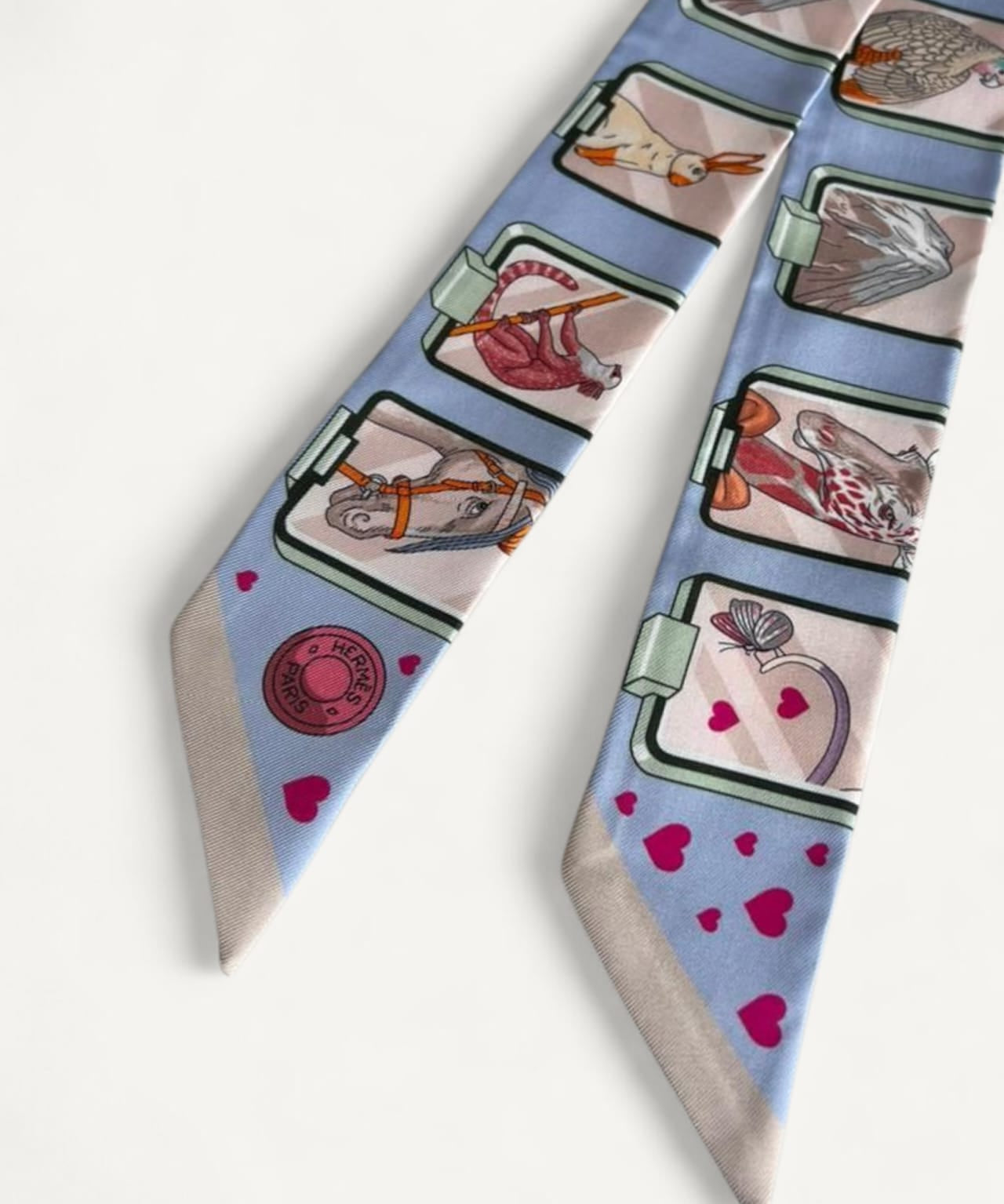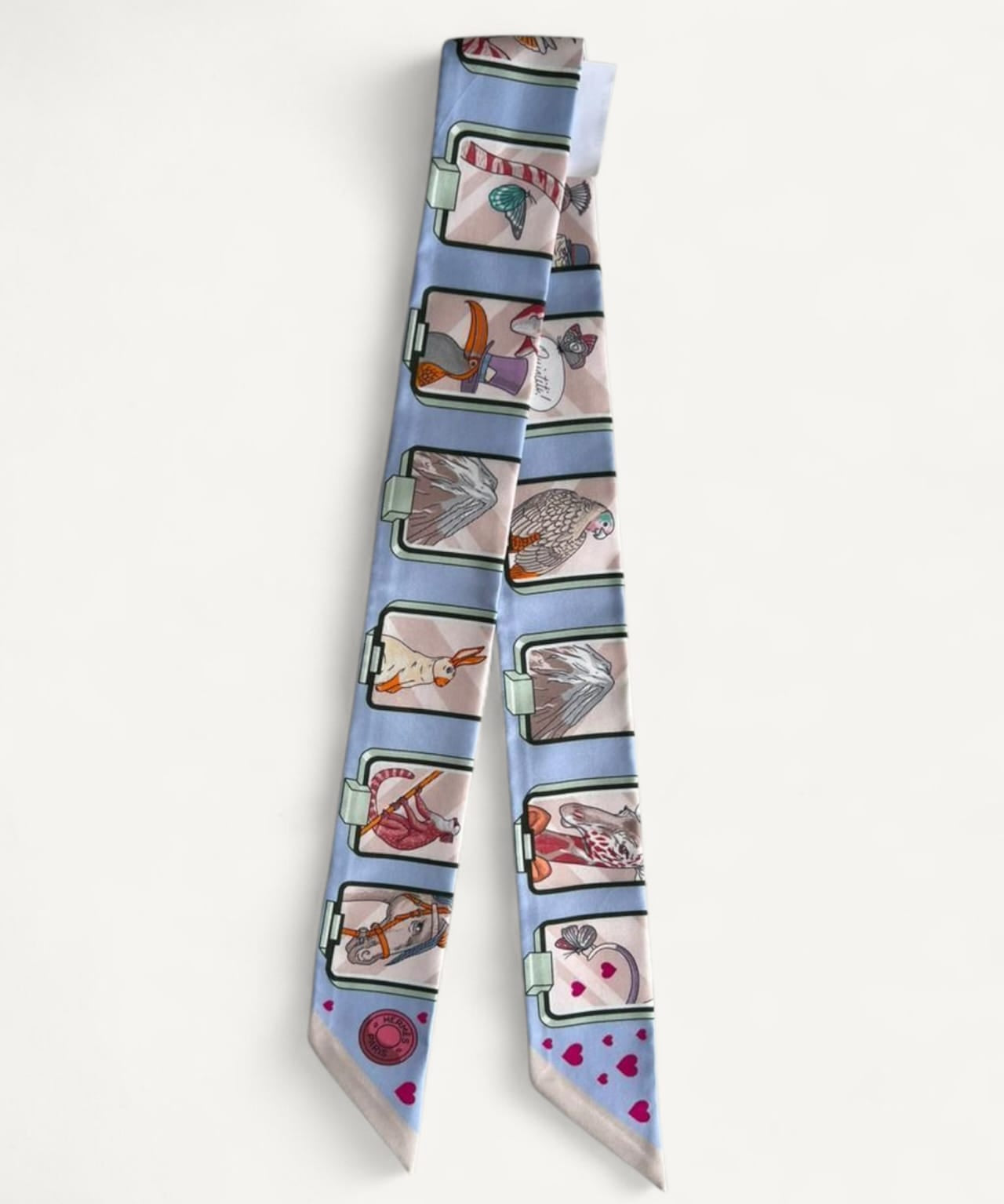 Twilly Hermès Hermes Story Blue Pale Rose Vert Scarf