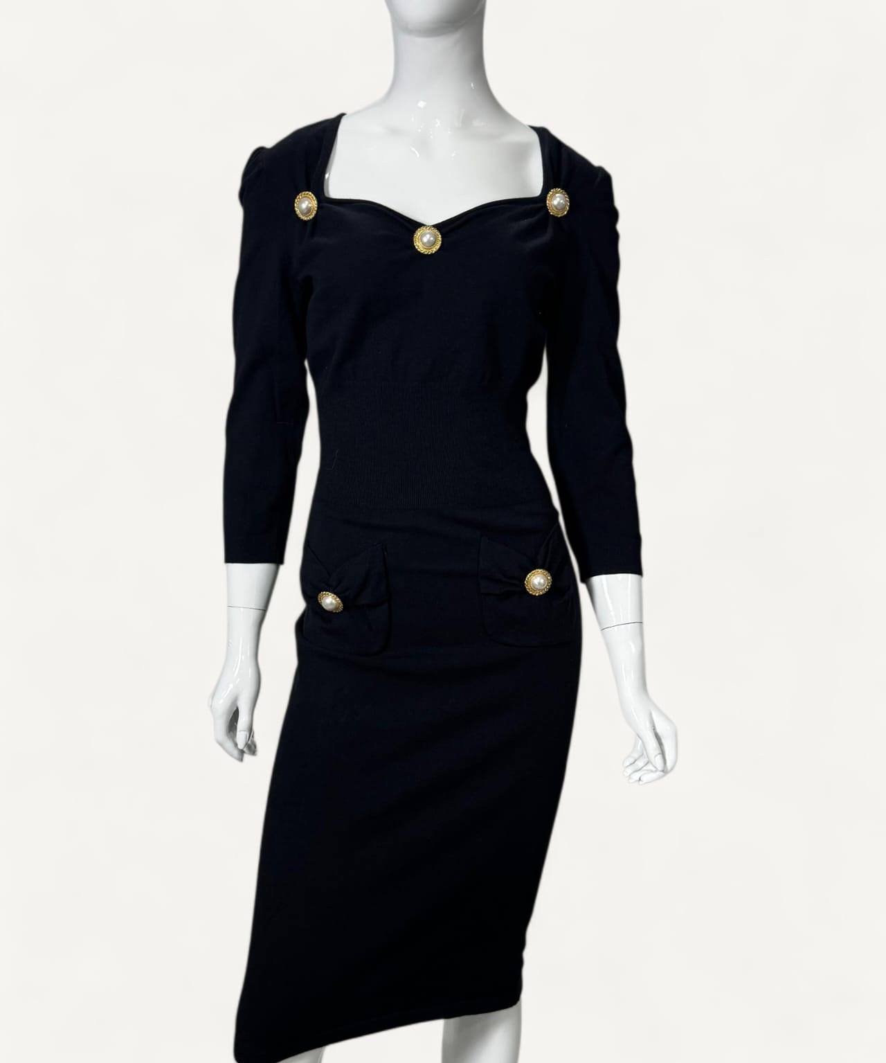 Vestido Burberry Midi em Malha Preta com Elos Prateados