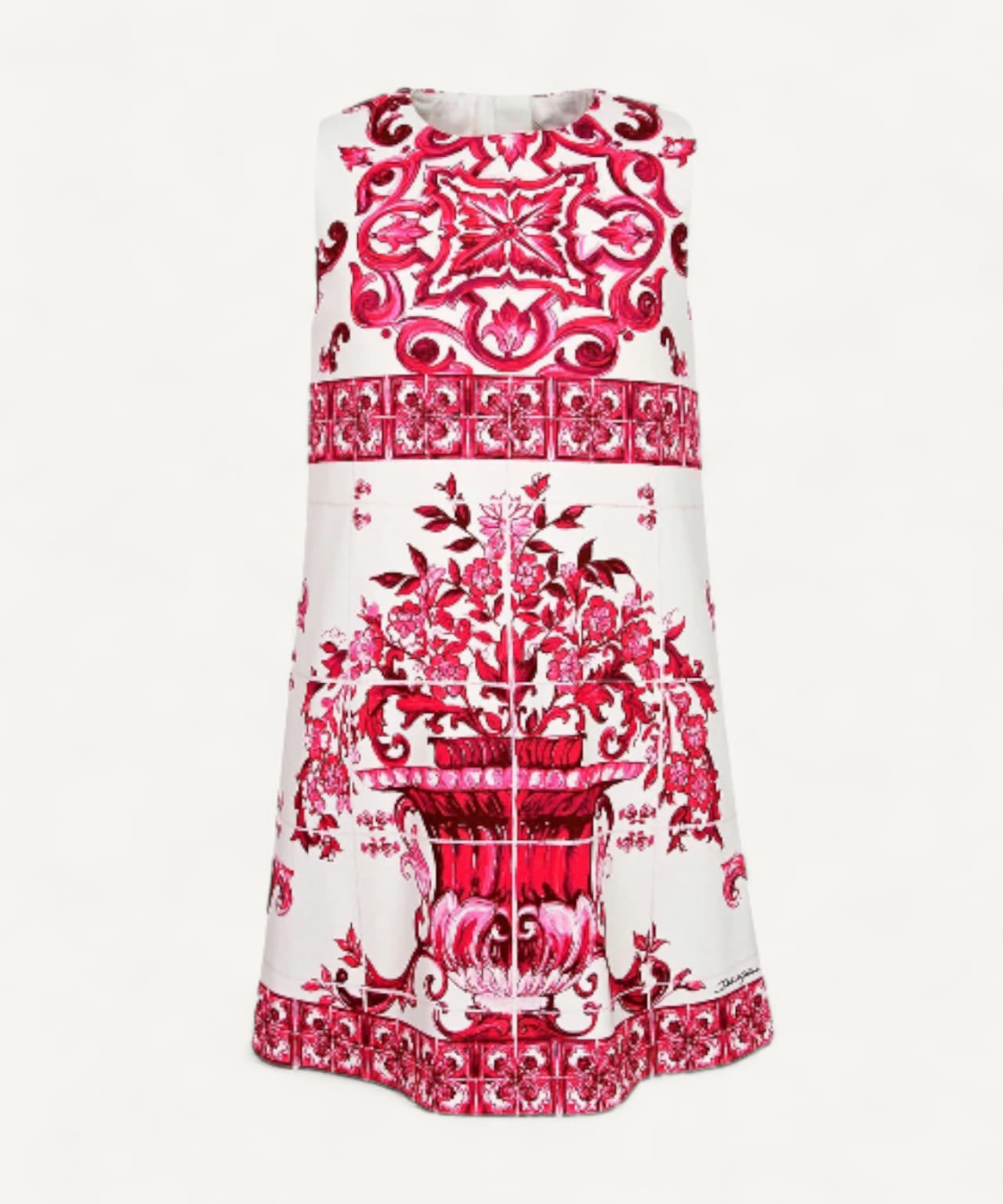 Vestido Infantil Dolce & Gabbana com Estampa Majolica Rosa Fúcsia