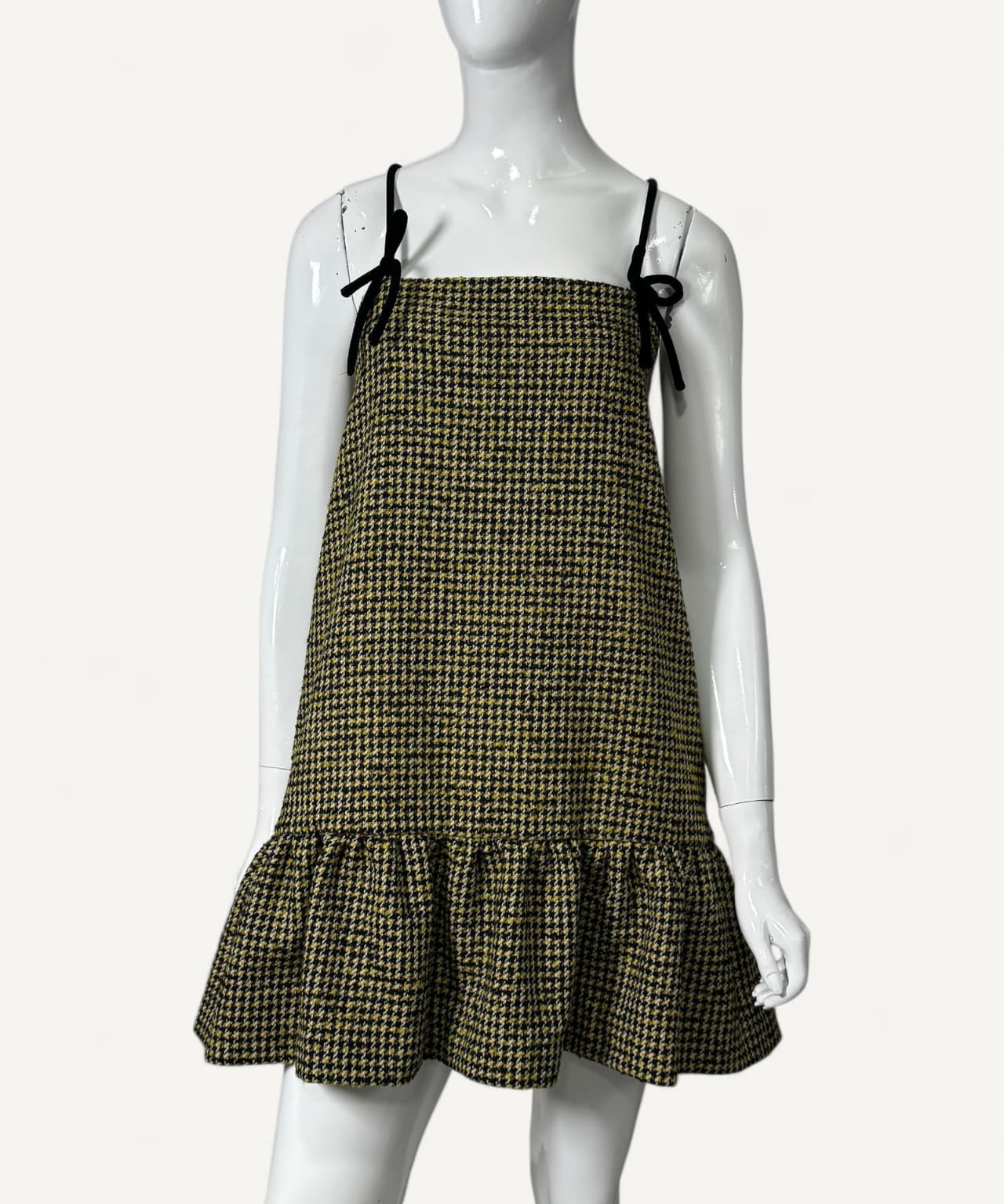 Vestido Moschino em Couro Preto e Cetim Amarelo