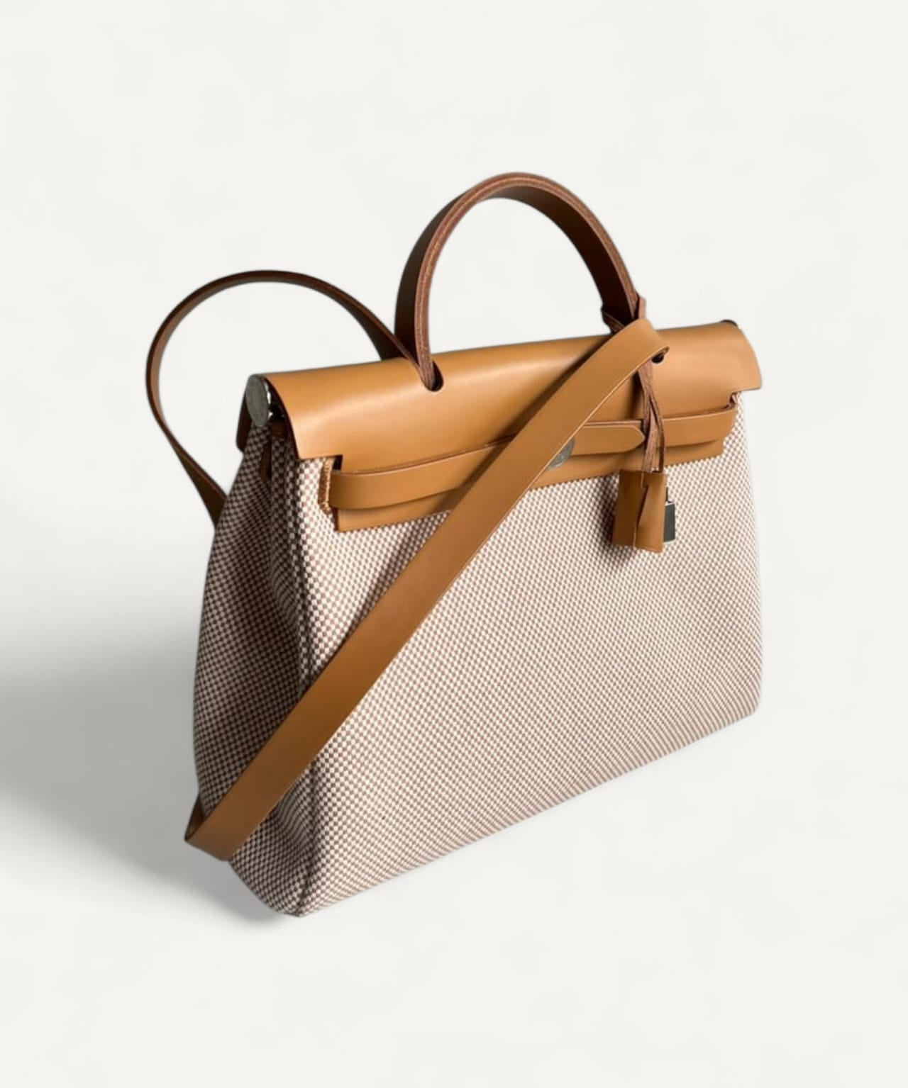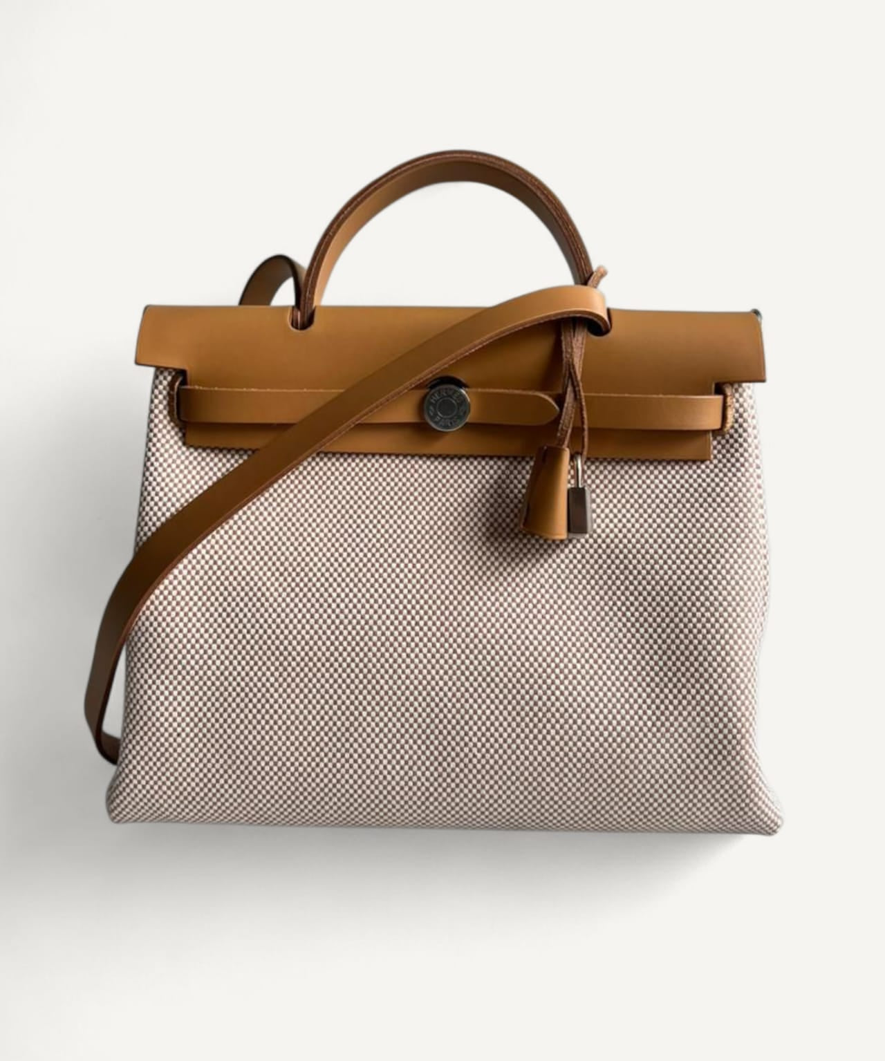 Bolsa Hermès Herbag 31 Ecru Viking Criss Toile com Ferragens Palladium