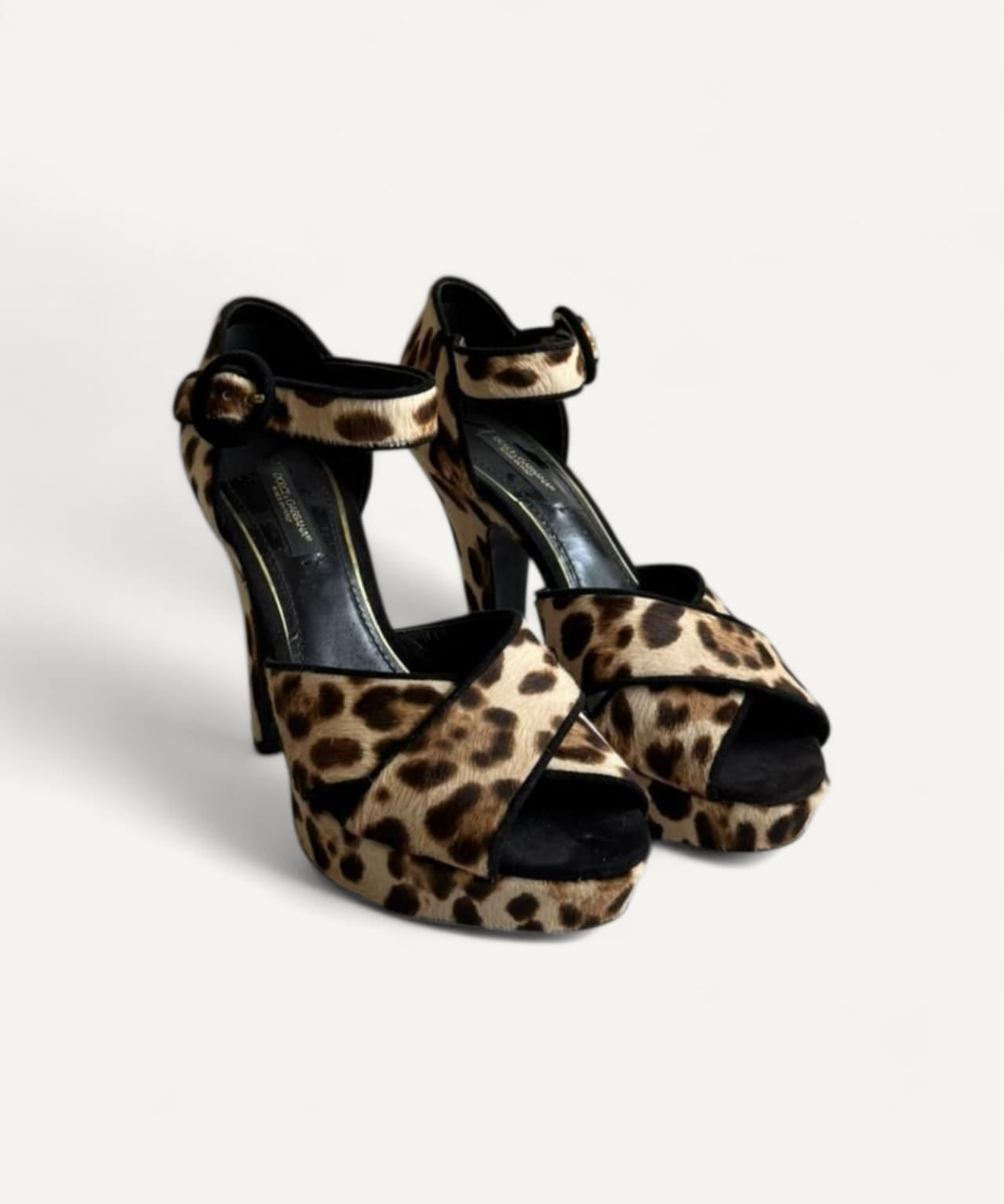 Sandália Dolce & Gabbana Leopard Print Fabric Ankle Strap Block Heel