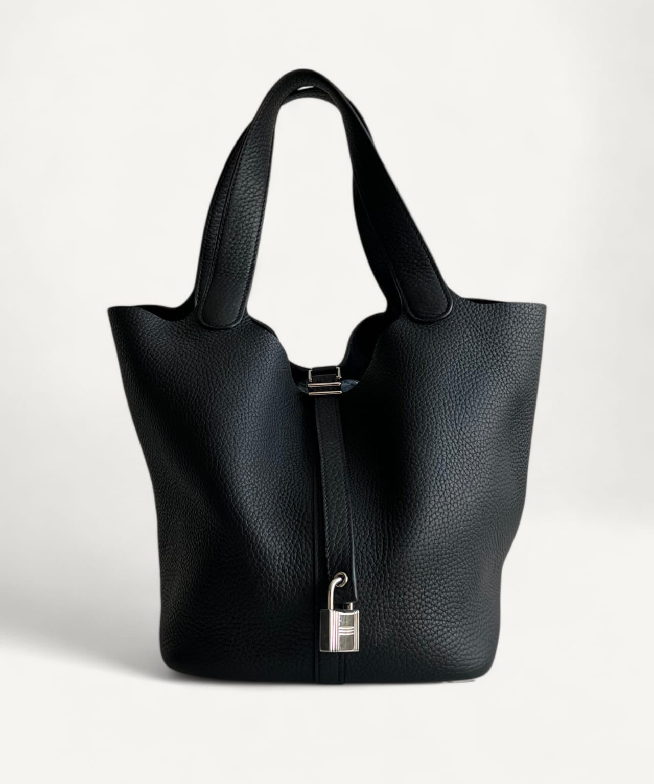 Bolsa Hermès Picotin 22 Clemence Noir com Ferragens Palladium