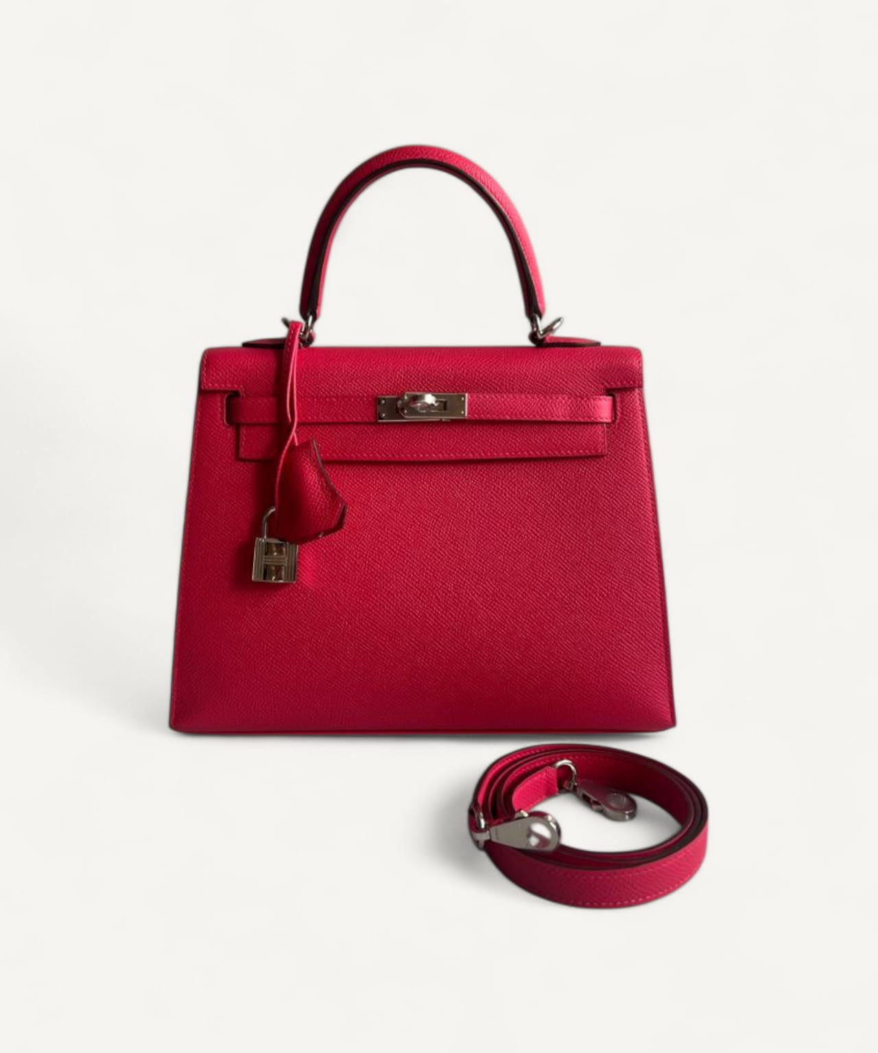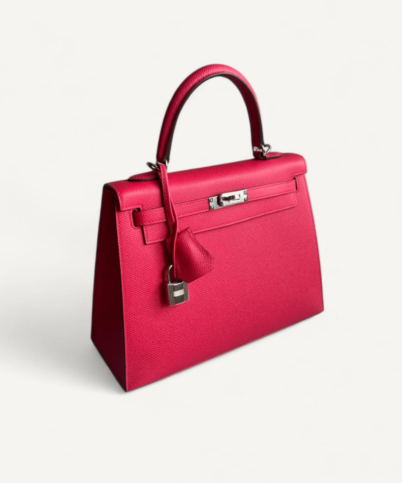 Bolsa Hermès Kelly Sellier 25 Rose Extrême com Ferragens Palladium