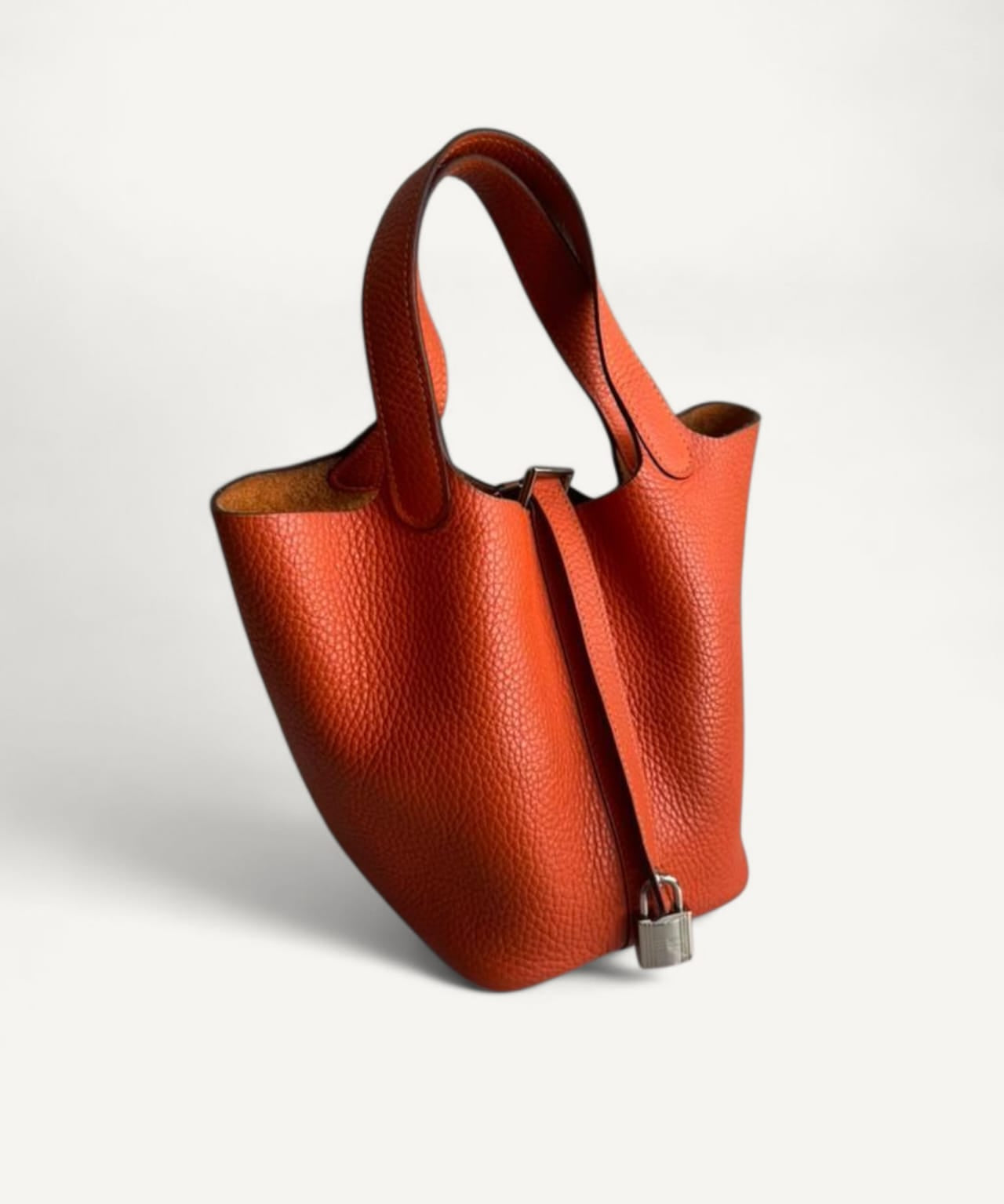 Bolsa Hermès Picotin 18 Clemence Orange com Ferragens Palladium