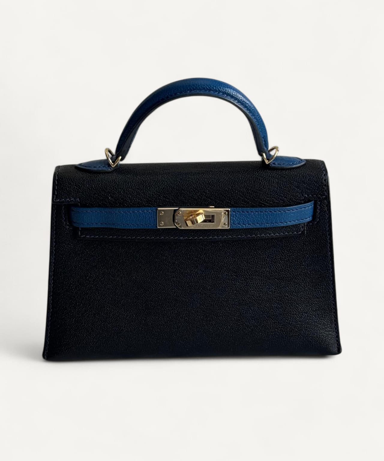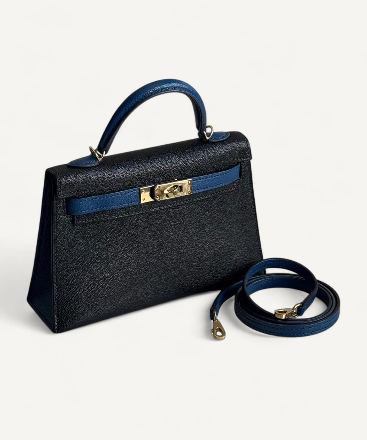 Bolsa Hermès Mini Kelly Chevre Bleu de Minuit|Bleu Electrique com Ferragens Gold