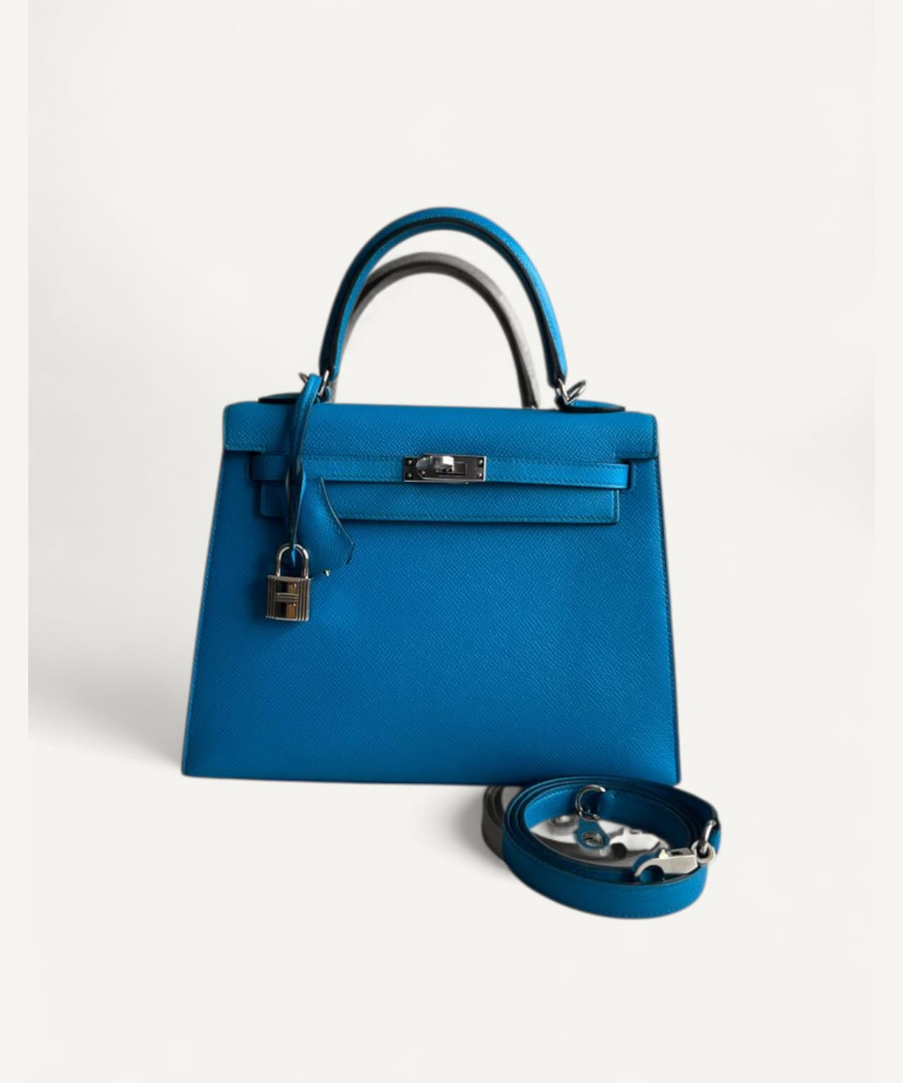 Bolsa Hermès Kelly 25 Sellier Bleu Zanzibar com Ferragens Palladium - Stamp Y