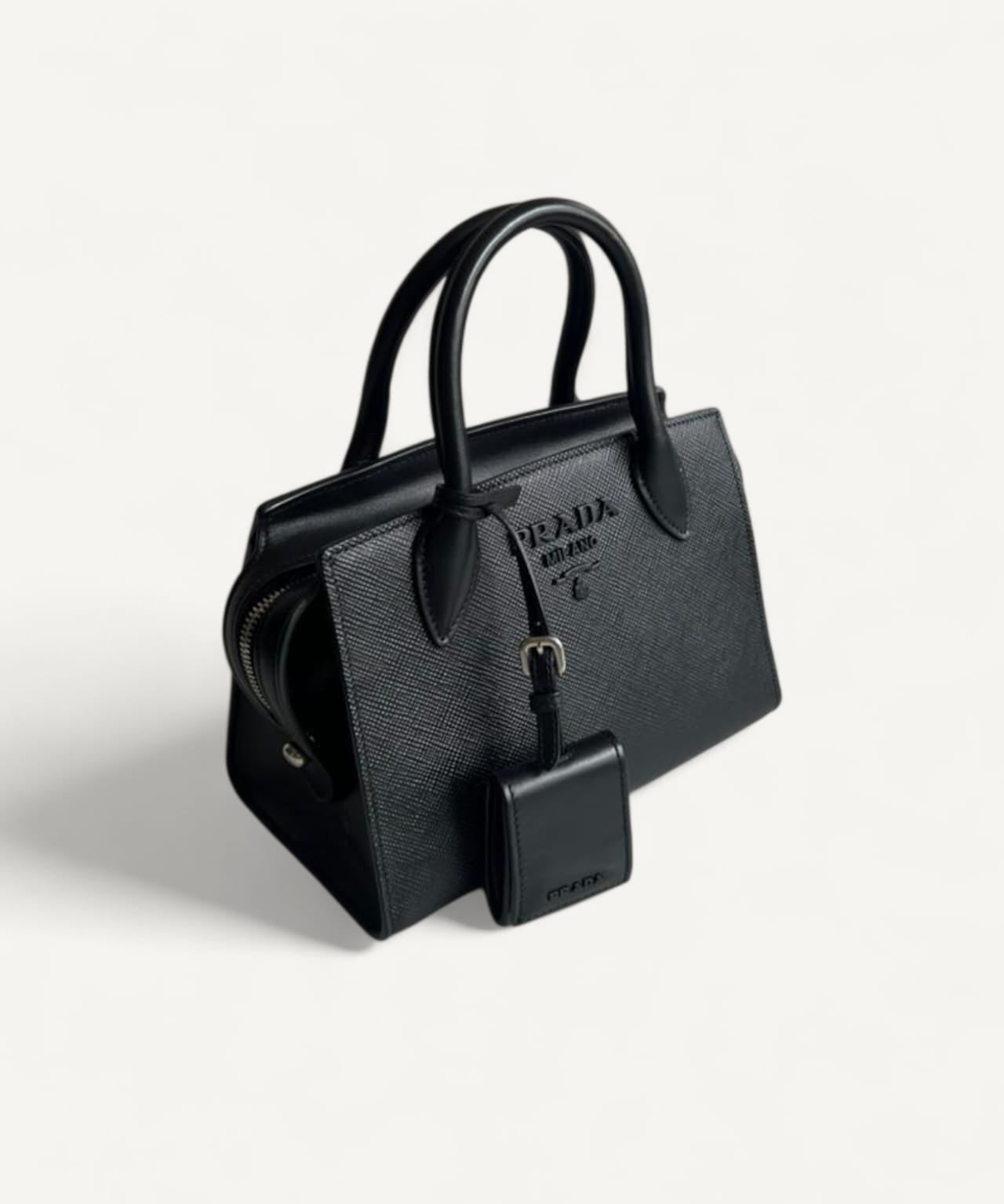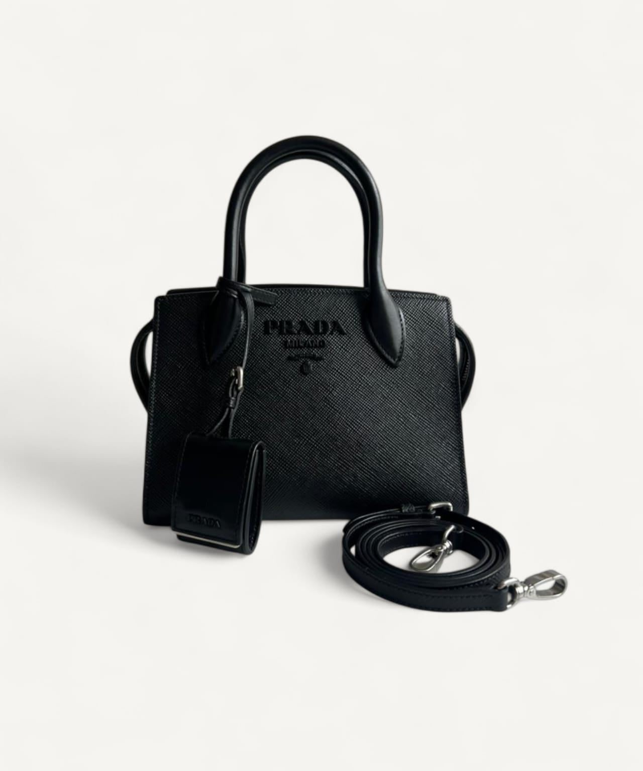 Bolsa Prada Monochrome Preta com Ferragens Prateadas
