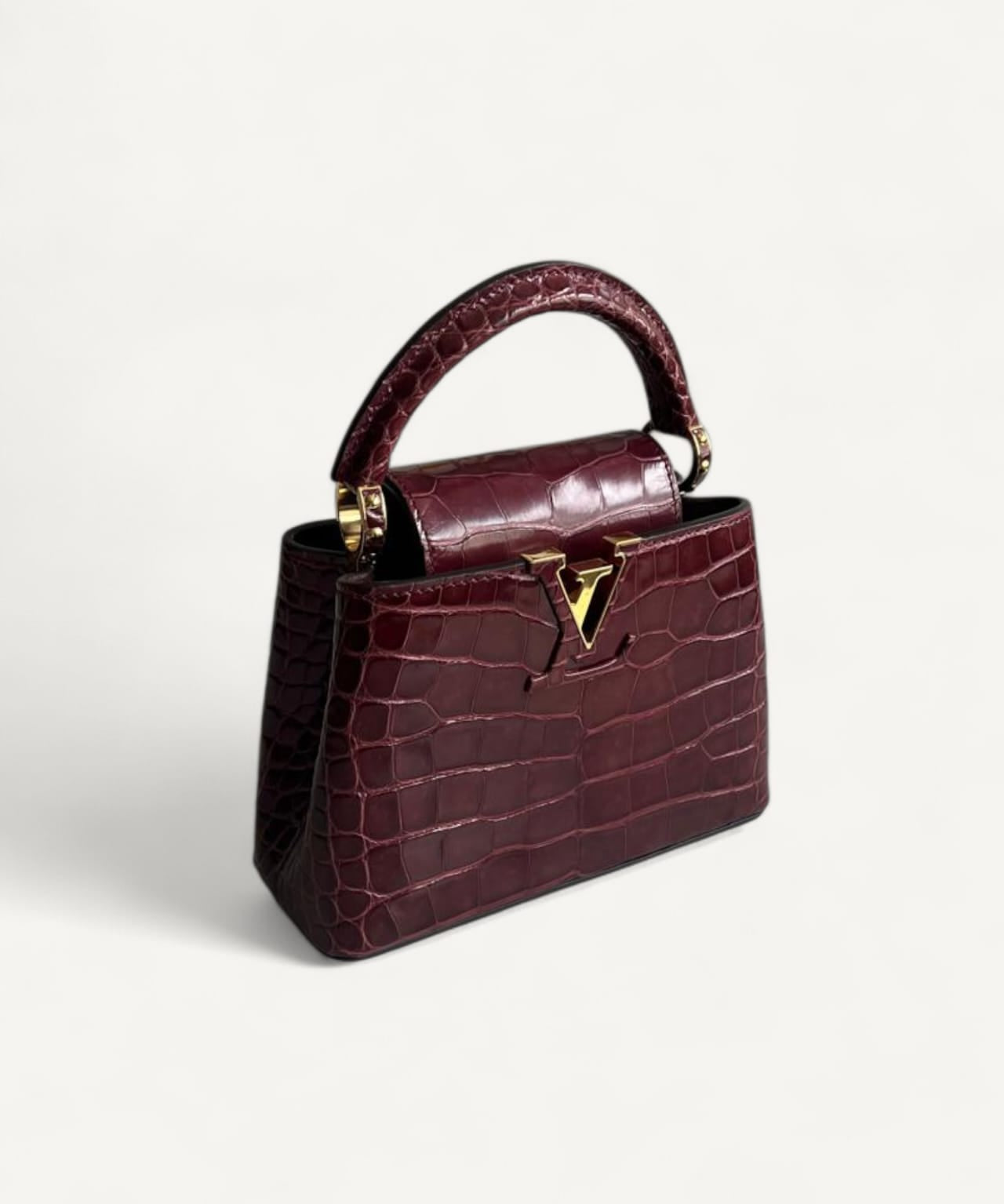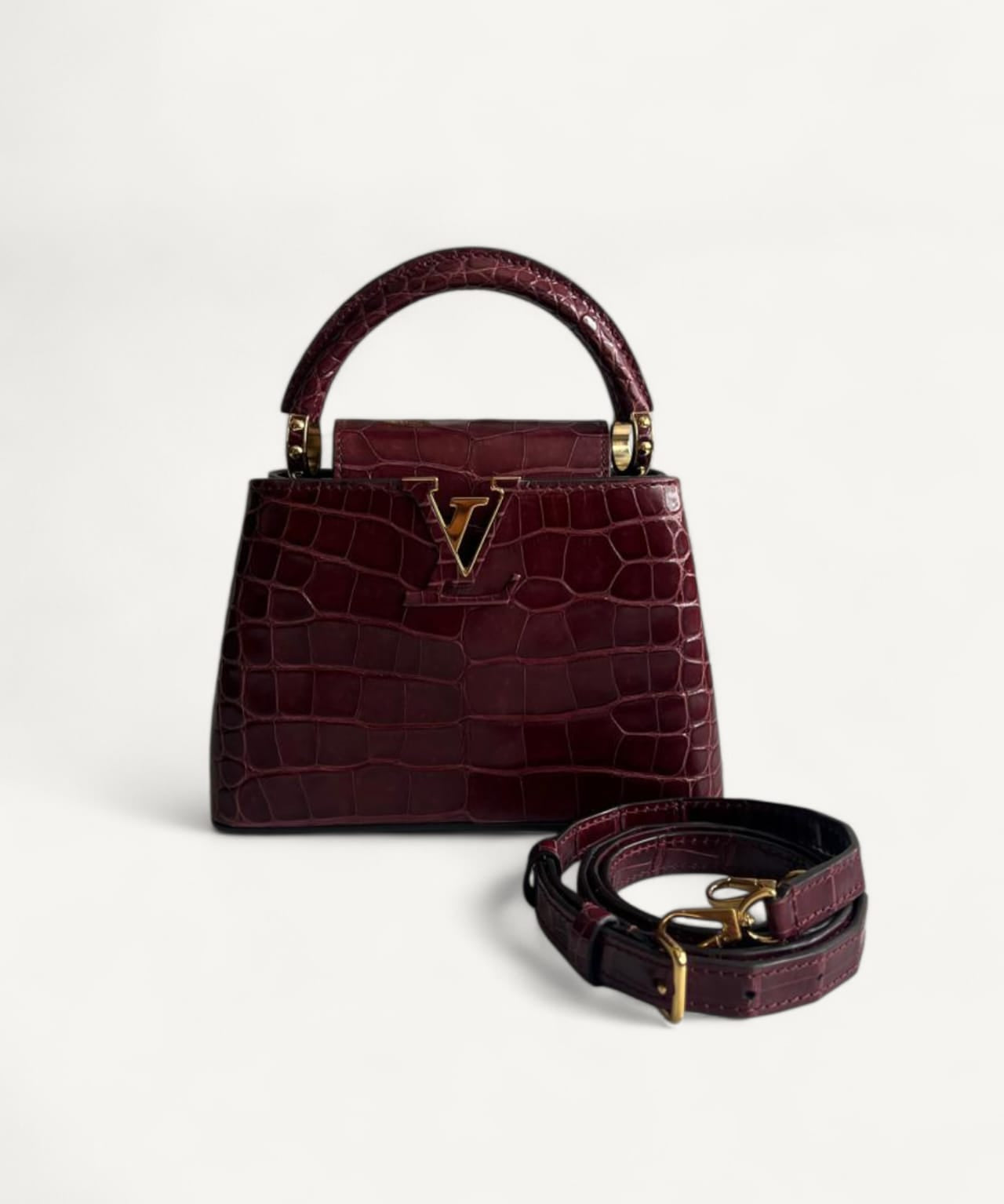 Bolsa Louis Vuitton Mini Capucine Croco Burgundy com Ferragens Douradas