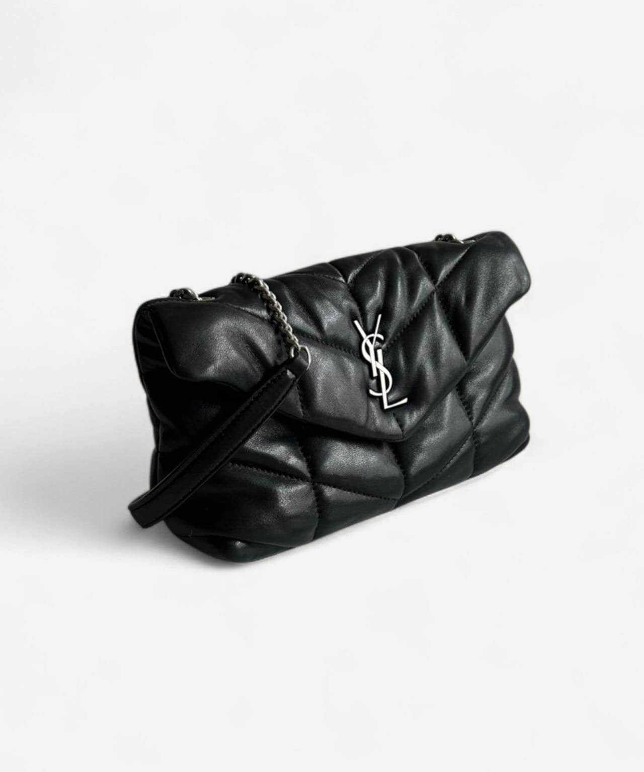 Bolsa Saint Laurent Lou Lou Puffer Preta com Ferragens Prateadas