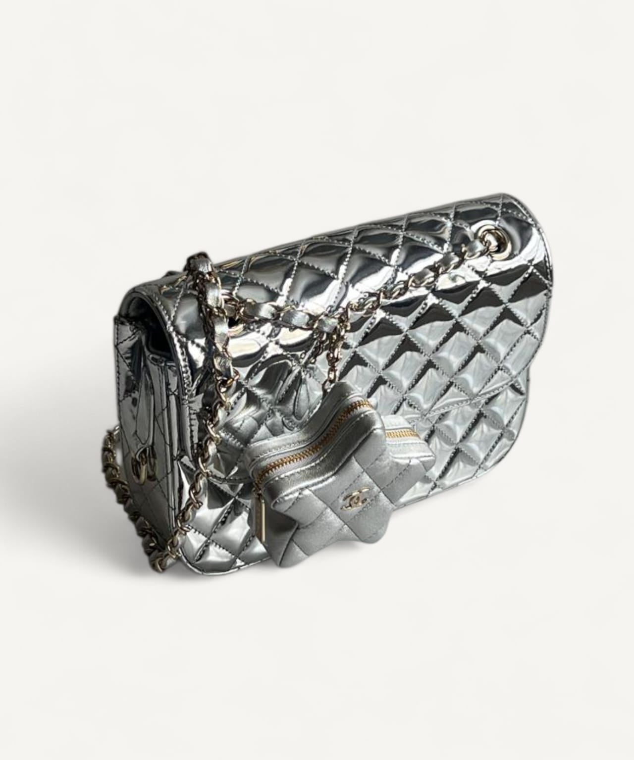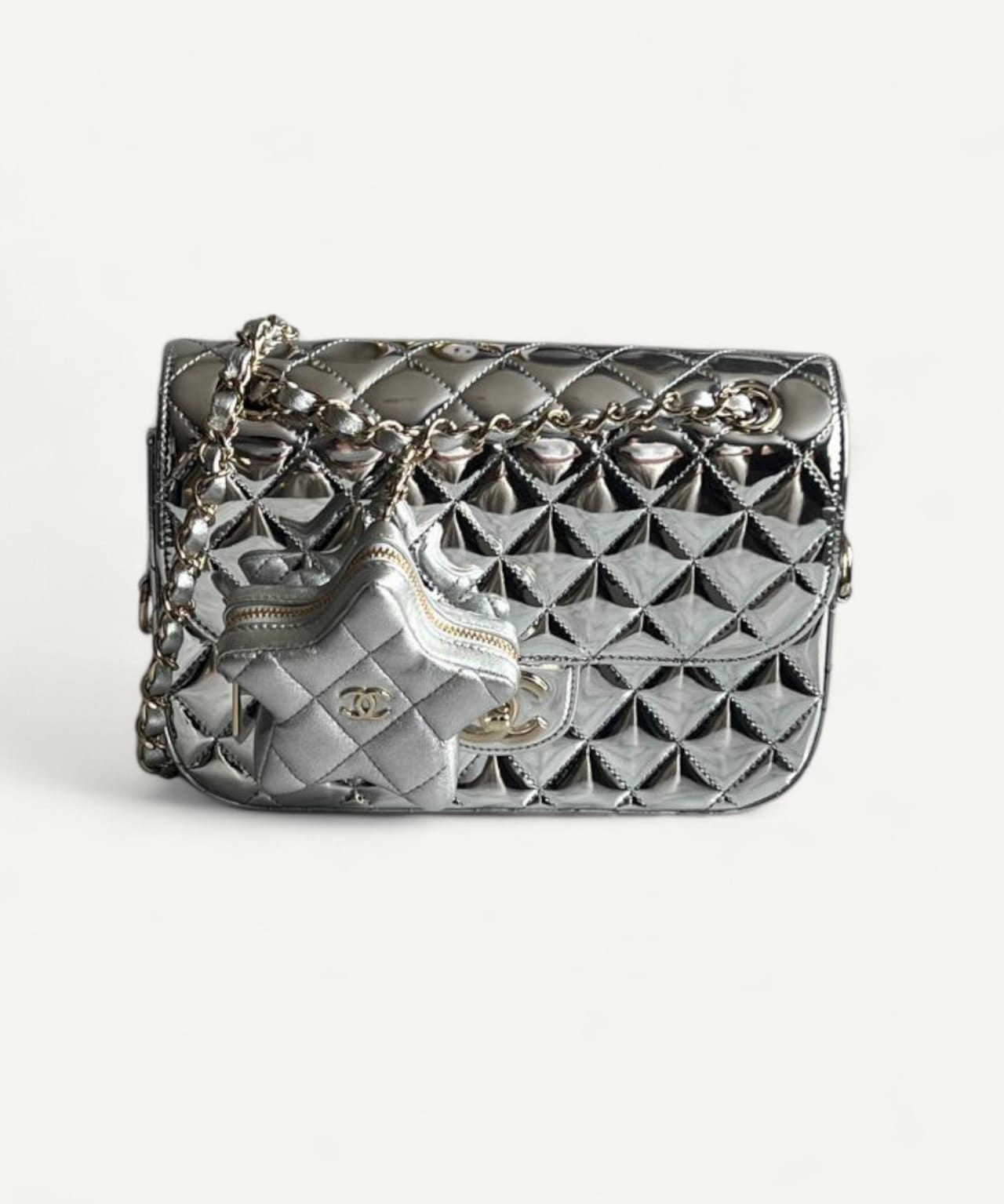 Bolsa Chanel Mirror Backpack w/ Star Coin Calfskin Prata