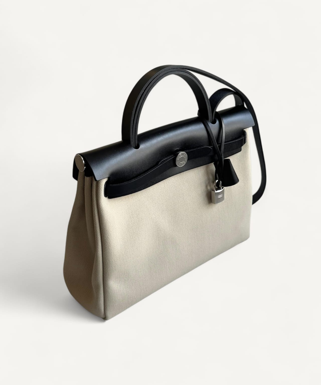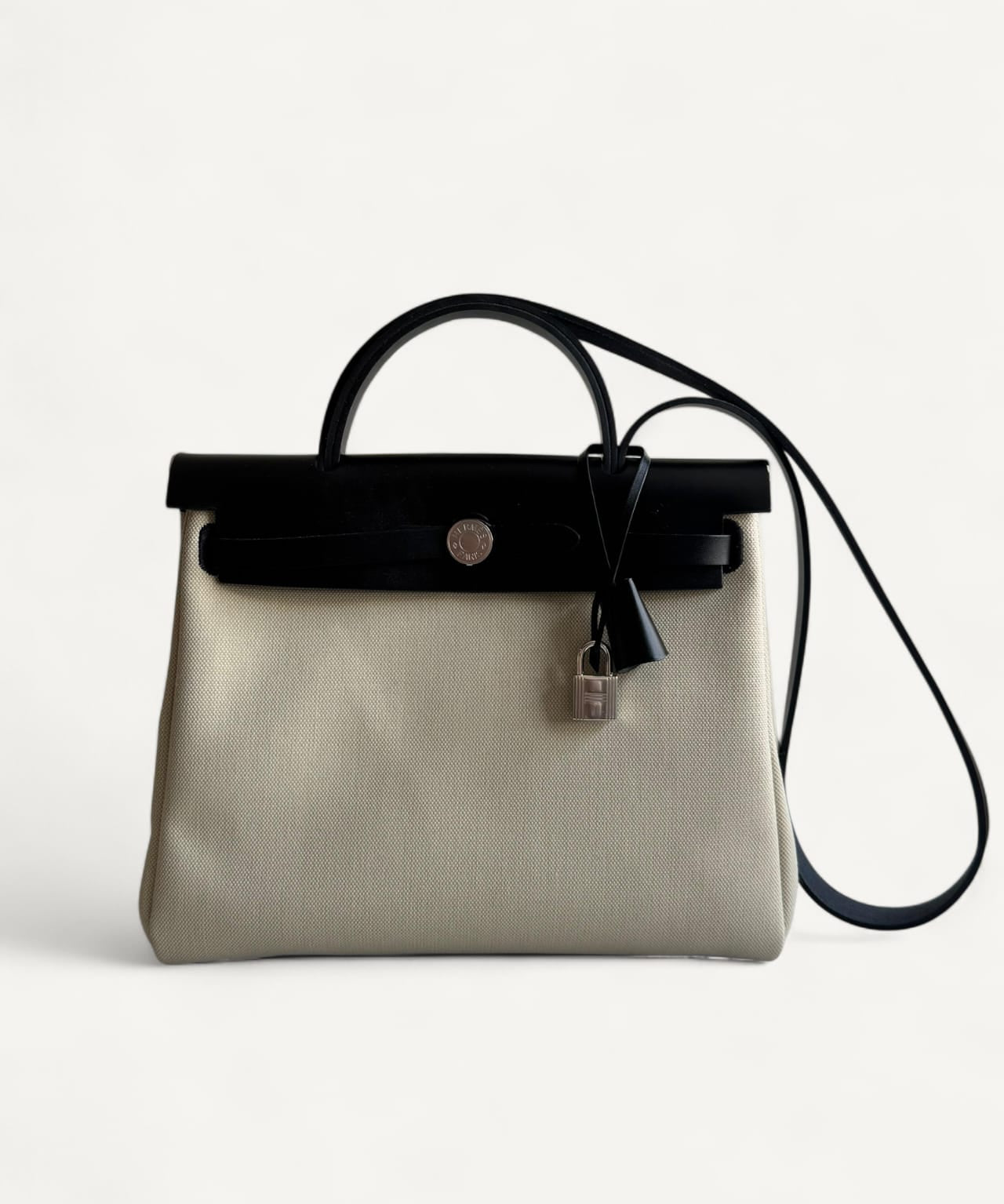 Bolsa Hermès Herbag 31 Ecru|Noir com Ferragens Palladium