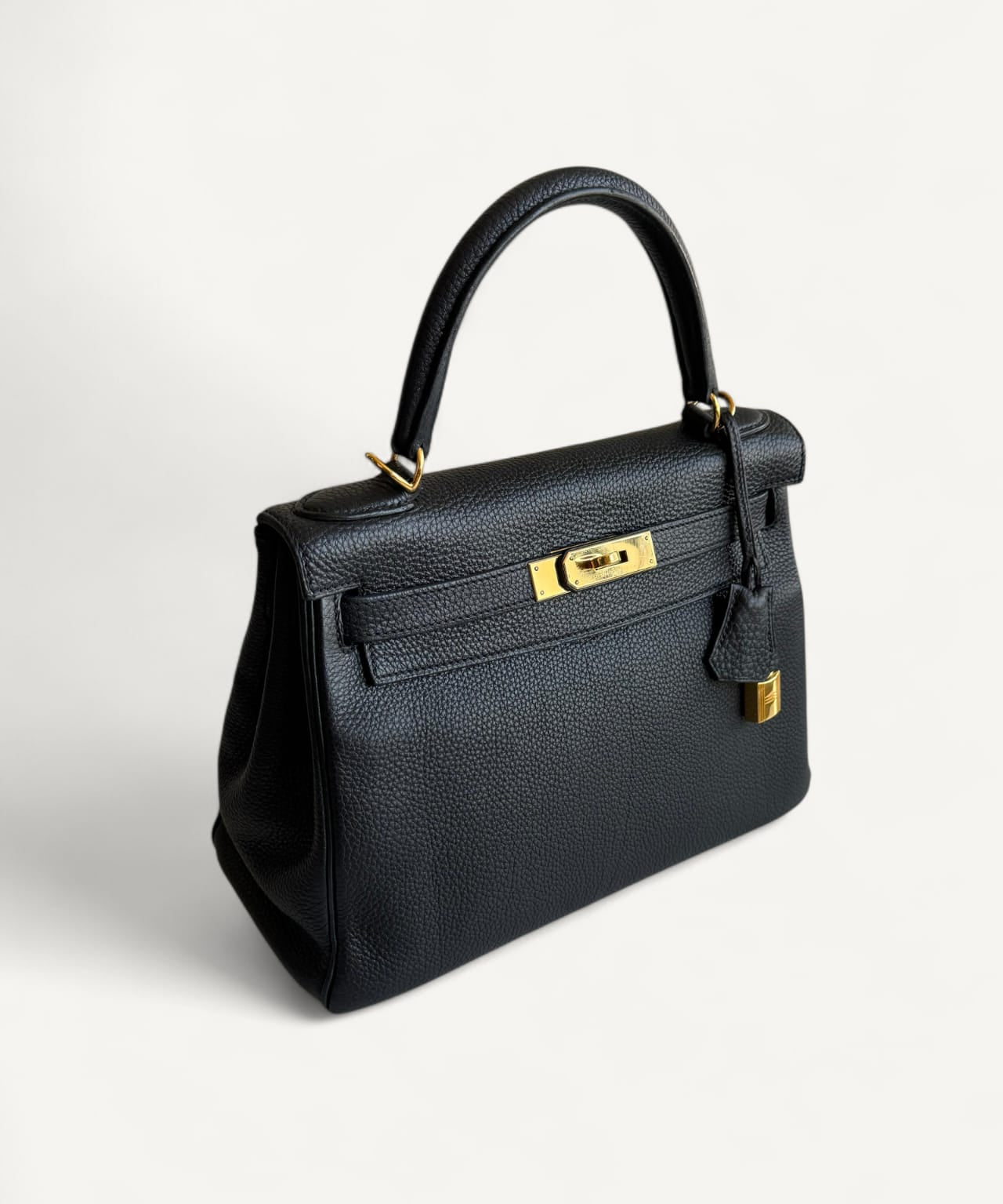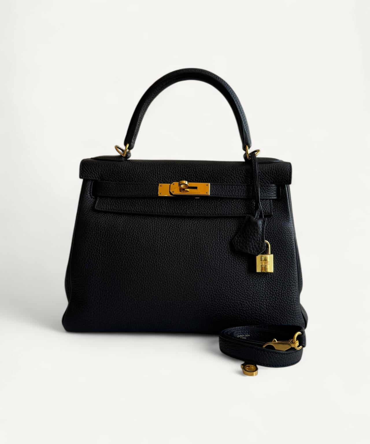 Bolsa Hermés Kelly 28 Togo Noir com Ferragens Gold