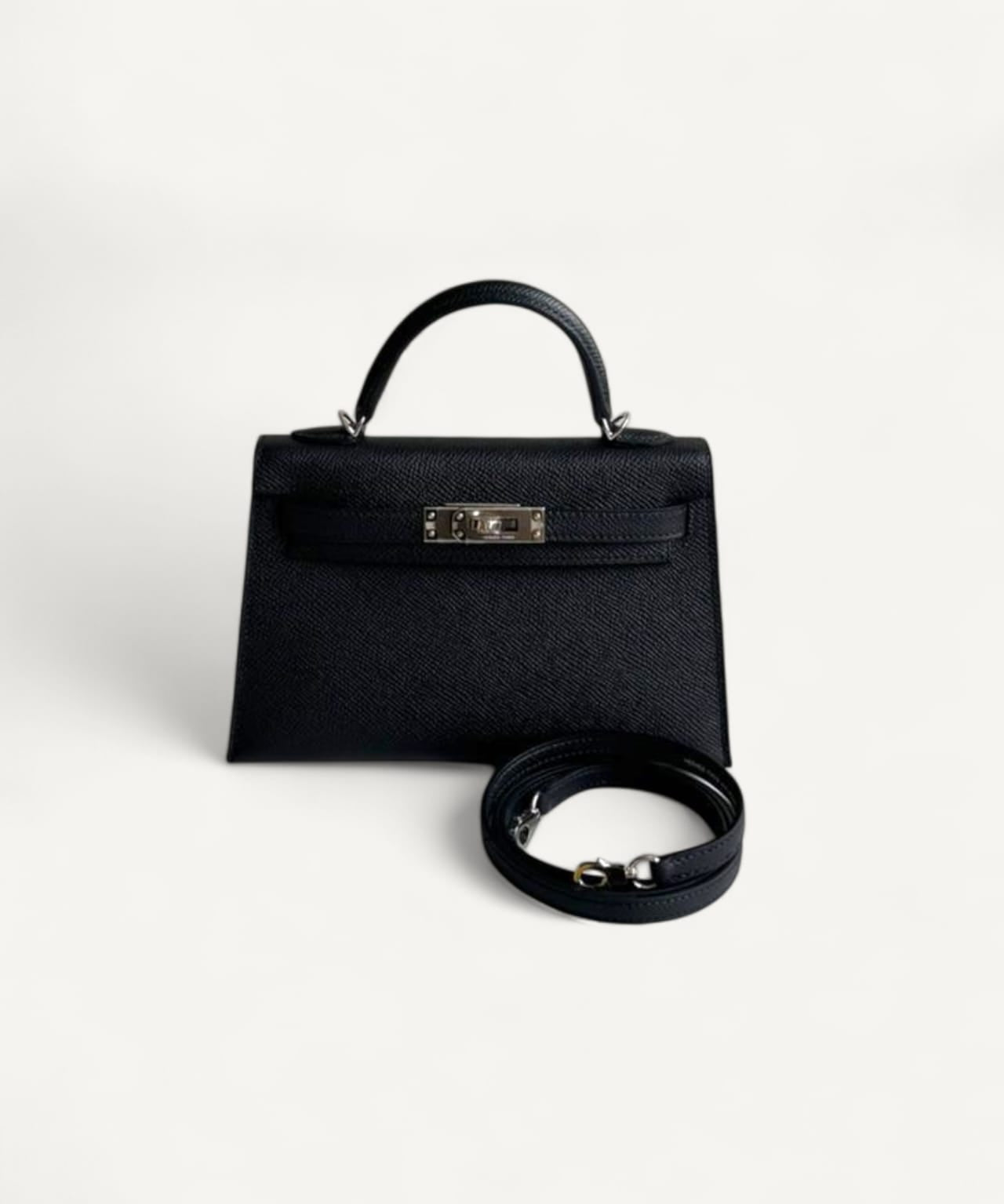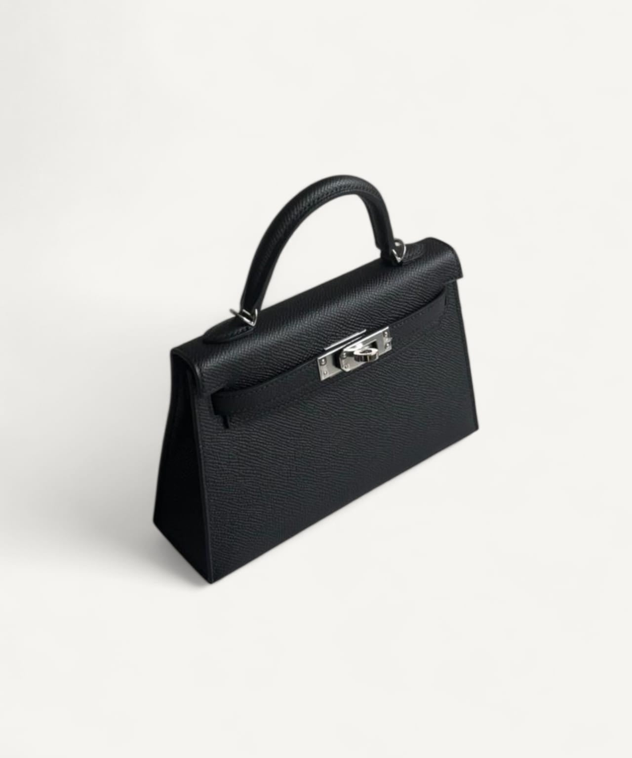 Bolsa Hermès Mini Kelly Epsom Noir com Ferragens Palladium