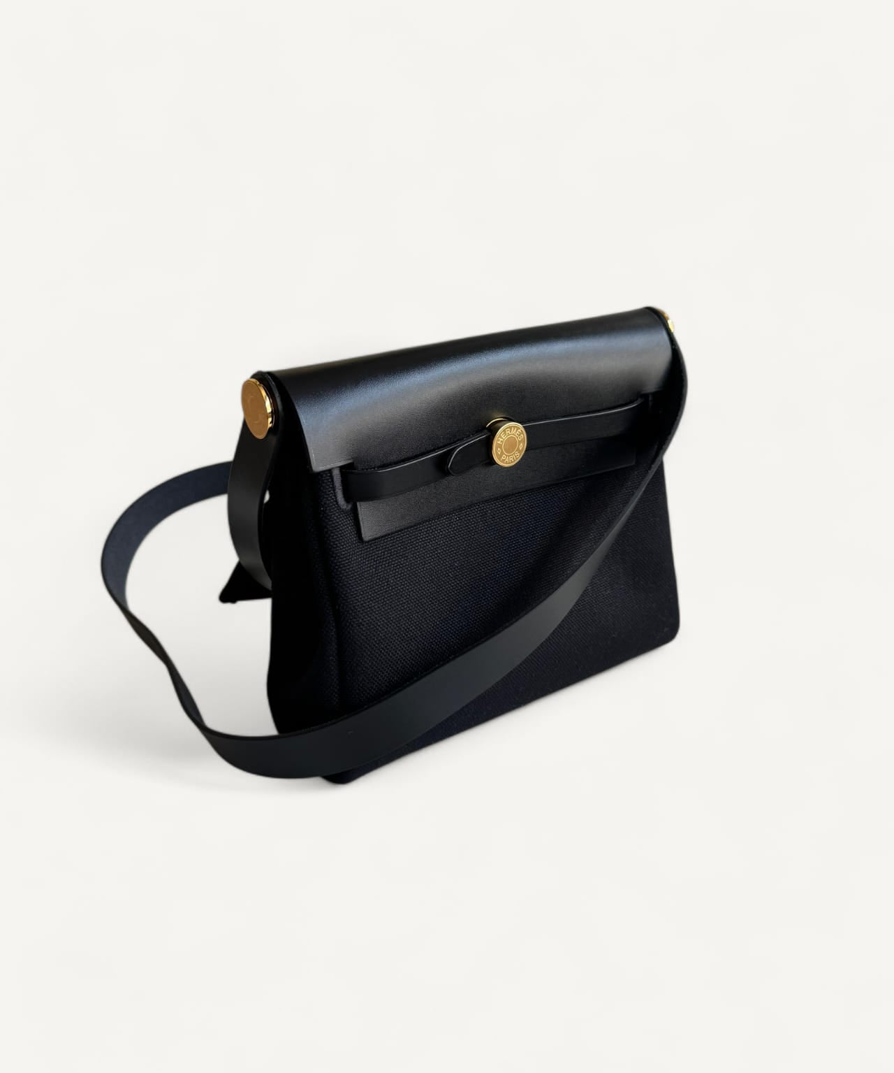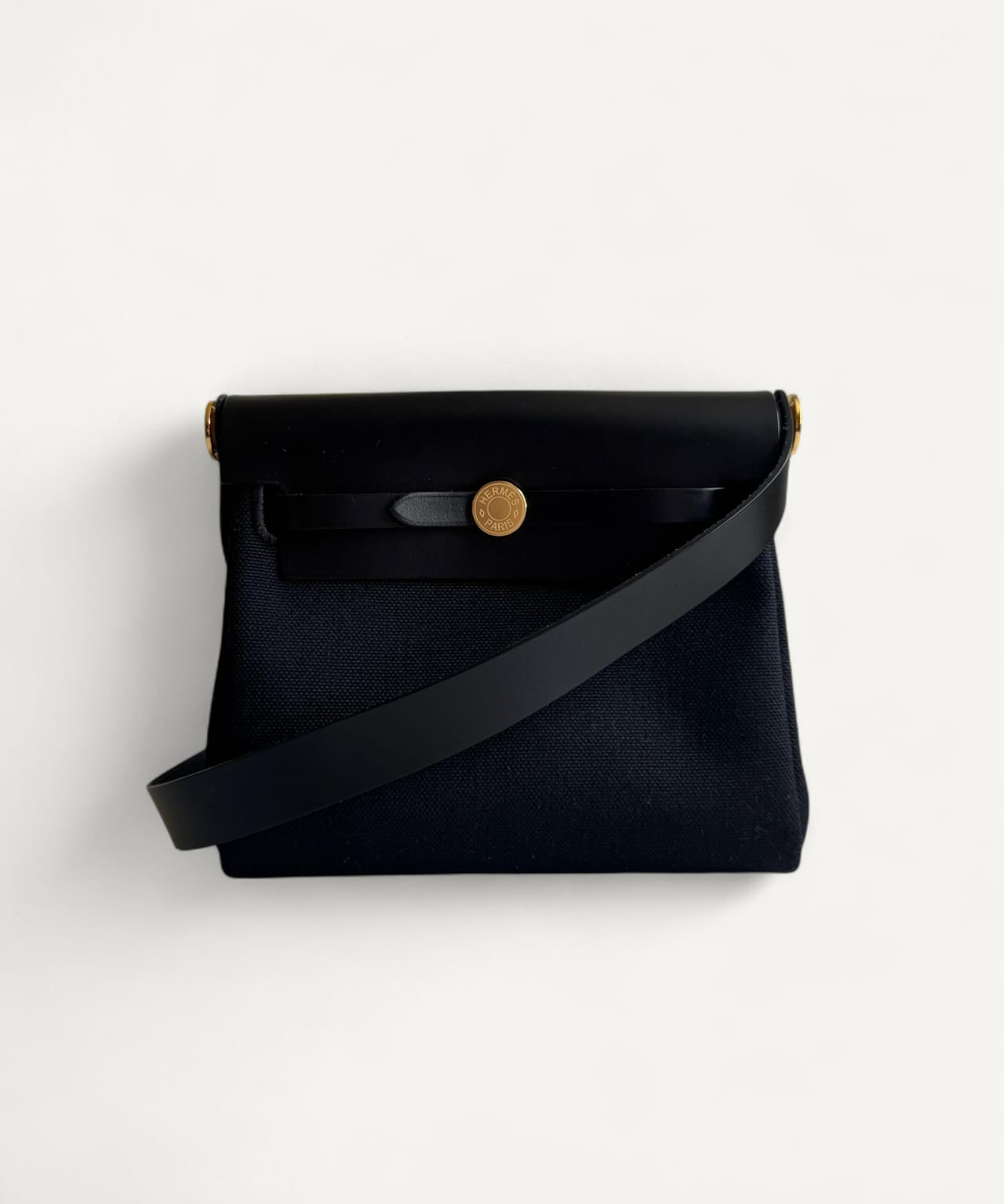 Bolsa Hermès Mini Herbag Noir com Ferragens Gold