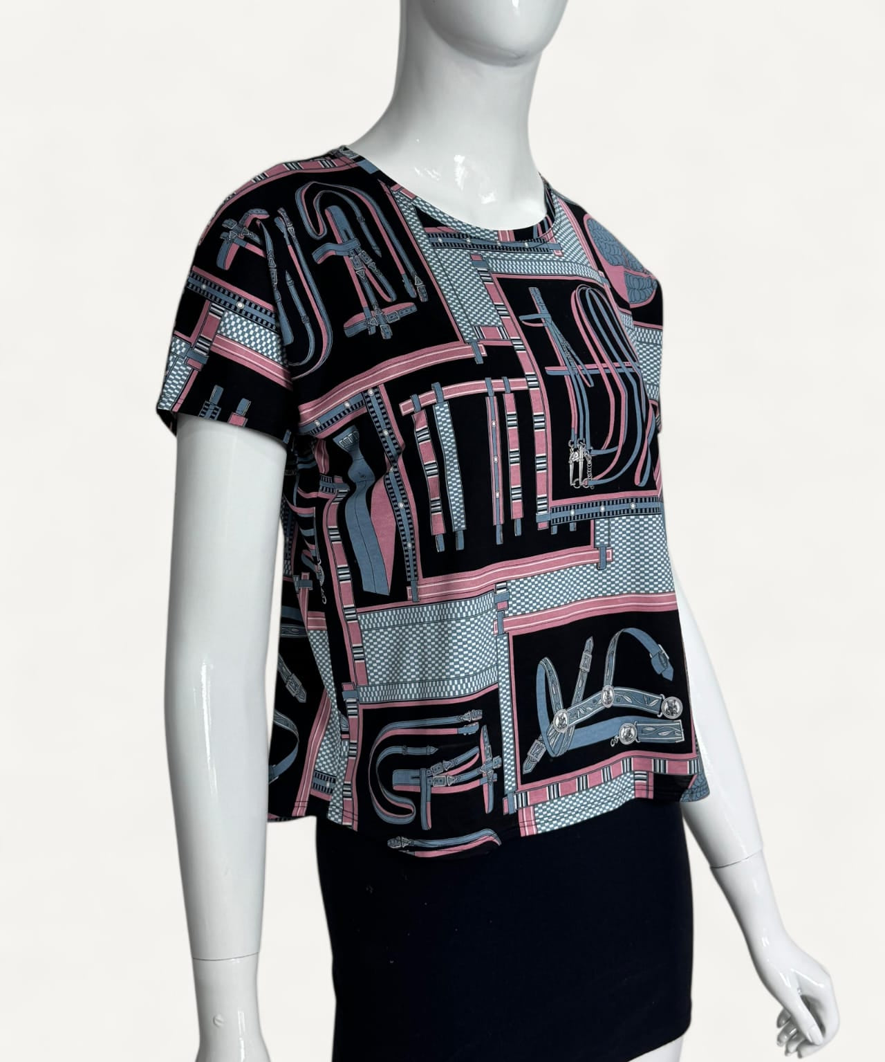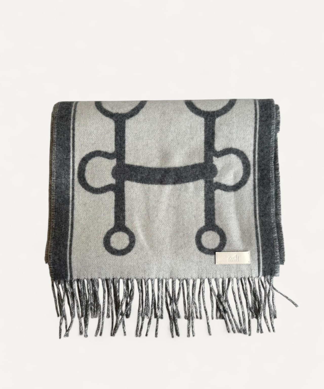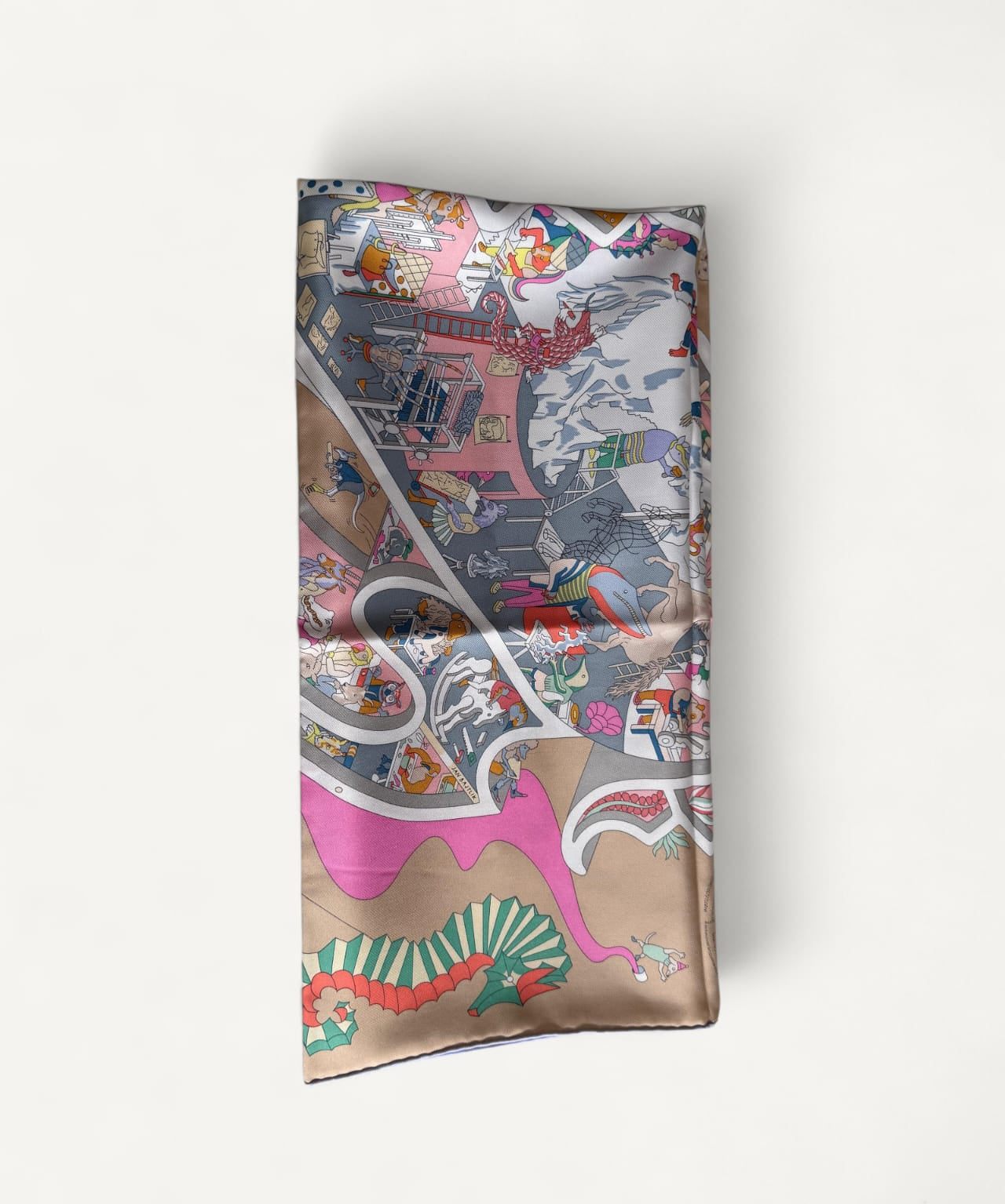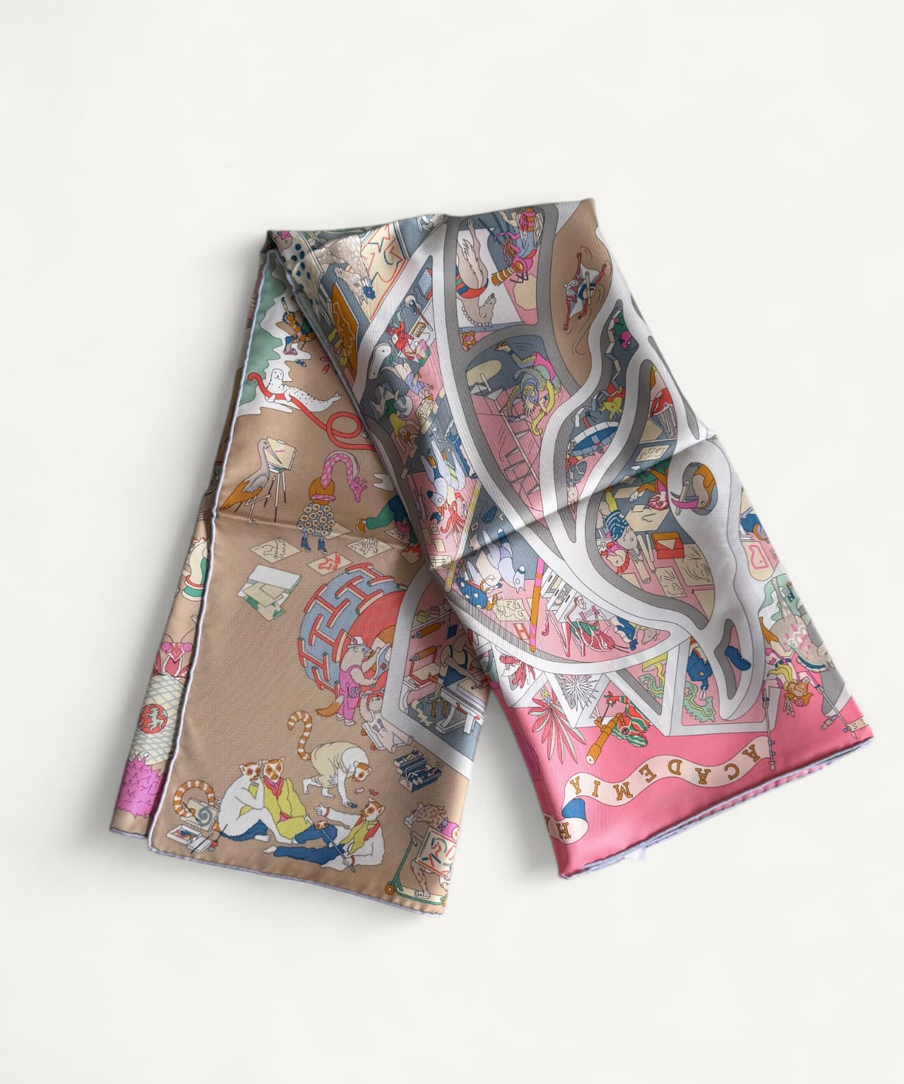 Lenço Hermès 90 Academia Hippica Rose Bonbon / Gris Beuté / Multicolore
