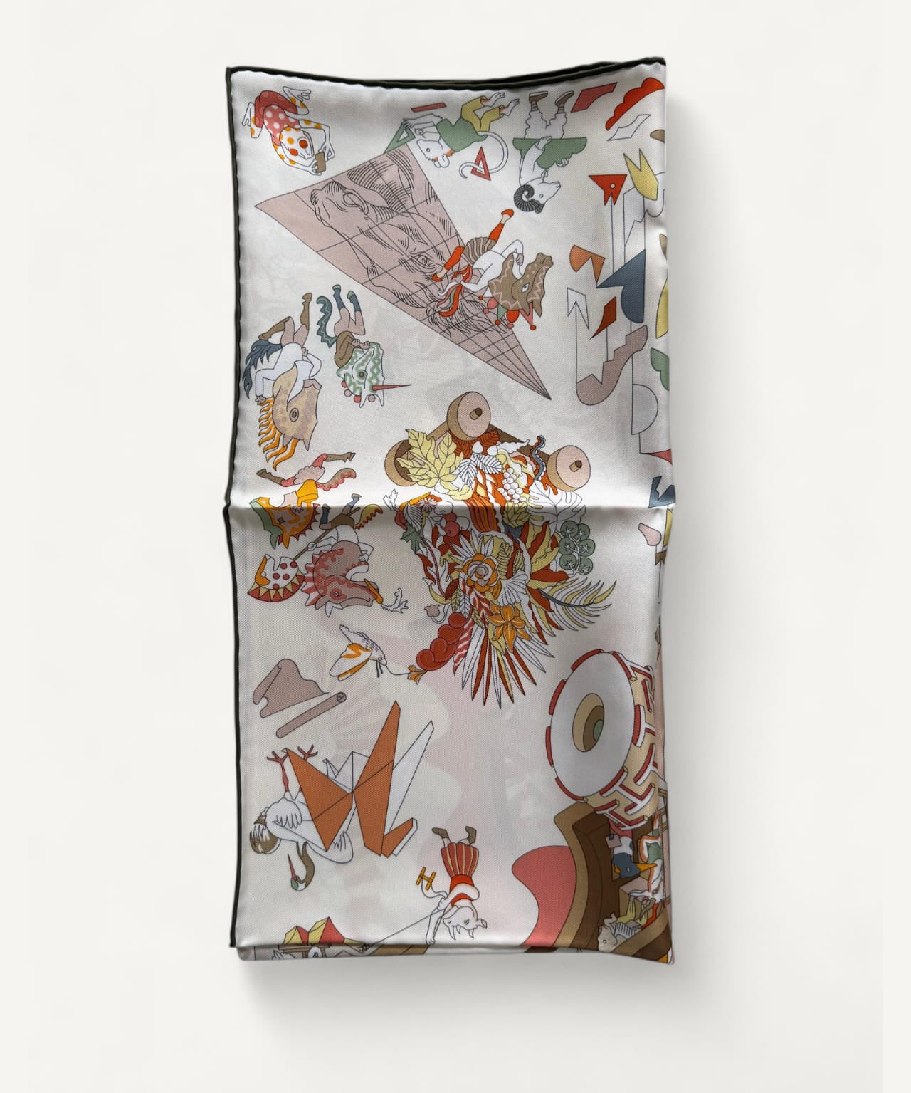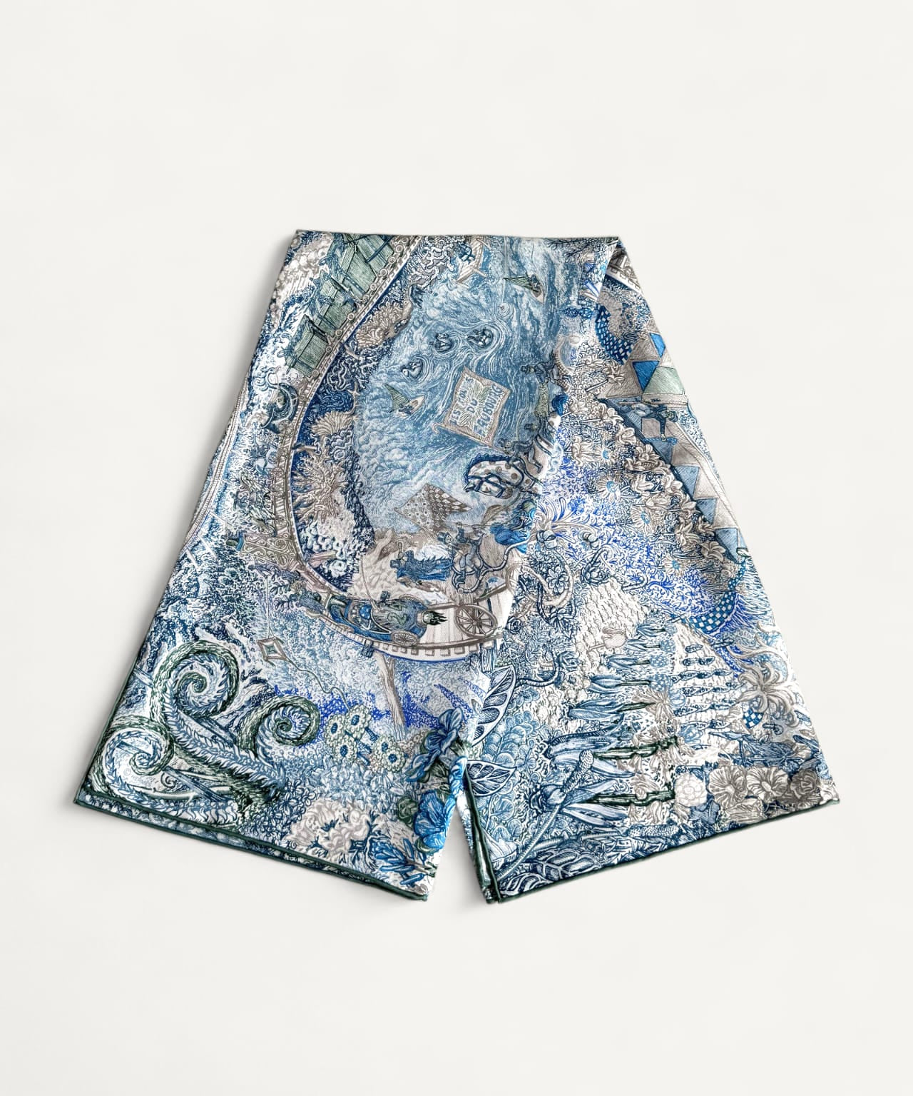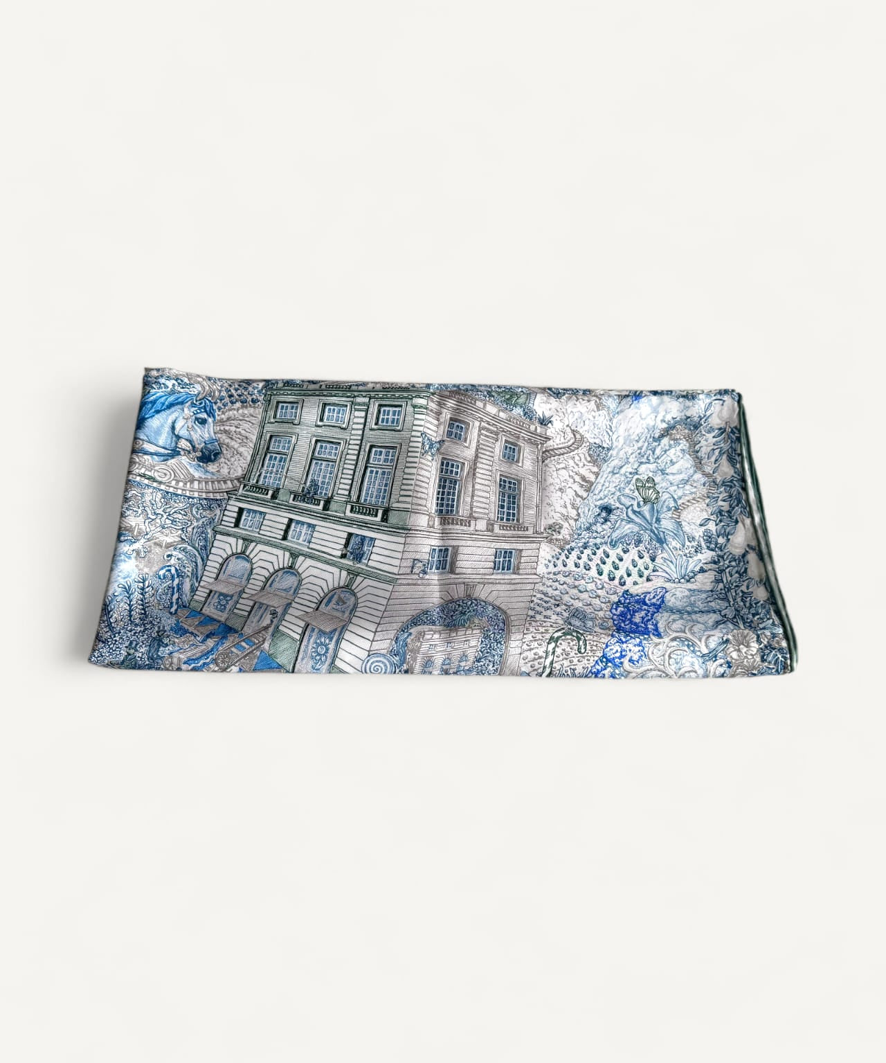 Lenço Hermès em Seda Les Folies du Faubourg Bleu Electrique | Ardoise | Blanc