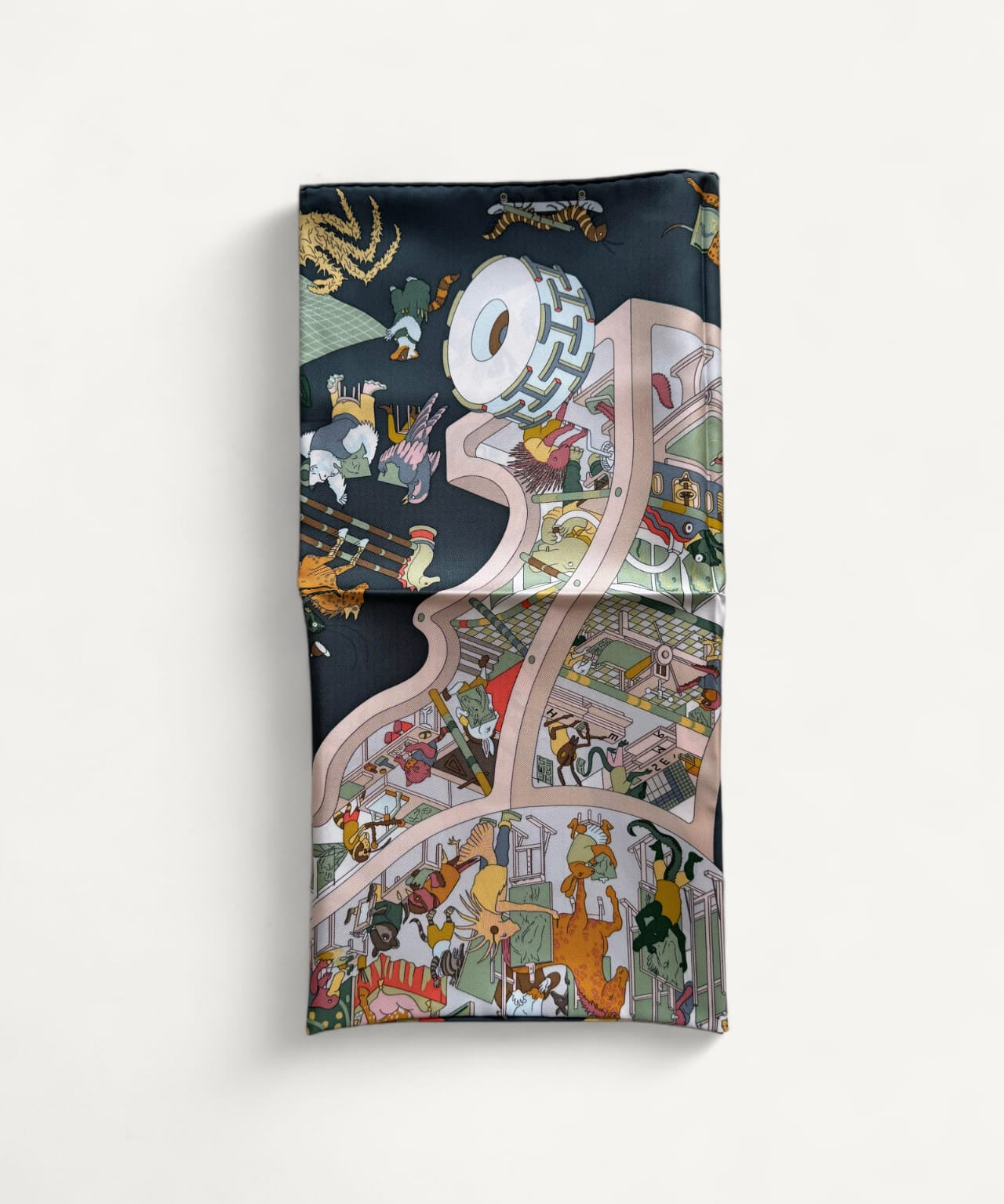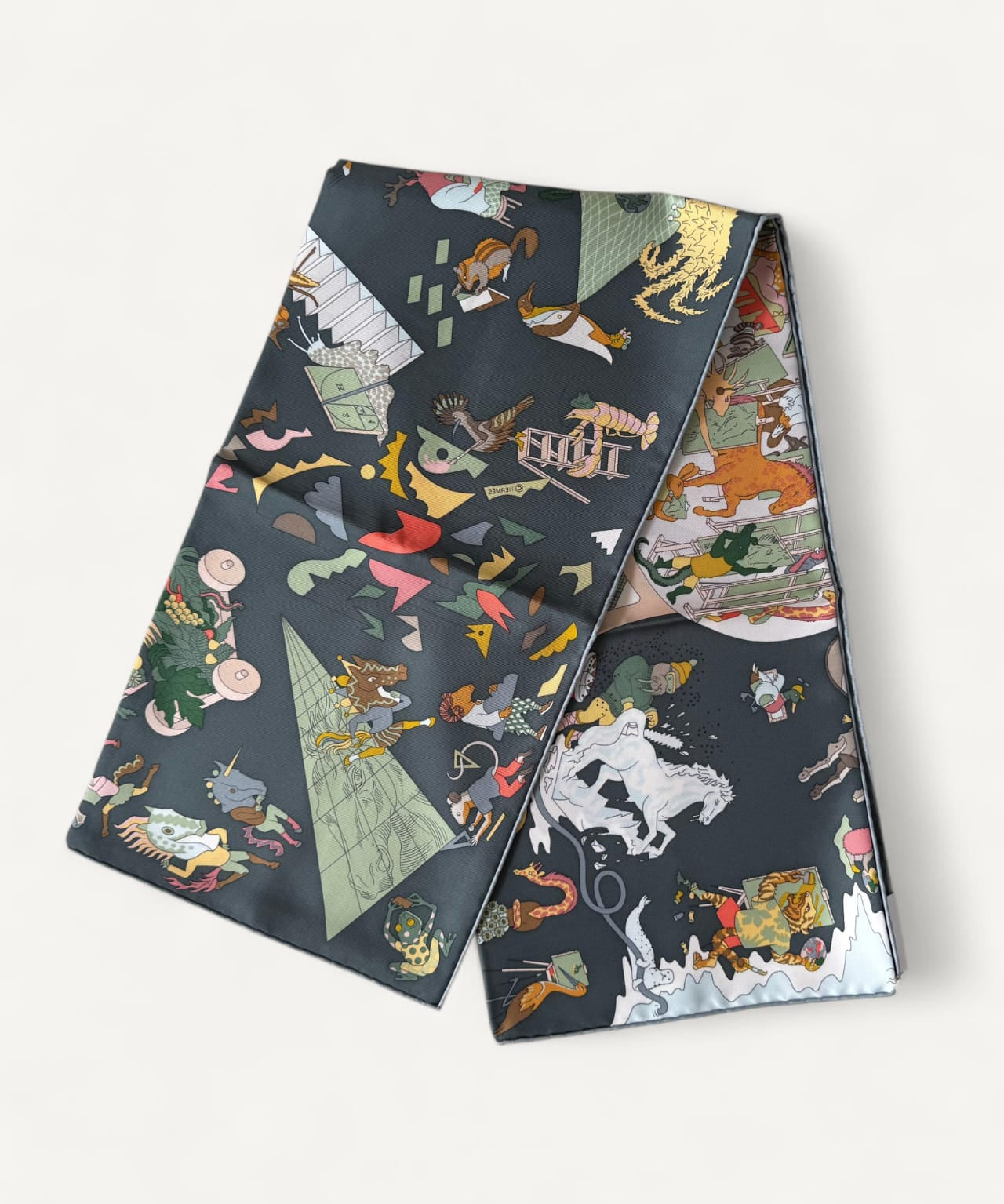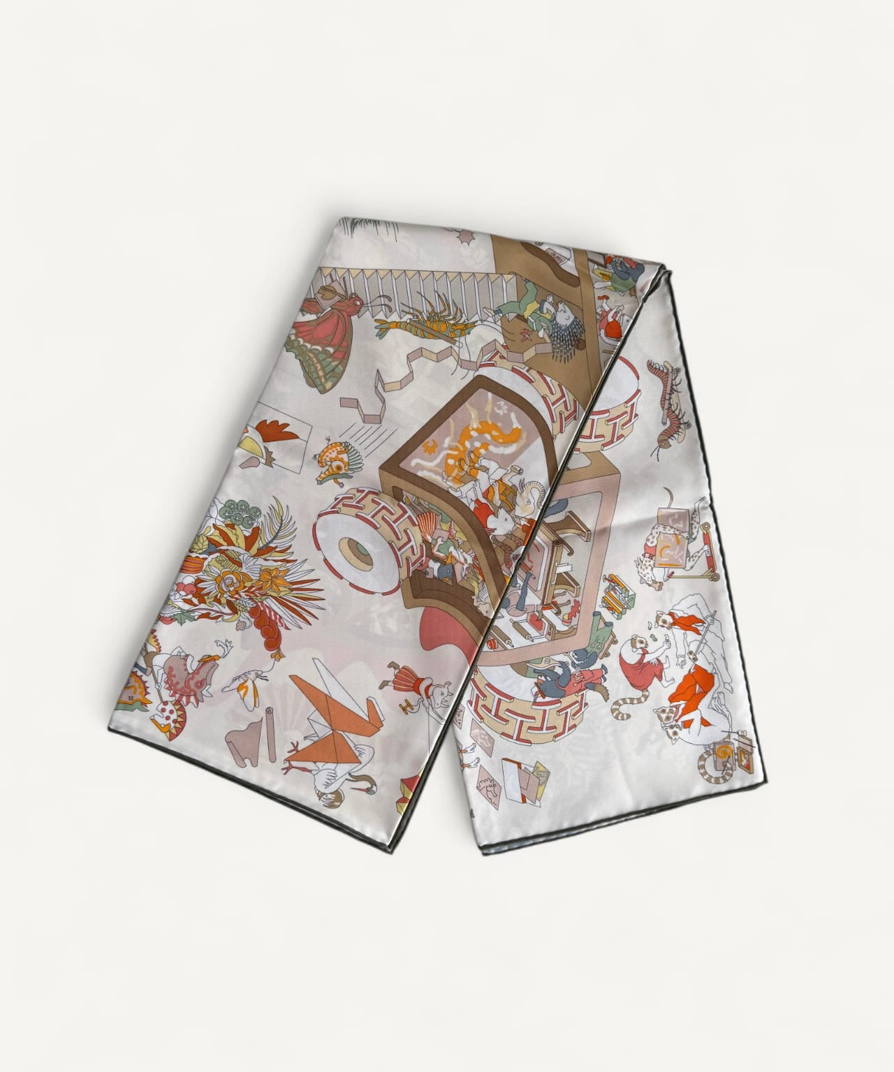 Lenço Hermès em Seda Les Folies du Faubourg Bleu Electrique | Ardoise | Blanc