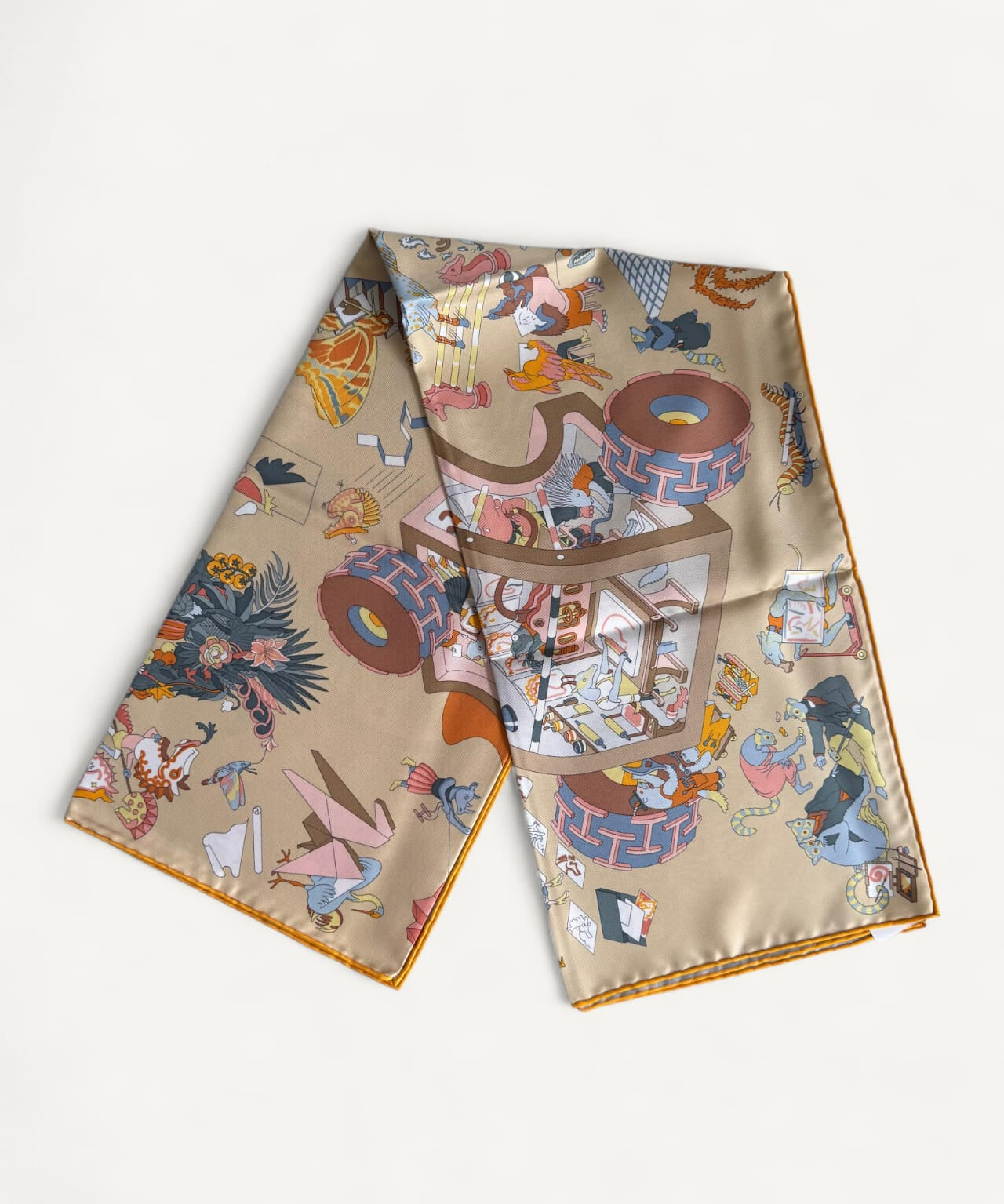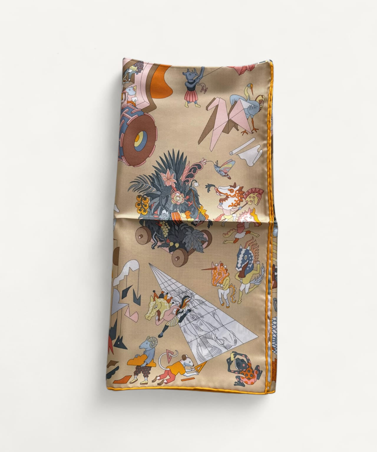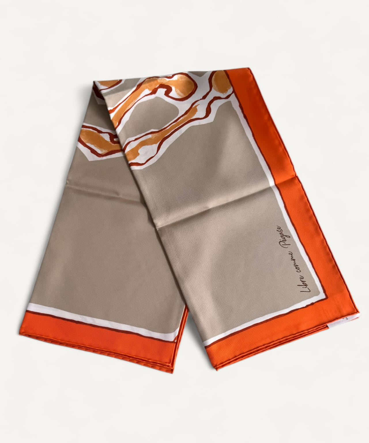 Lenço Hermès 90 Libre Comme Pégase Camel / Orange / Brun