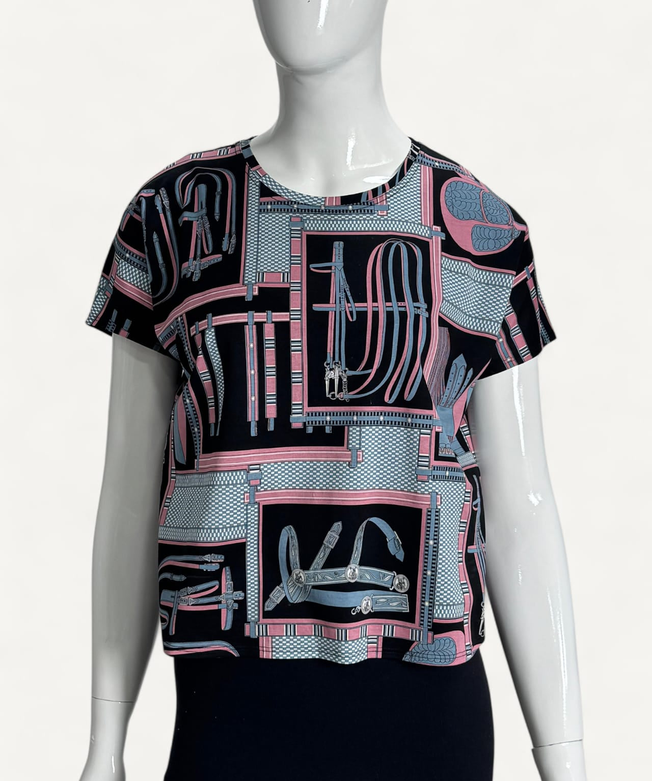 Lenço Hermès 90 Academia Hippica Noir / Ardoise / Rose Poudre