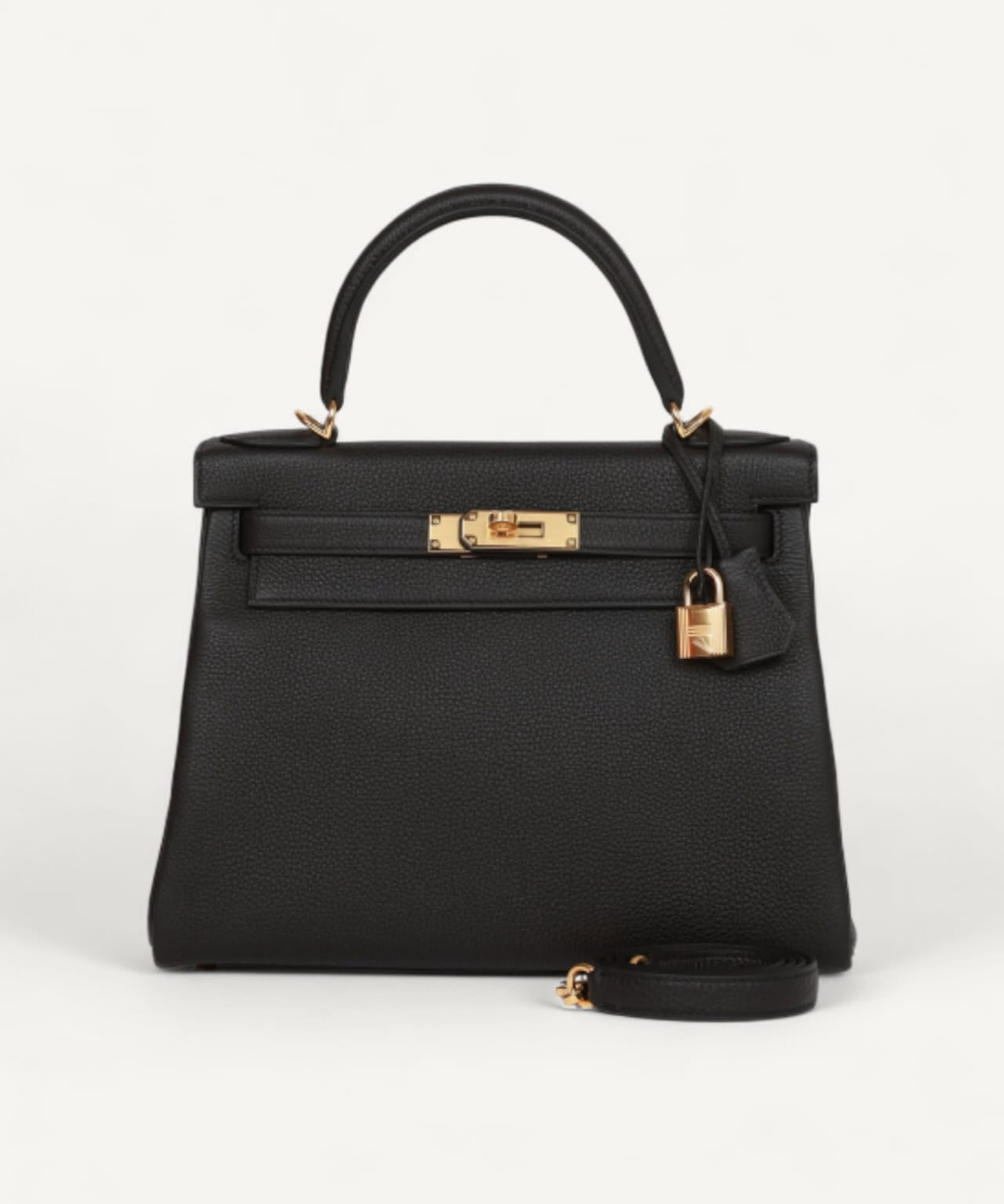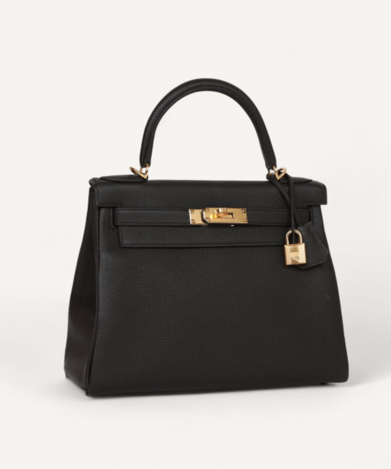 Bolsa Hermés Kelly 28 Togo Noir com Ferragens Gold