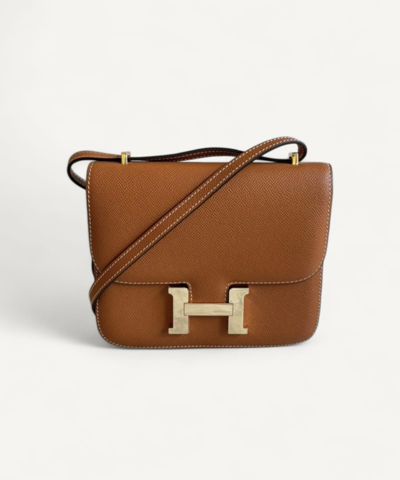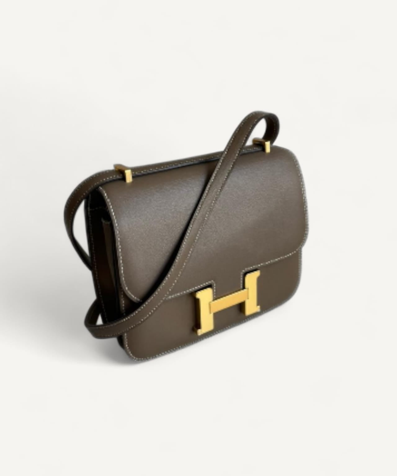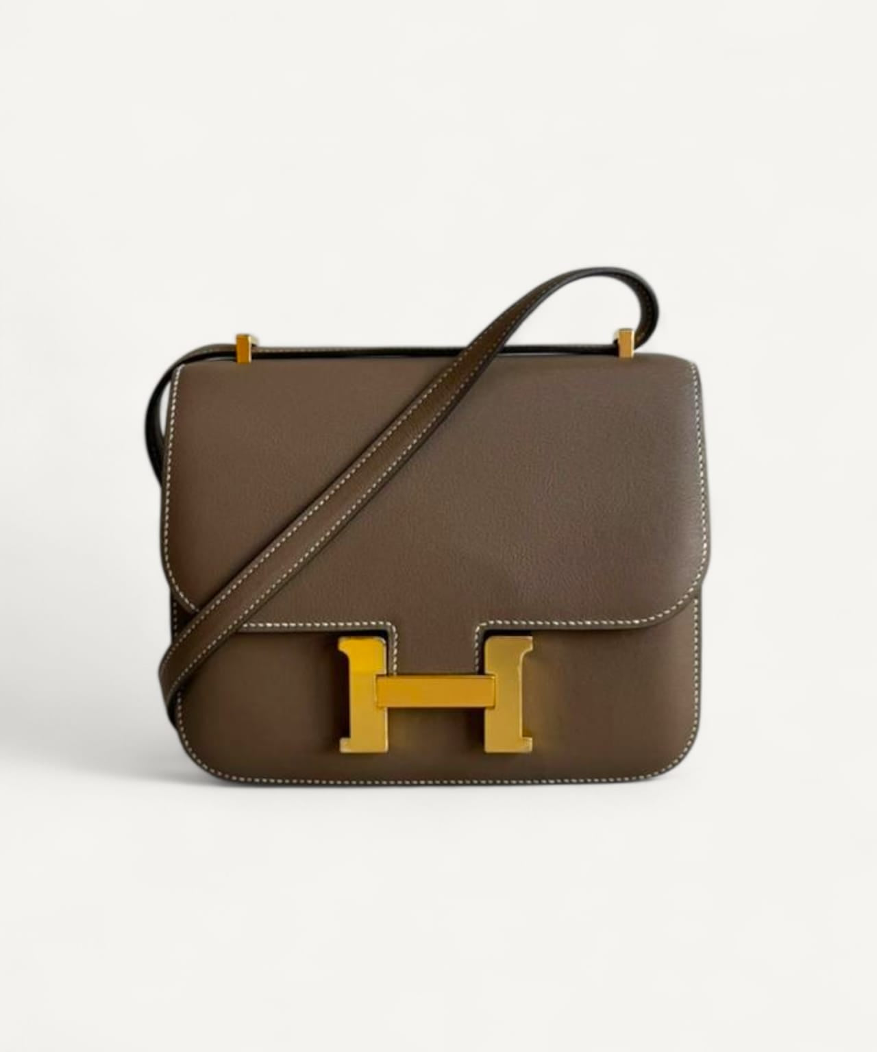Bolsa Hermès Constance 18 Swift Etoupe com Ferragens Gold