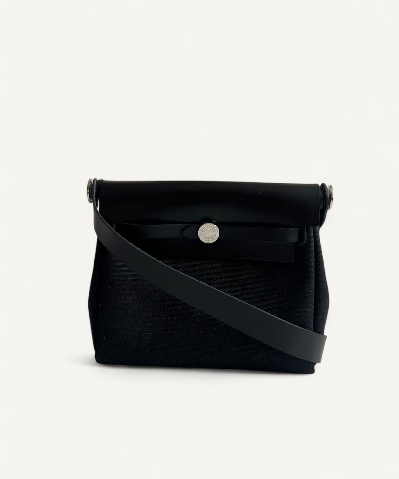Bolsa Hermès Herbag Mini Toile Noir com Ferragens Palladium