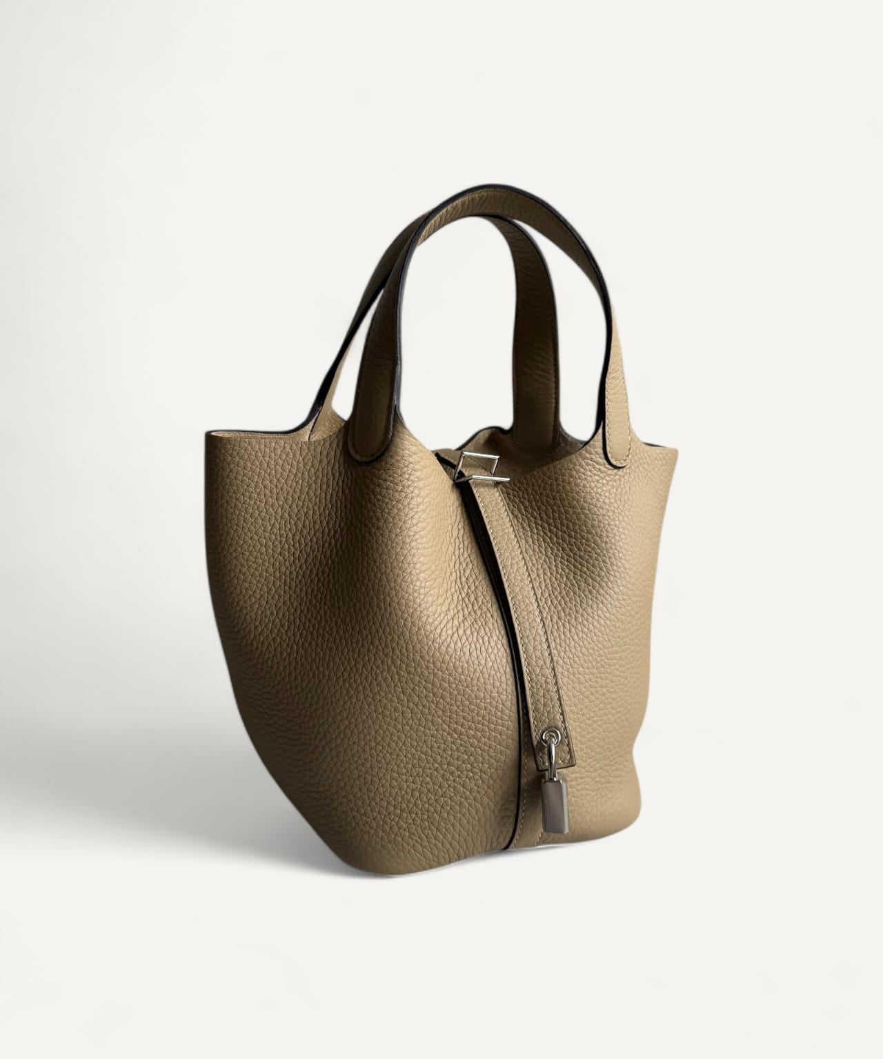 Bolsa Hermés Picotin 18 Taurillon Clemence Biscuit Ferragem Paladium