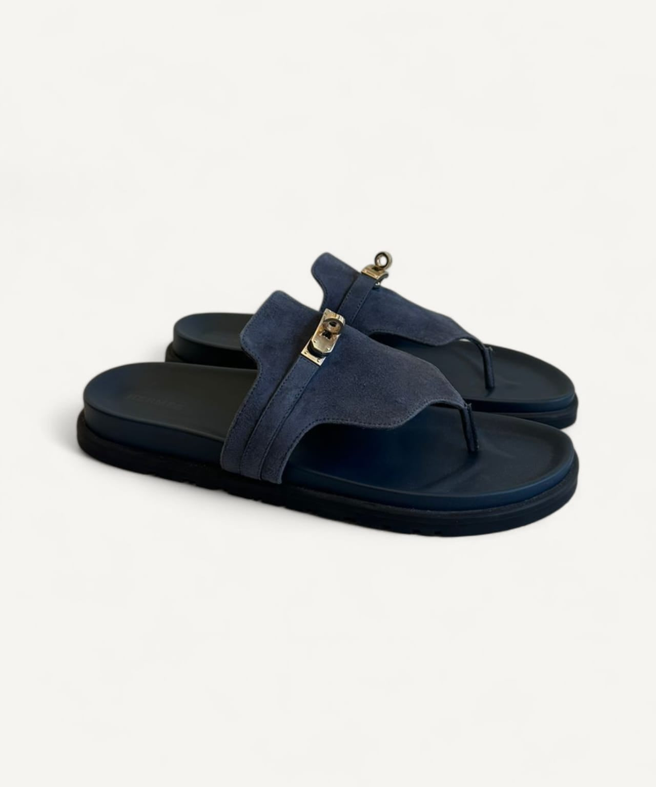 Sandália Hermès Empire Bleu Navy com Ferragens Palladium
