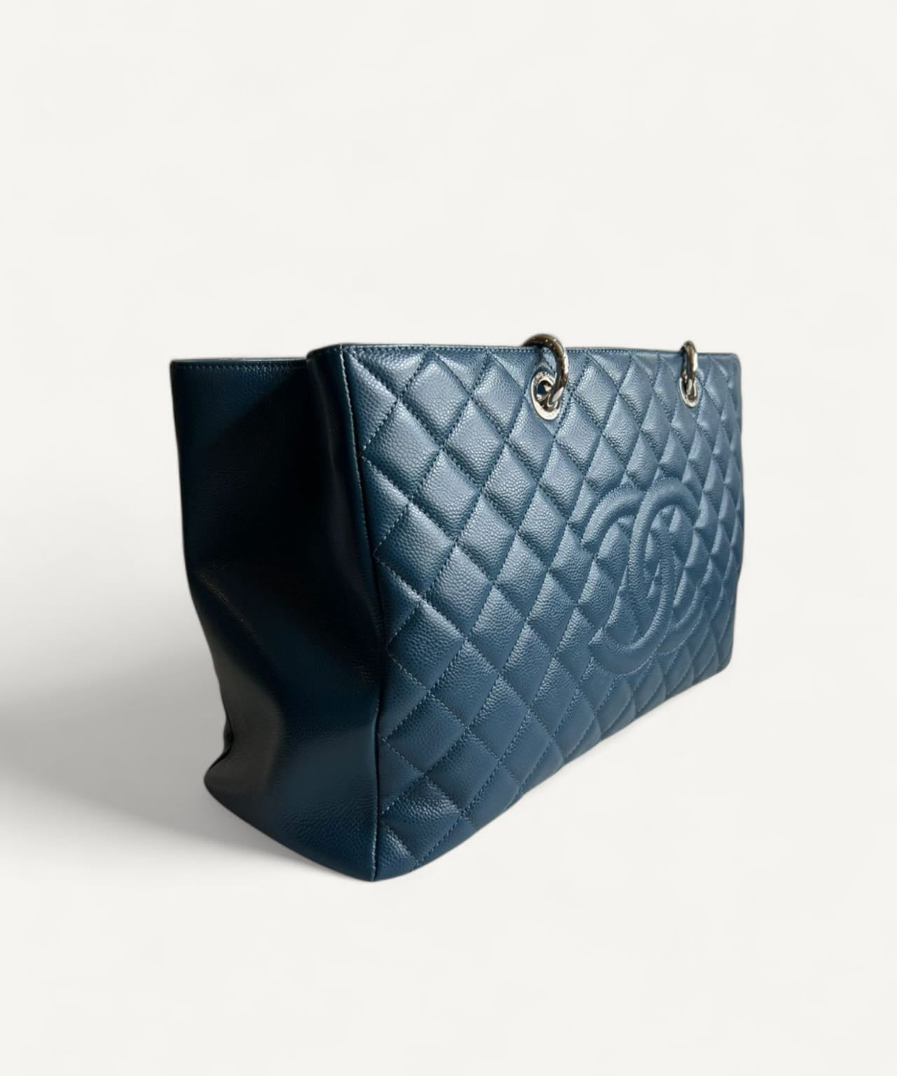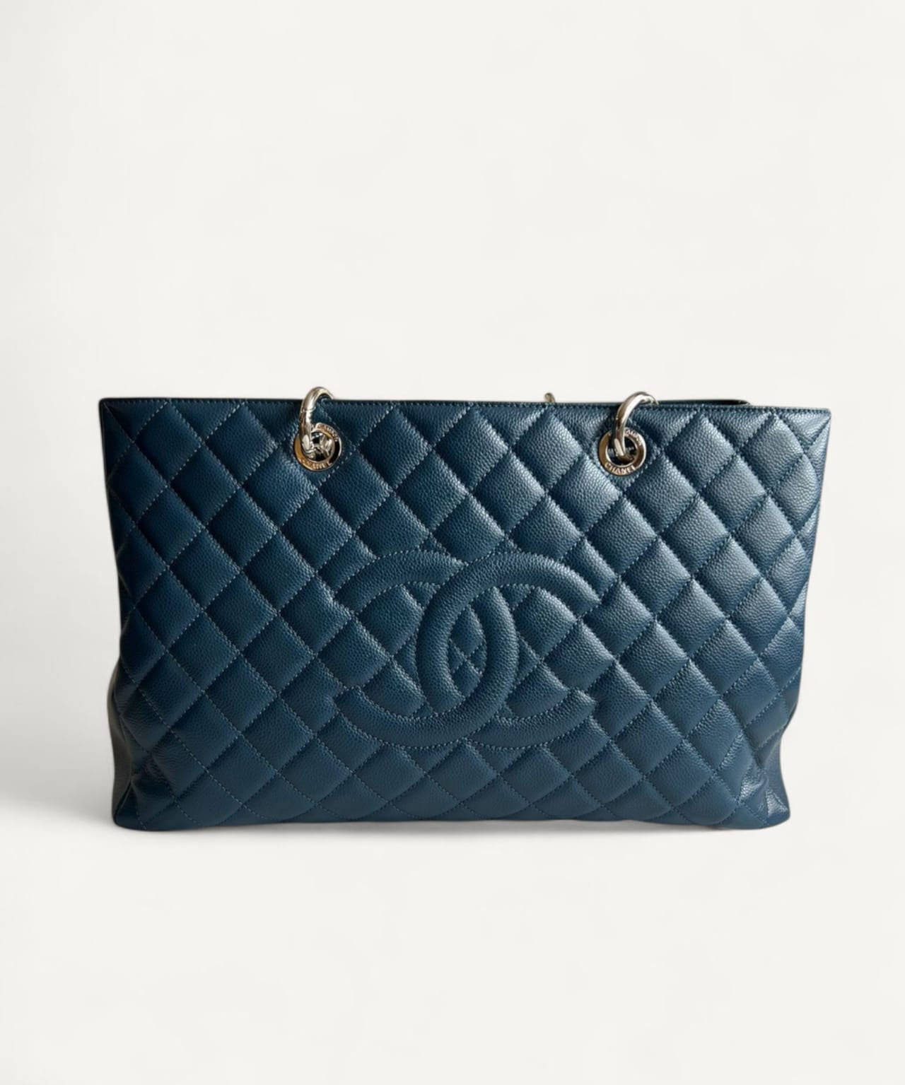 Bolsa Chanel Shopper Azul Marinho com Ferragens Prateadas