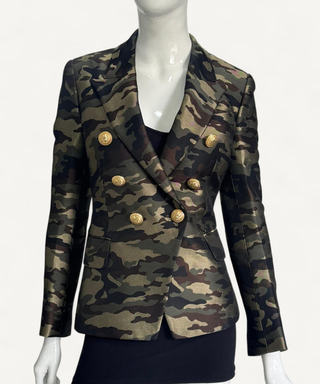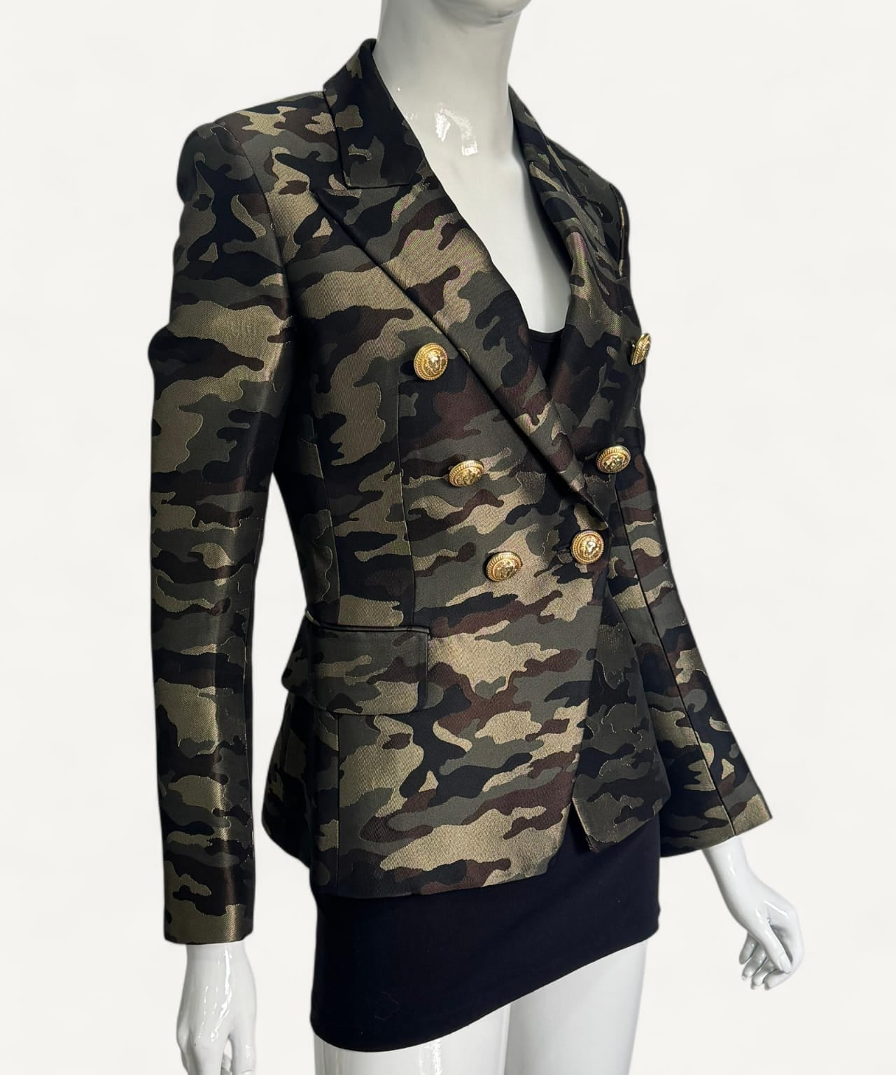Blazer Balmain com Estampa Militar e Botões Dourados