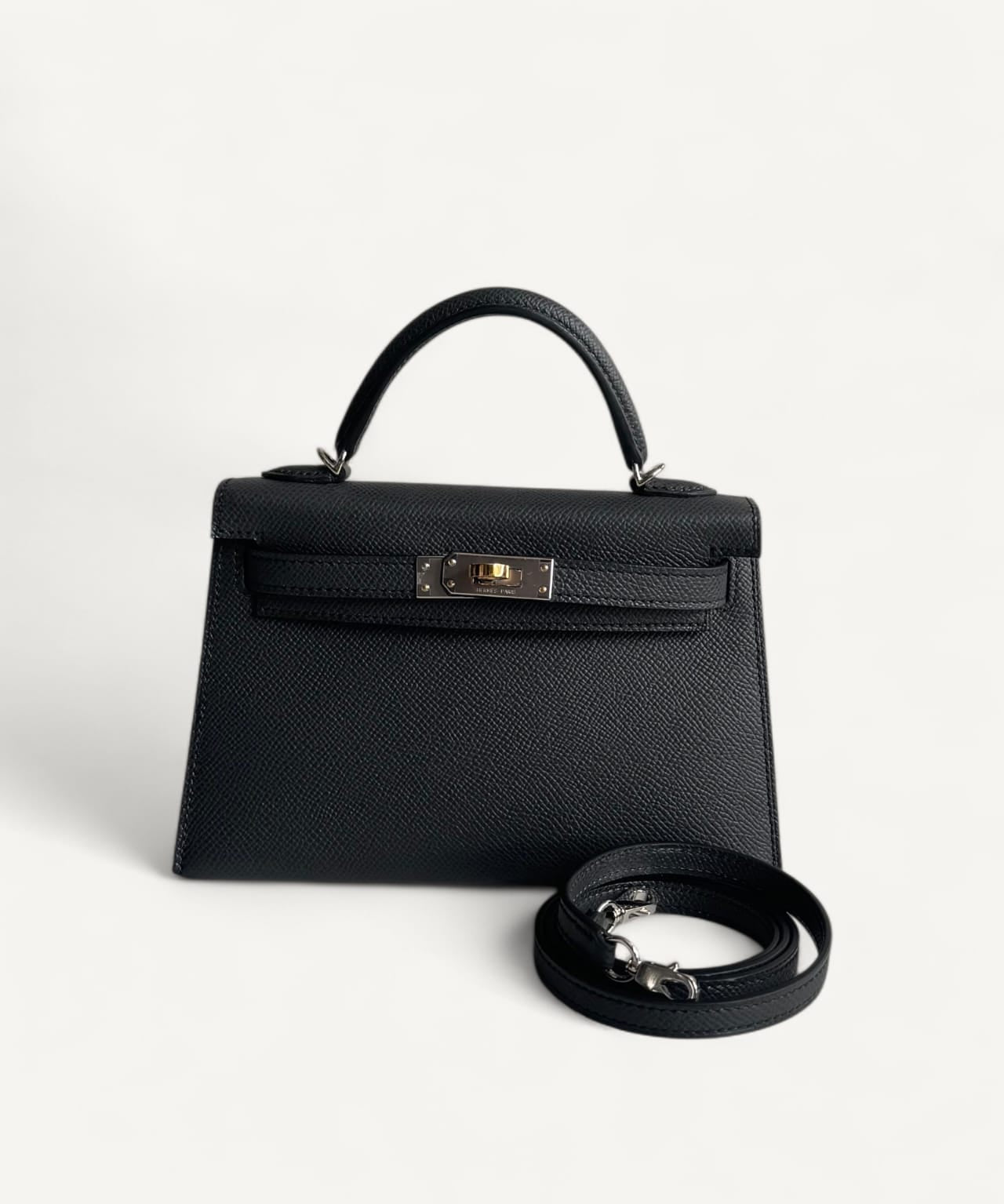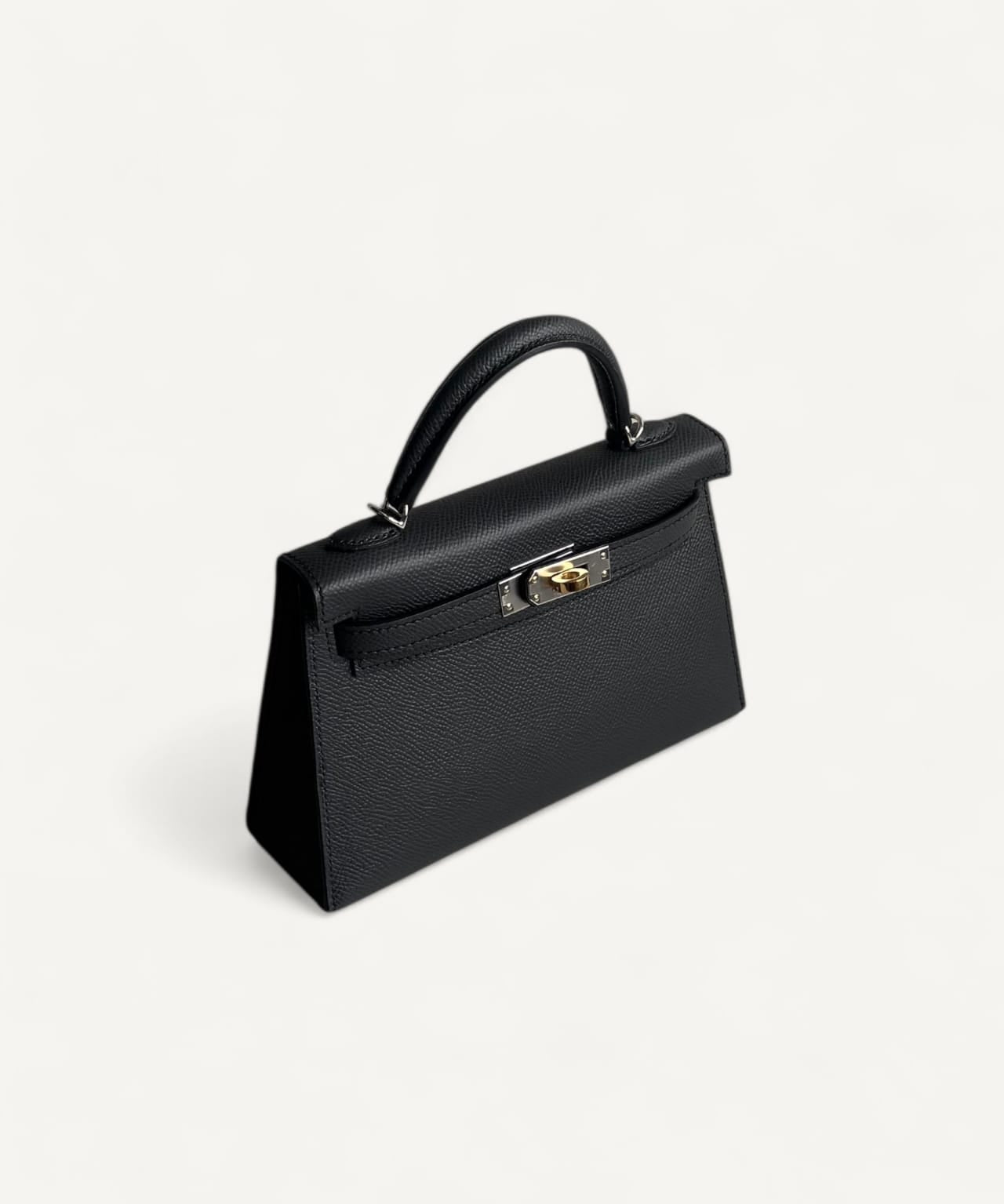 Bolsa Hermès Mini Kelly Epsom Plumb com Ferragens Electrum