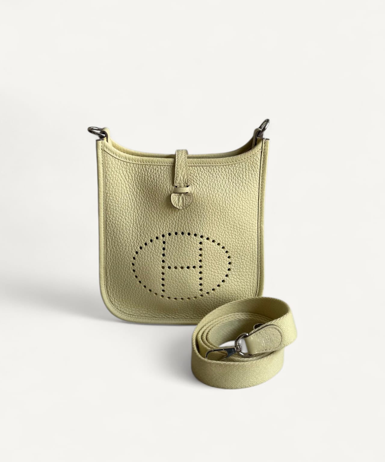 Bolsa Hermès Mini Evelyne Clemence Jaune Milton com Ferragens Palladium
