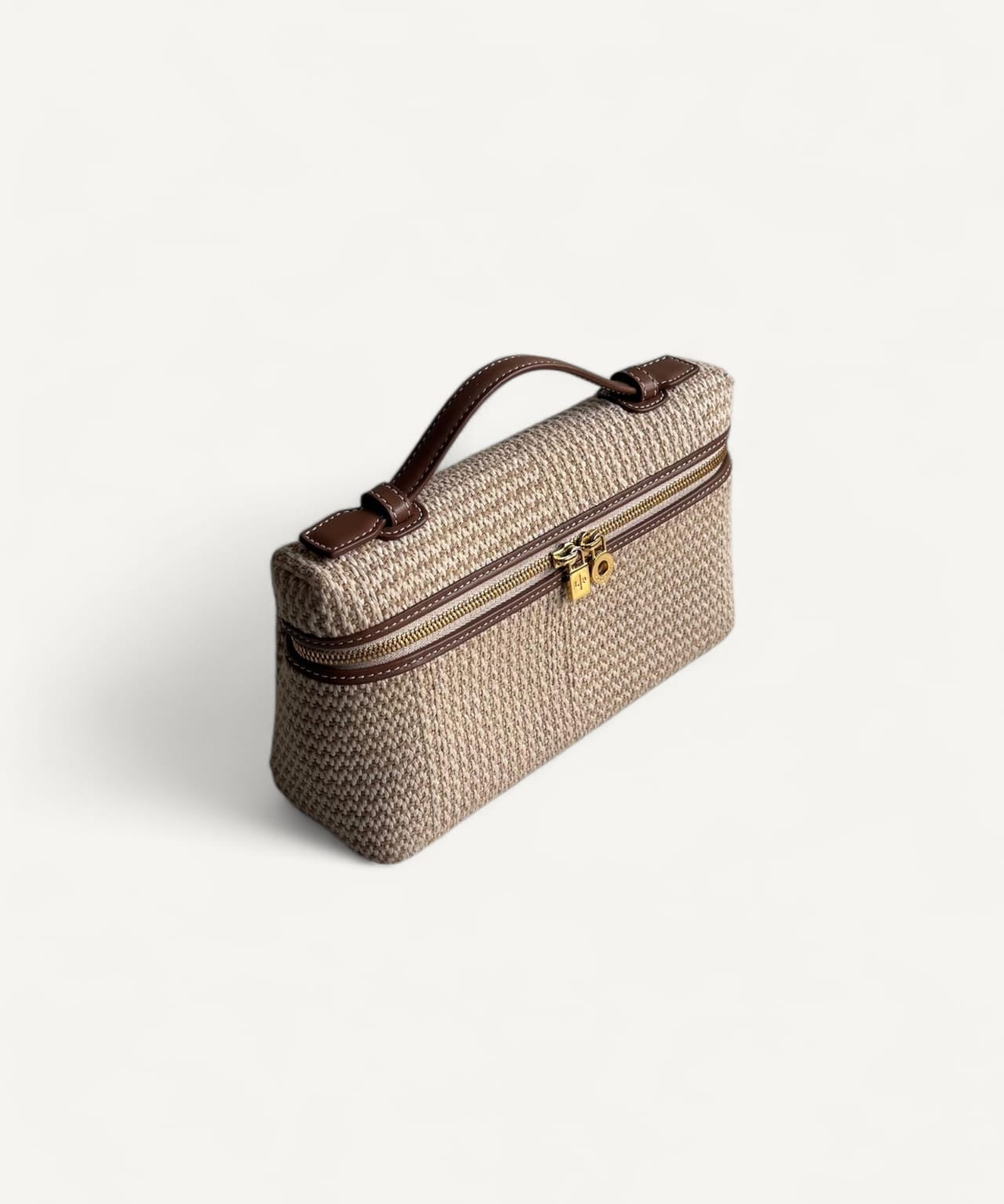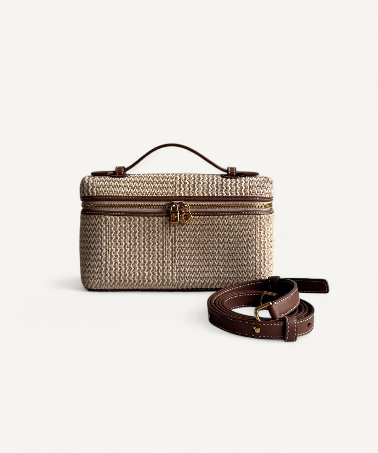 Bolsa Loro Piana Extra Pocket L19 Ecru Brown Cotton com Ferragens Douradas