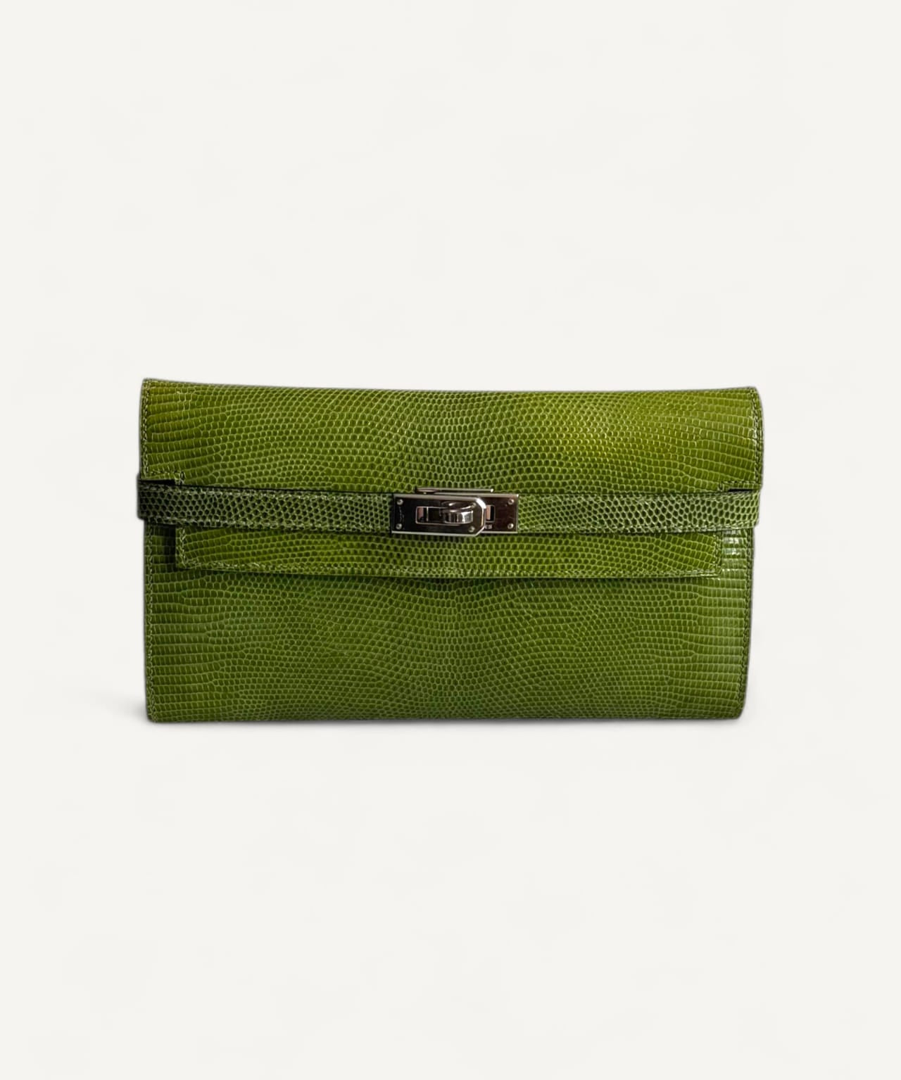 Carteira Hermés Kelly Wallet Lizzard Vert Anis com Ferragens Palladium