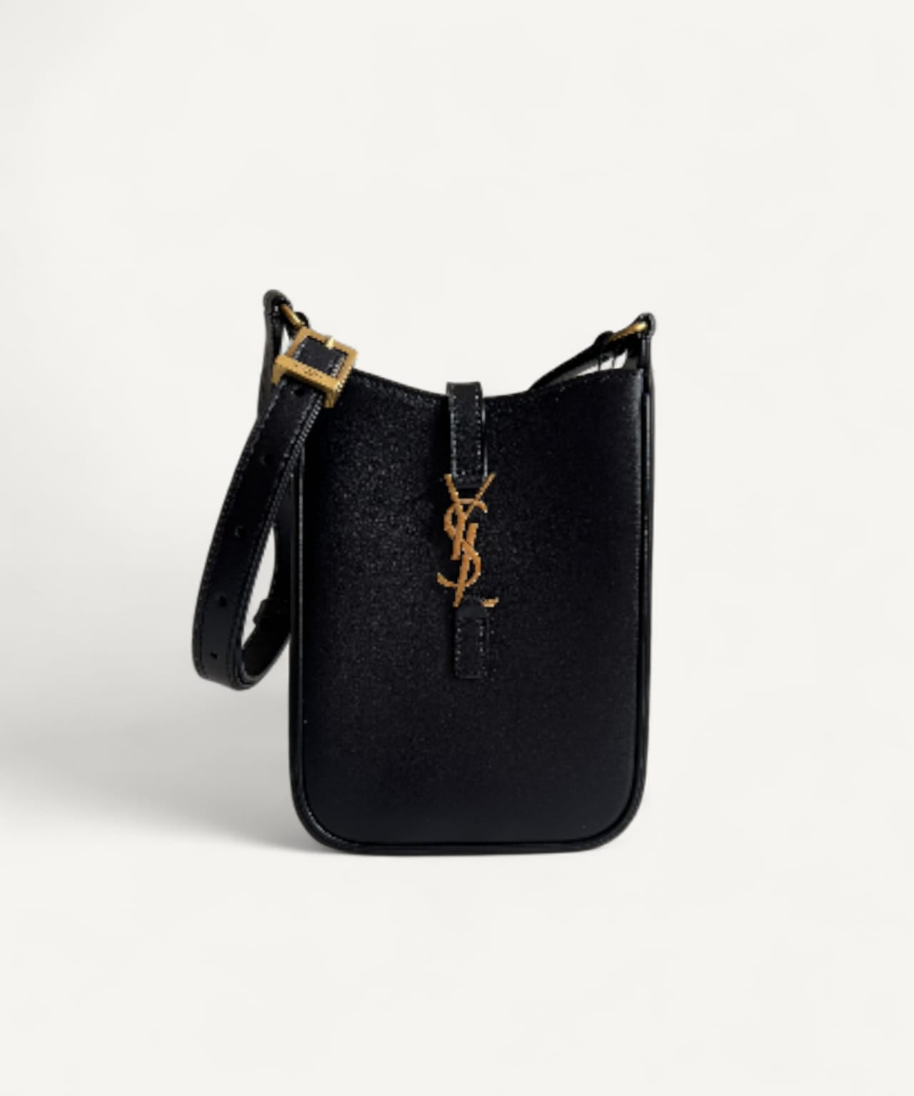 Bolsa Saint Laurent Le 5 à 7 Mini Preta com Ferragens Douradas