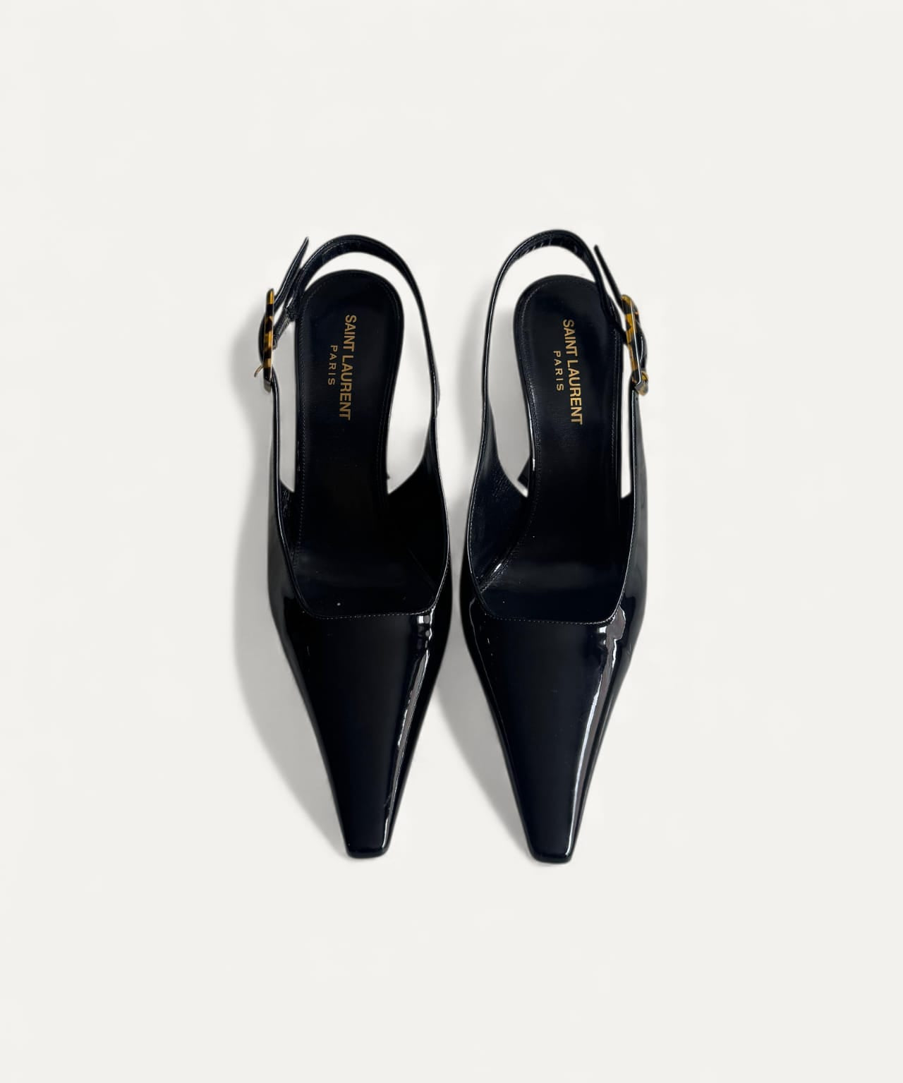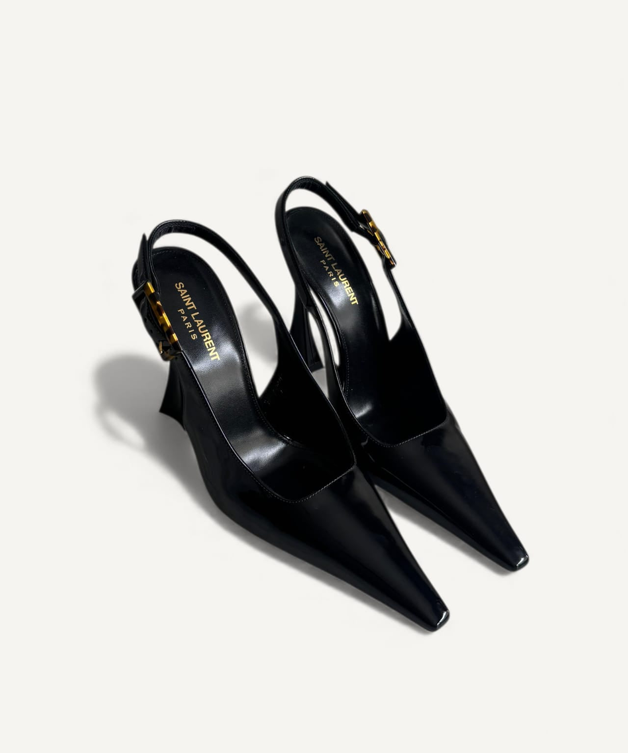 Scarpin Saint Laurent Slingback Lee em Couro Polido