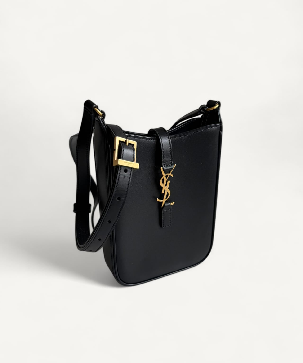Bolsa Saint Laurent Le 5 à 7 Bucket Preta com Ferragens Douradas