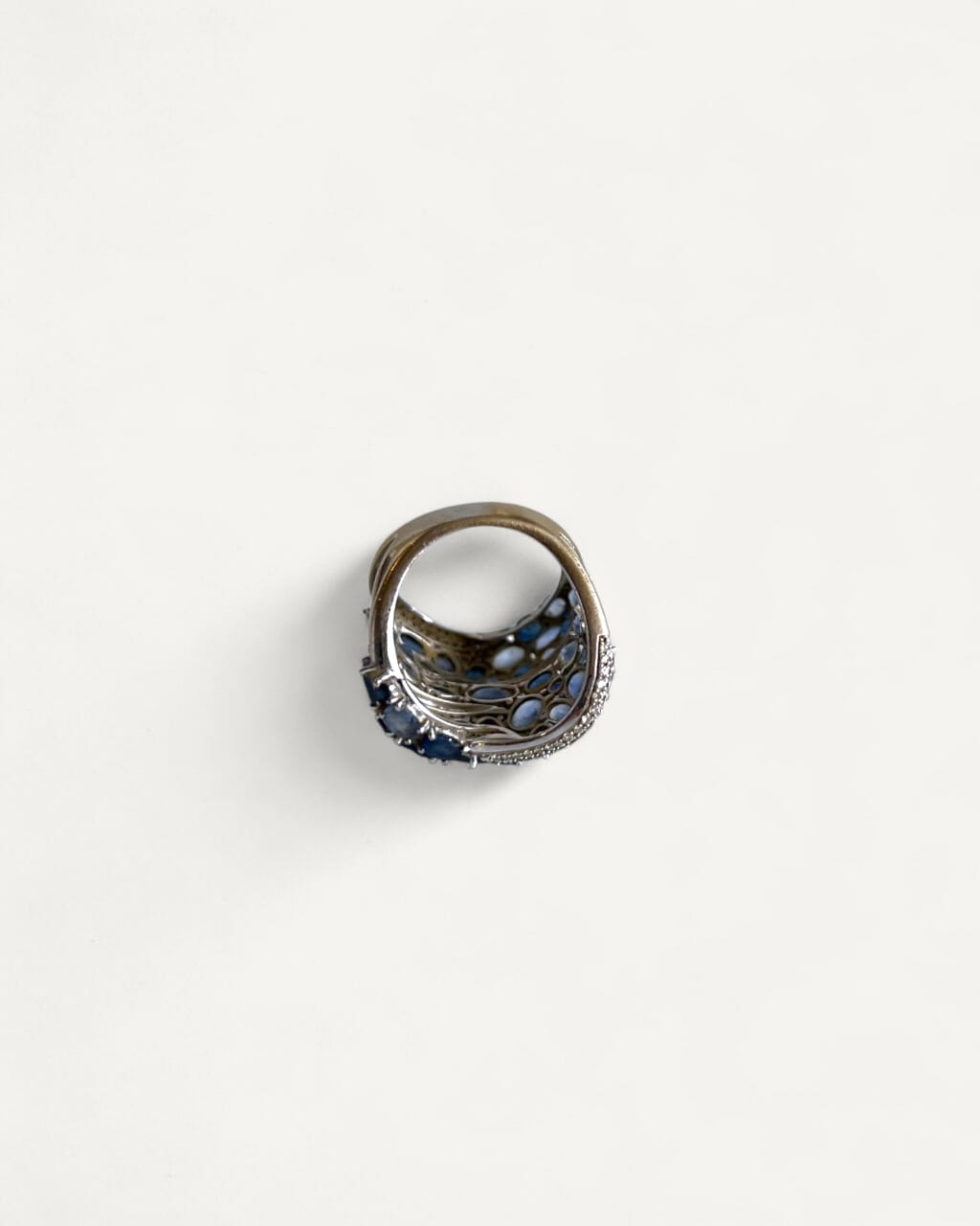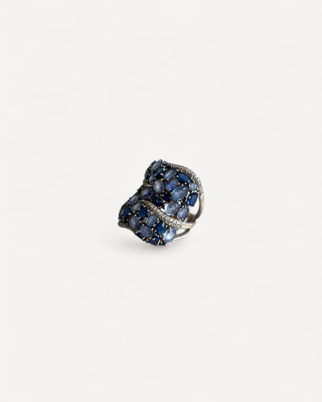 Anel em Ouro Branco 18k com mix de Safiras e Diamantes