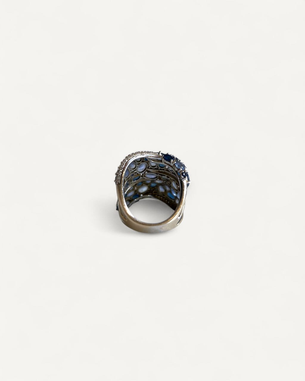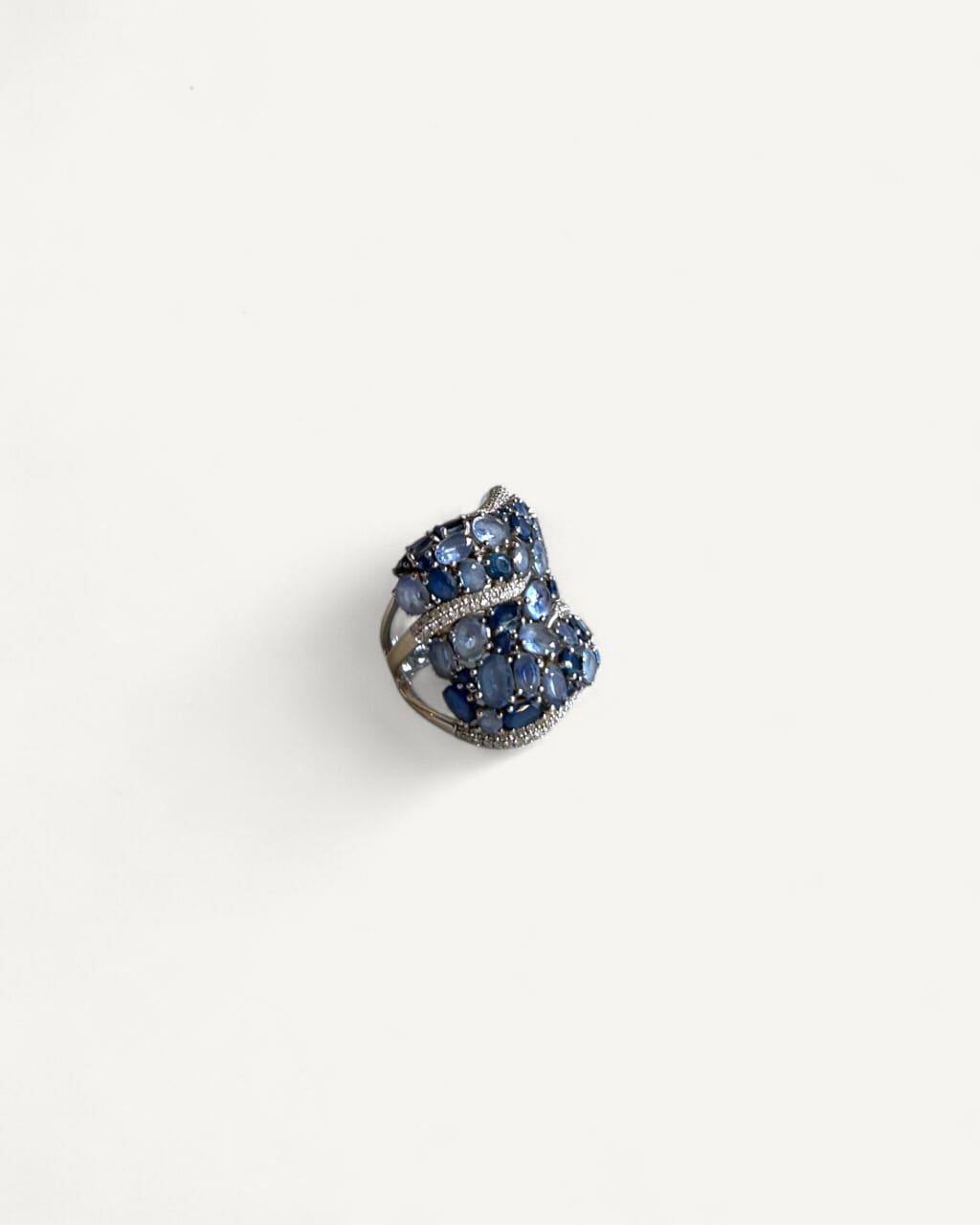 Anel em Ouro Branco 18k com Mix de Safiras e Diamantes