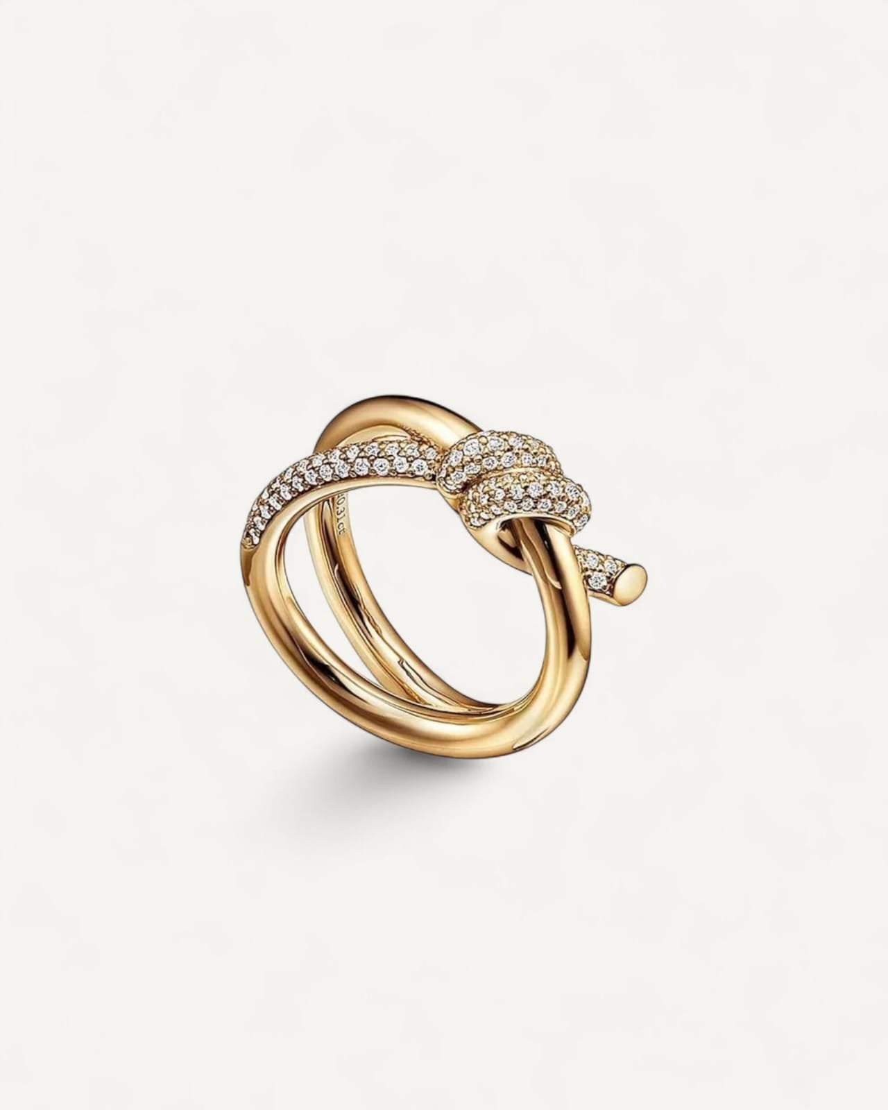 Anel Tiffany Knot de Duas Voltas em Ouro Amarelo com Diamantes