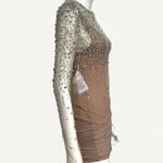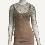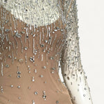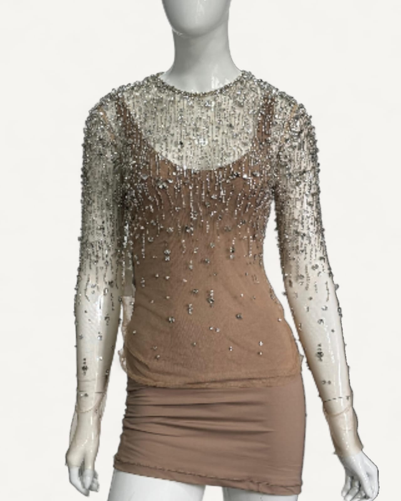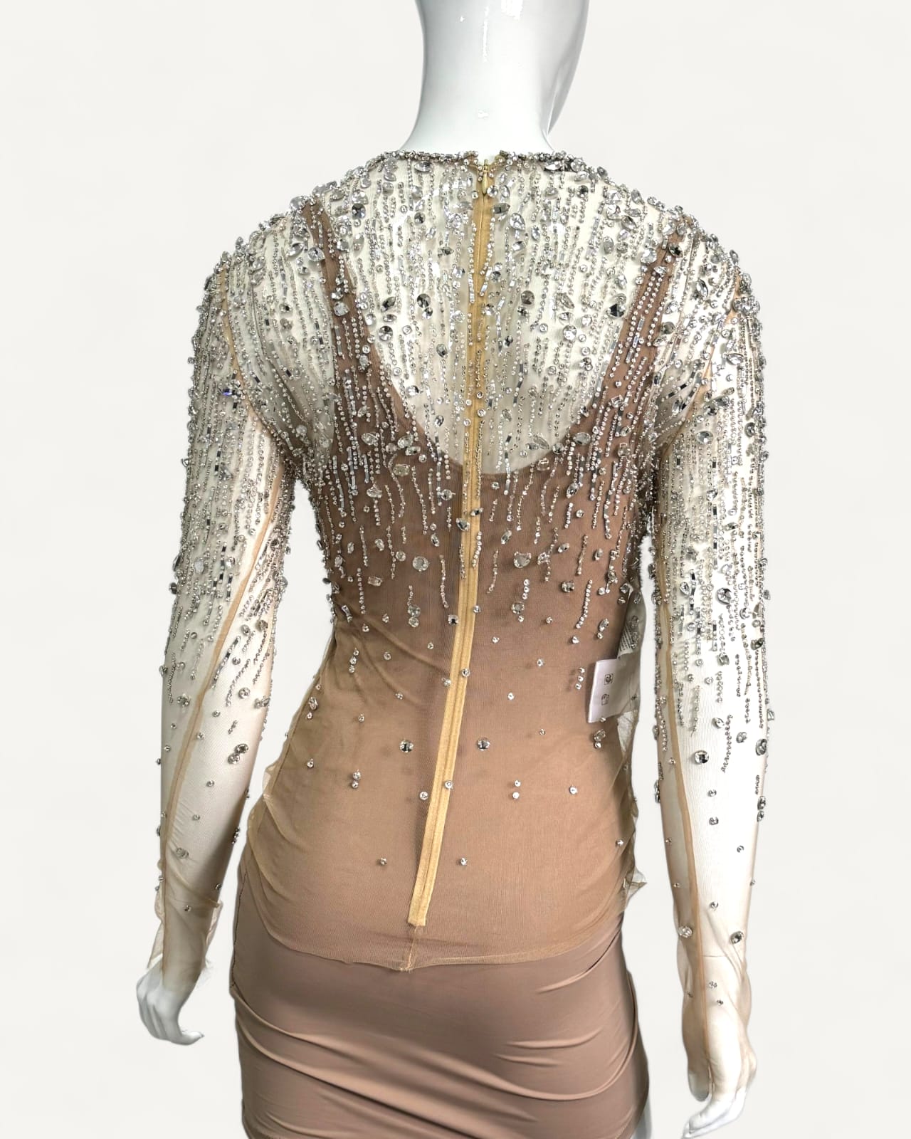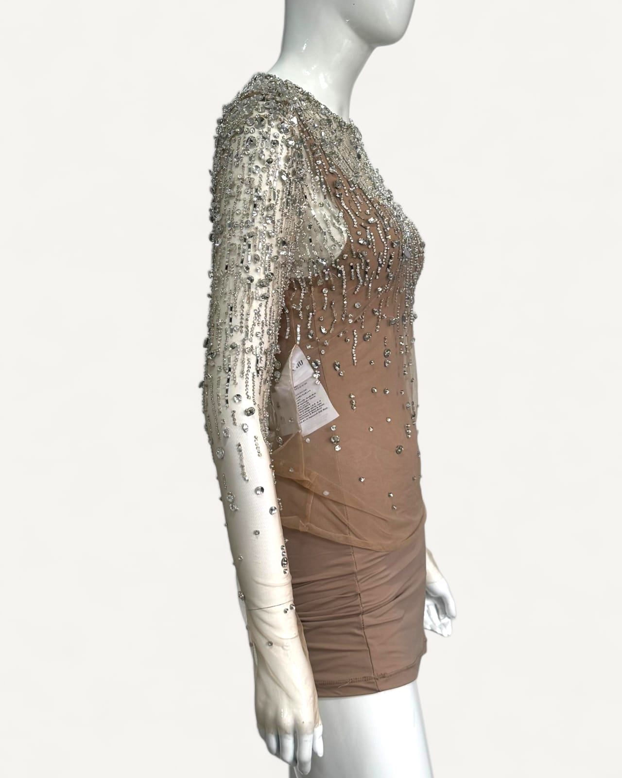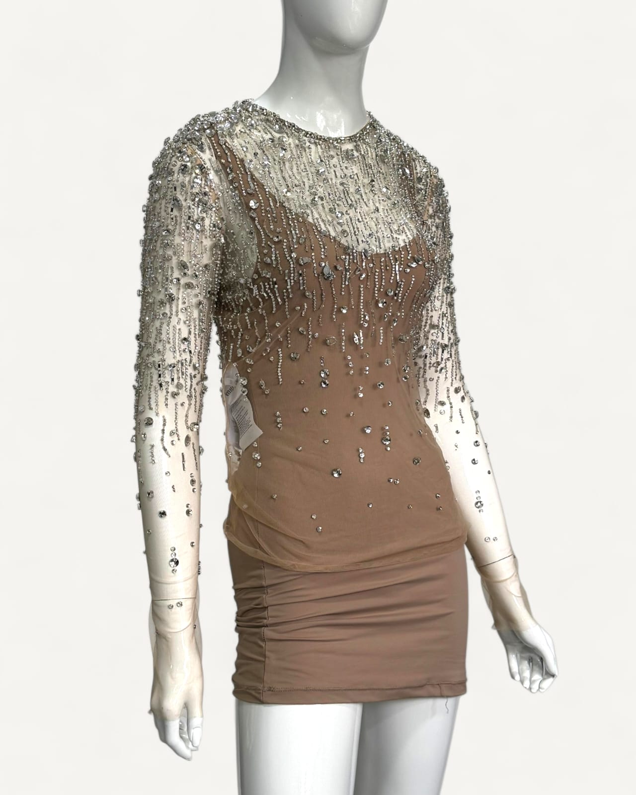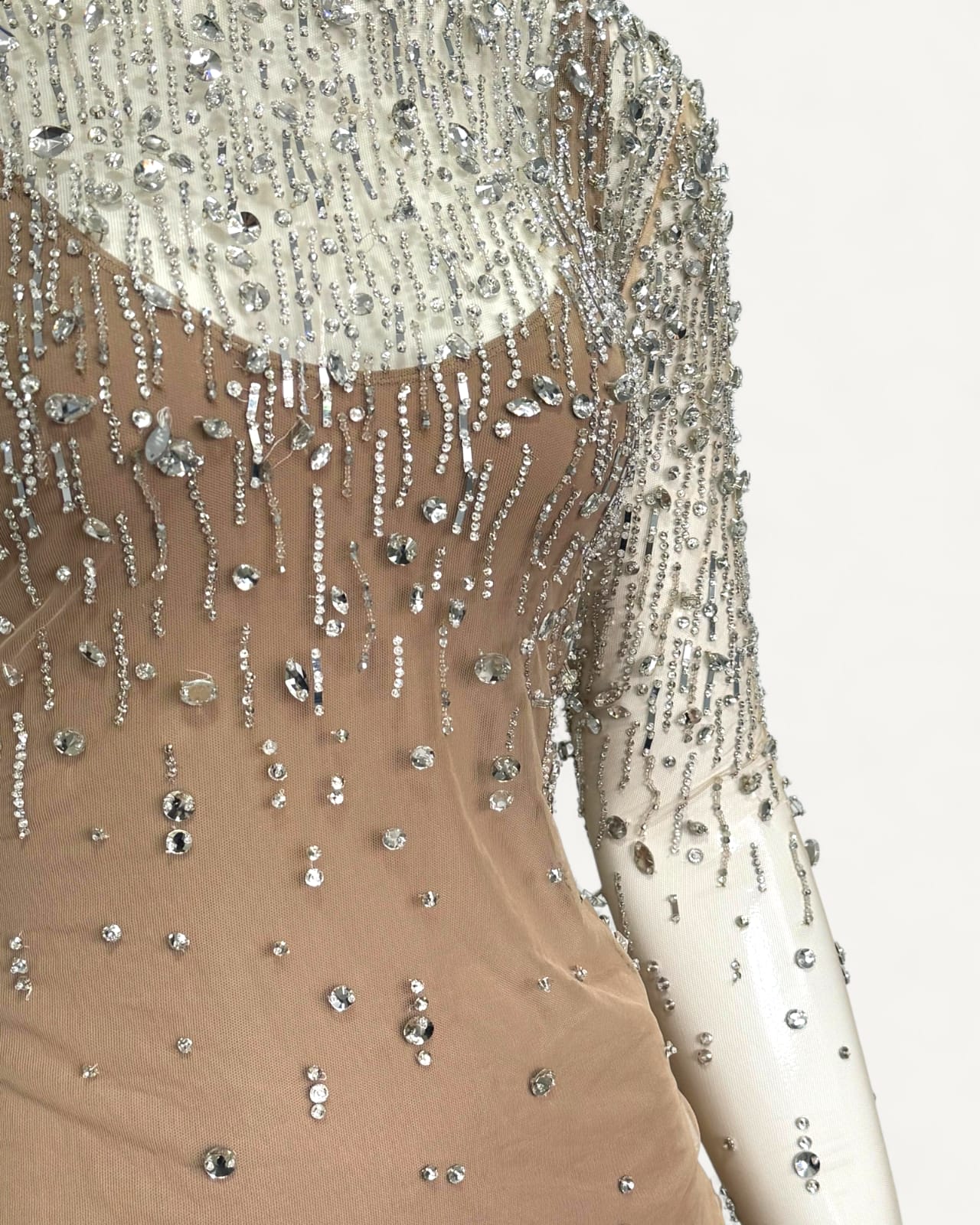 - Aplicação em cristais prateados por toda peça