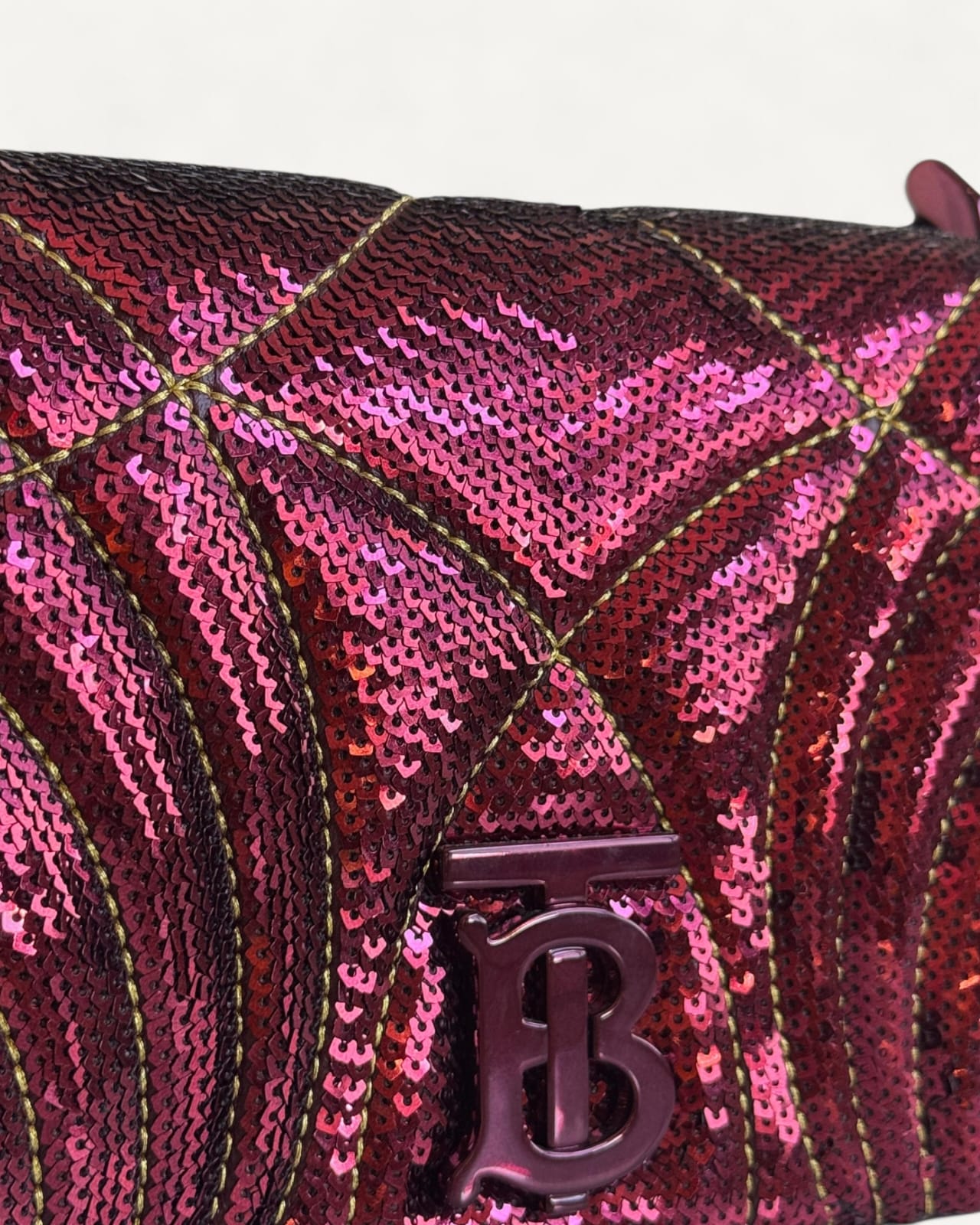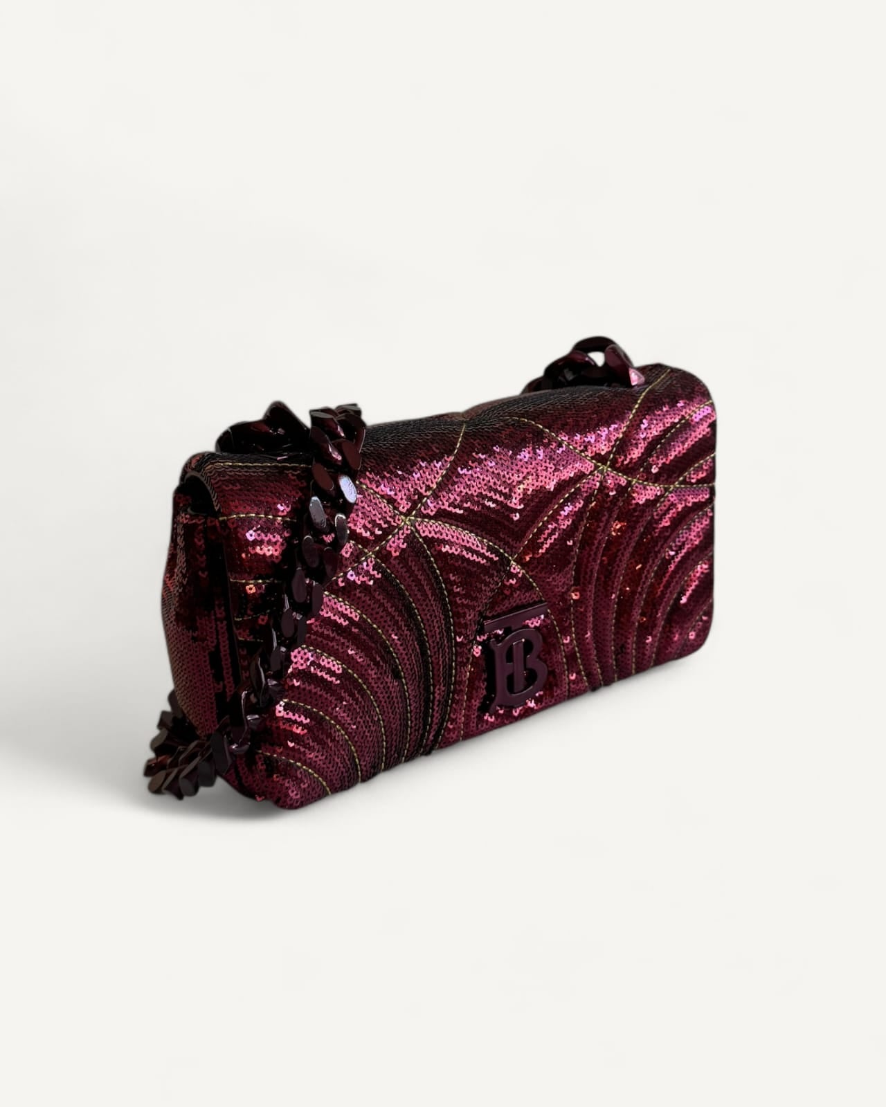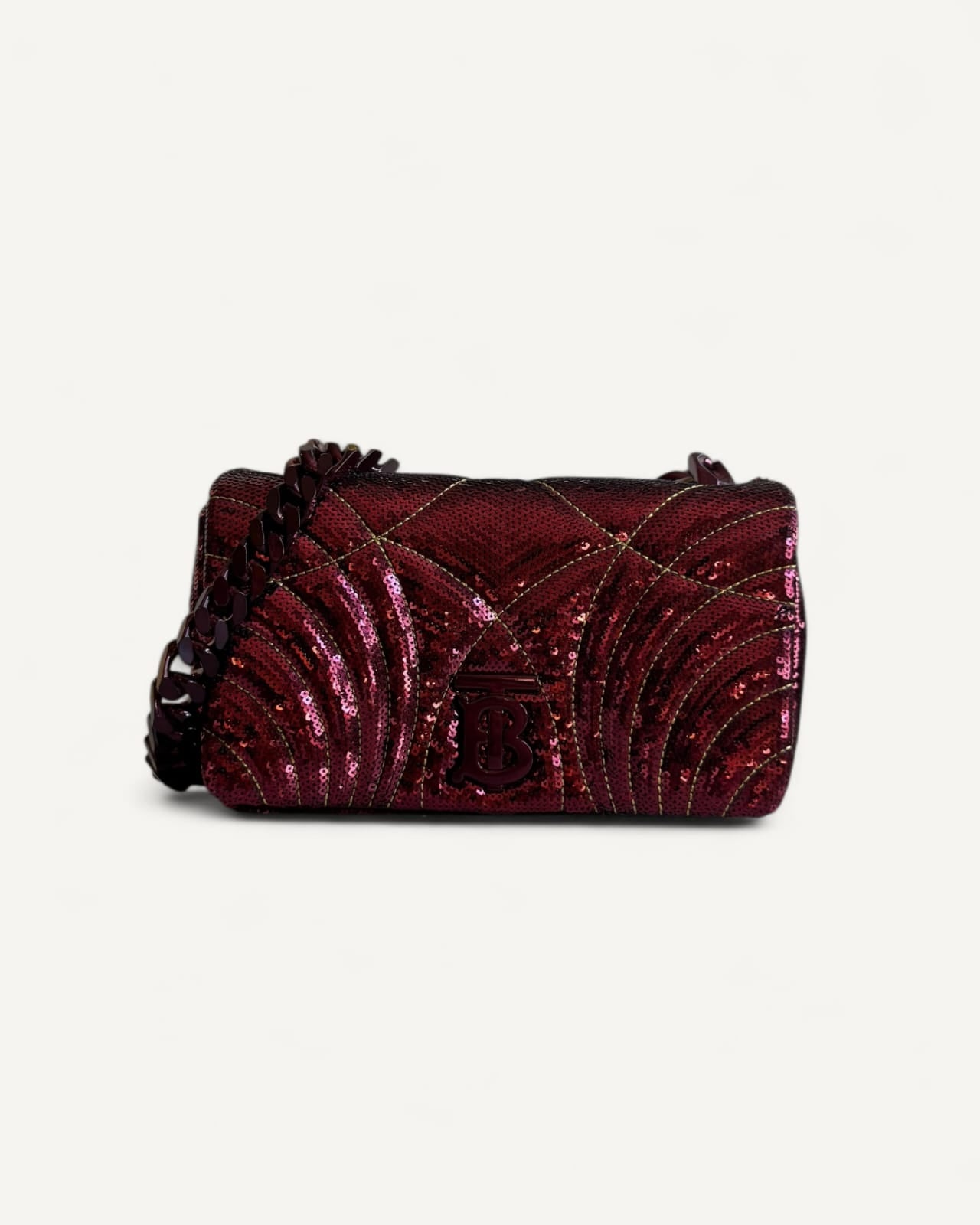 Bolsa Burberry Lola Small Sequinned Leather Burgundy