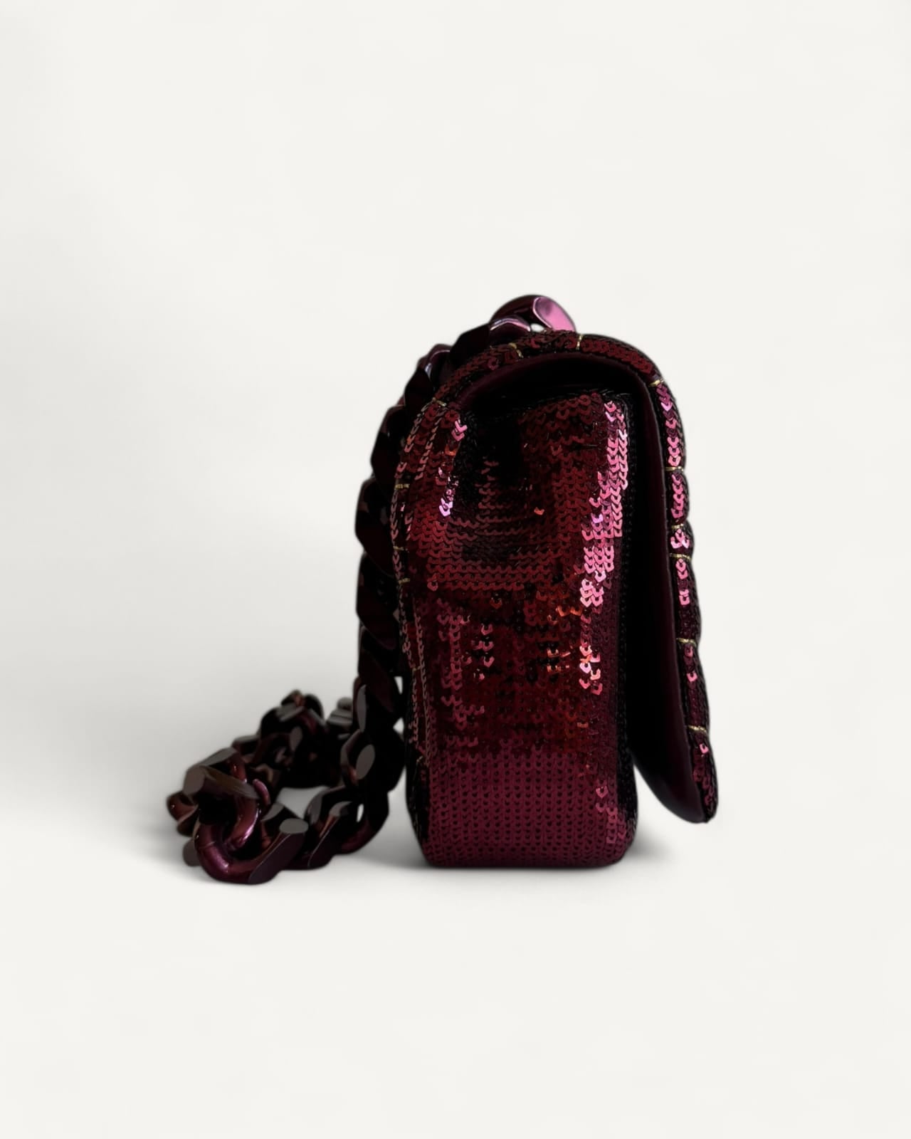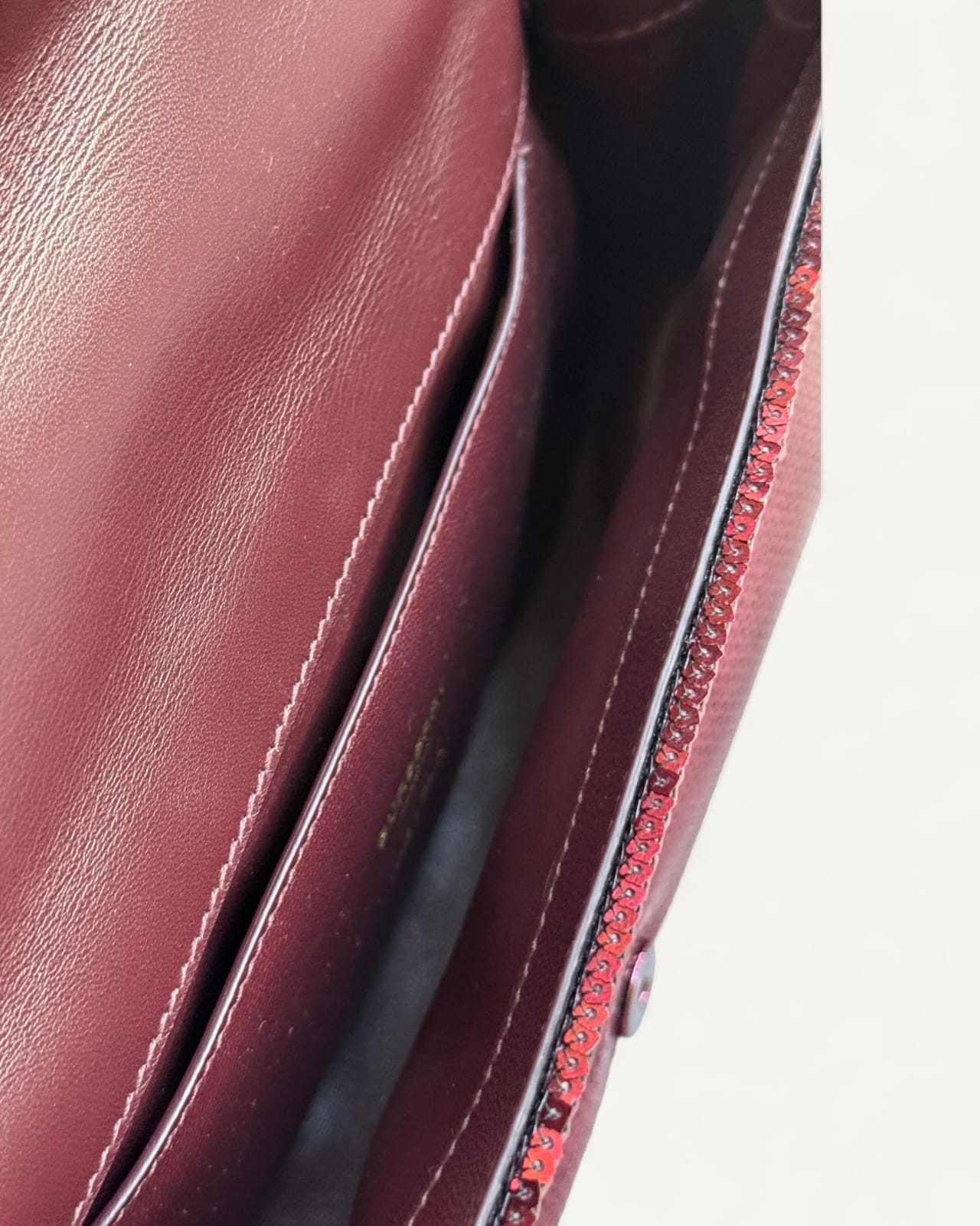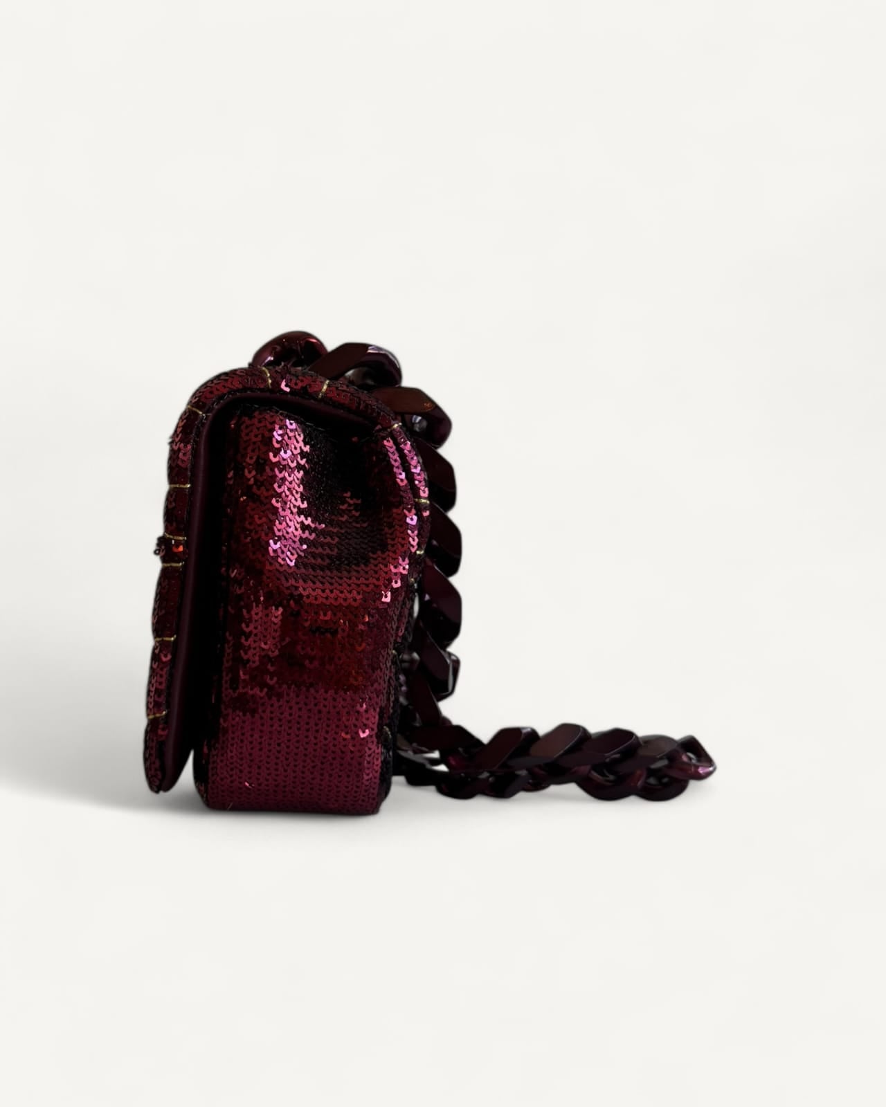 Bolsa Burberry Lola Small Sequinned Leather Burgundy