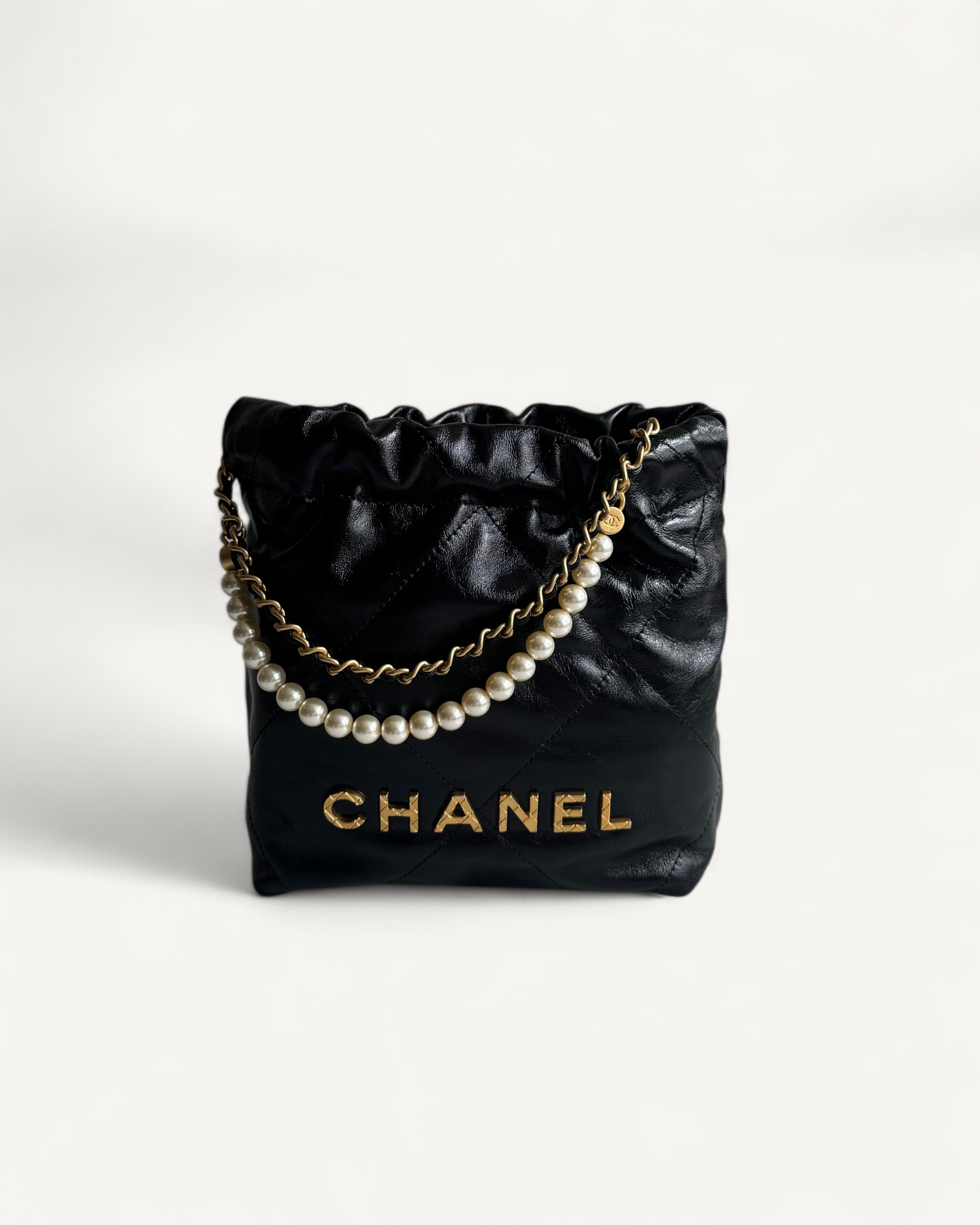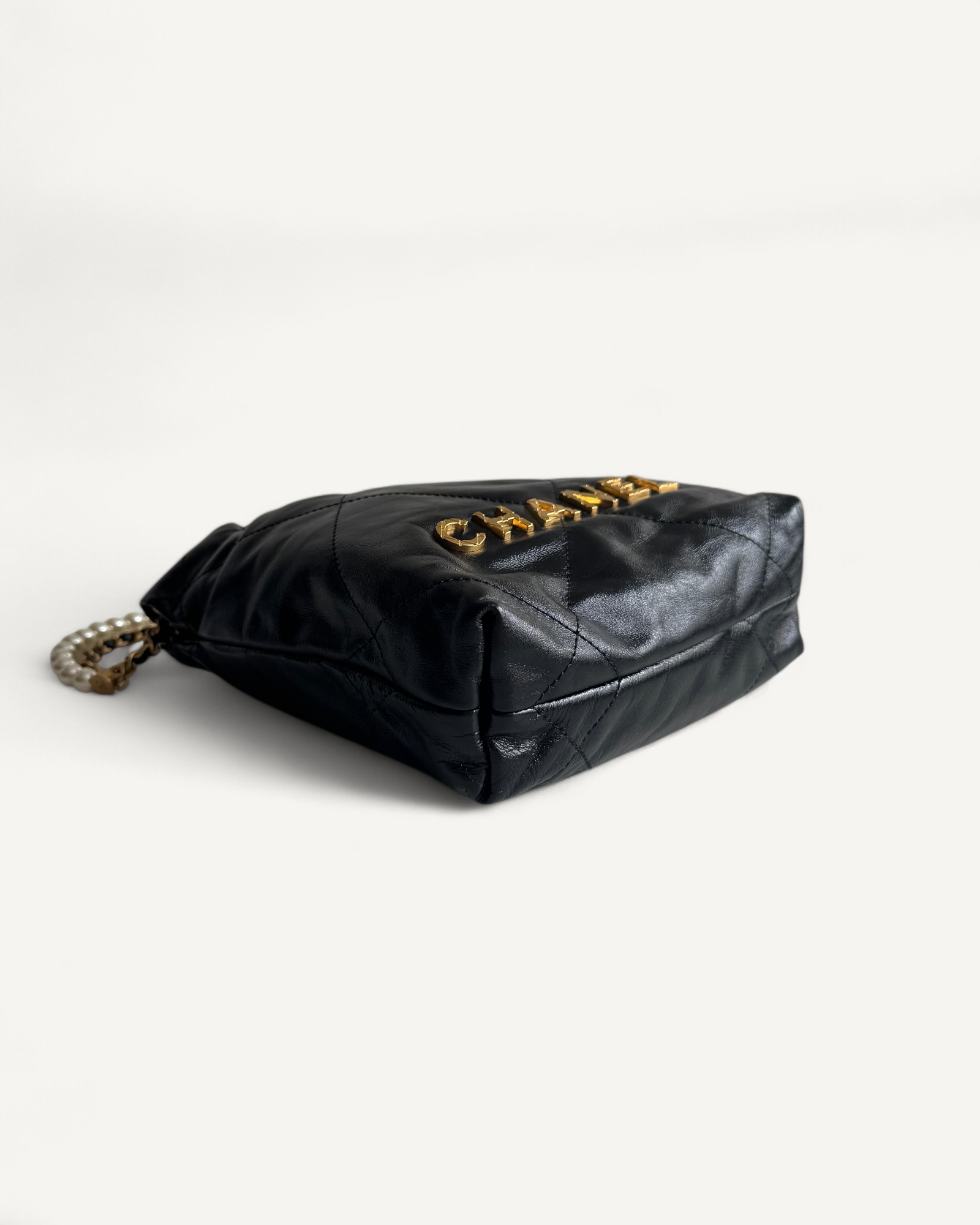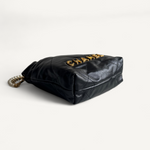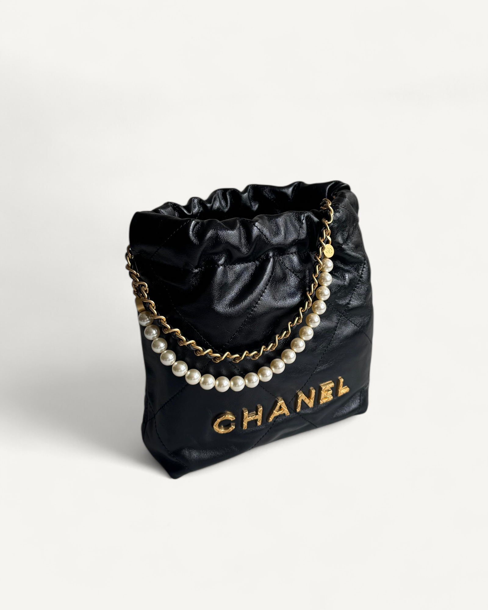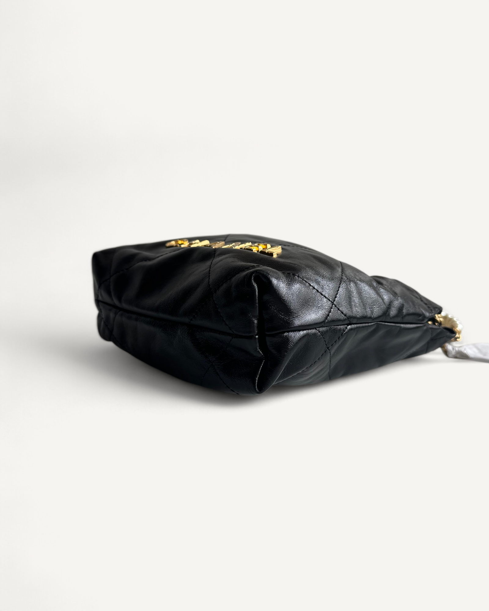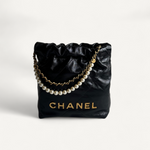 Bolsa Chanel 22 Mini em Couro Calfskin Preta com Ferragens Douradas