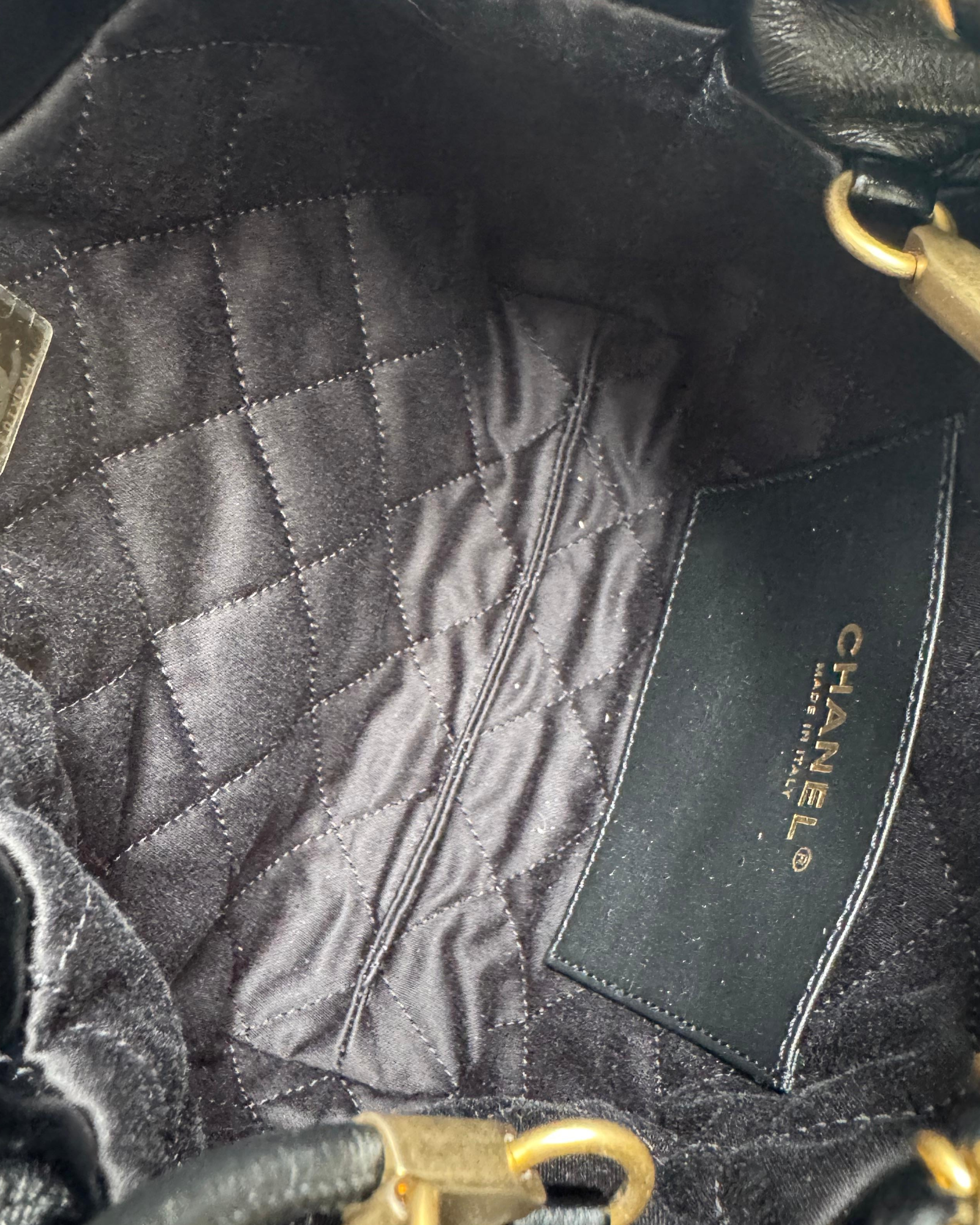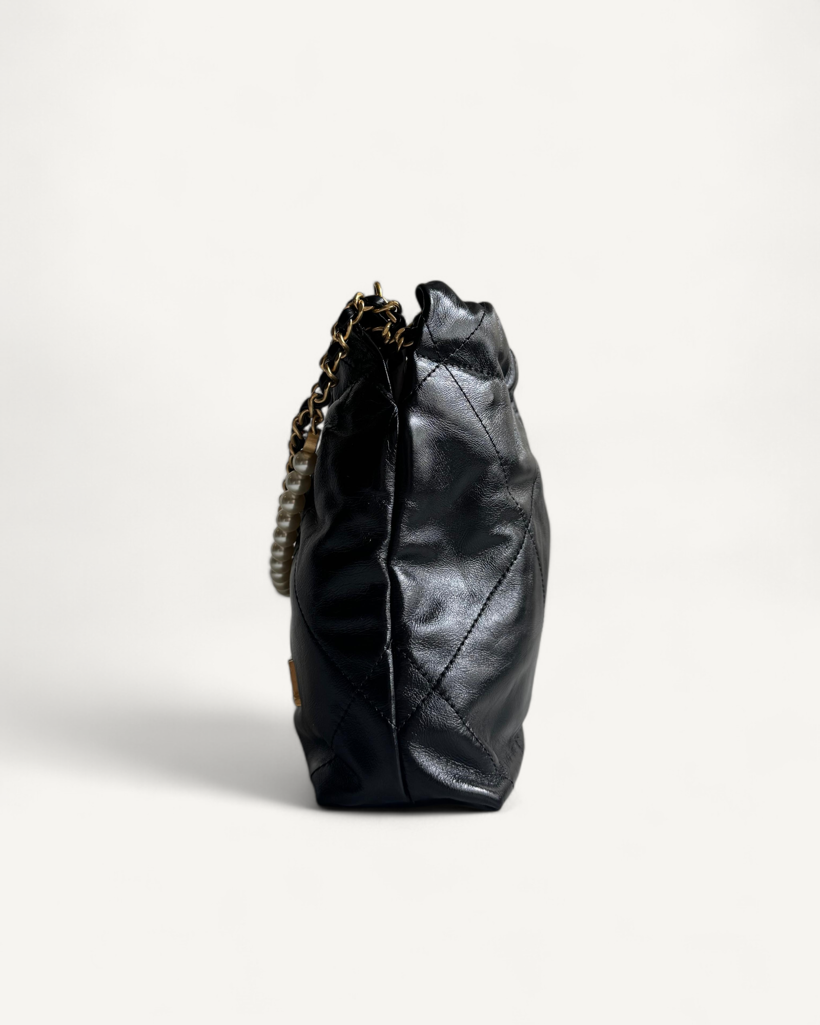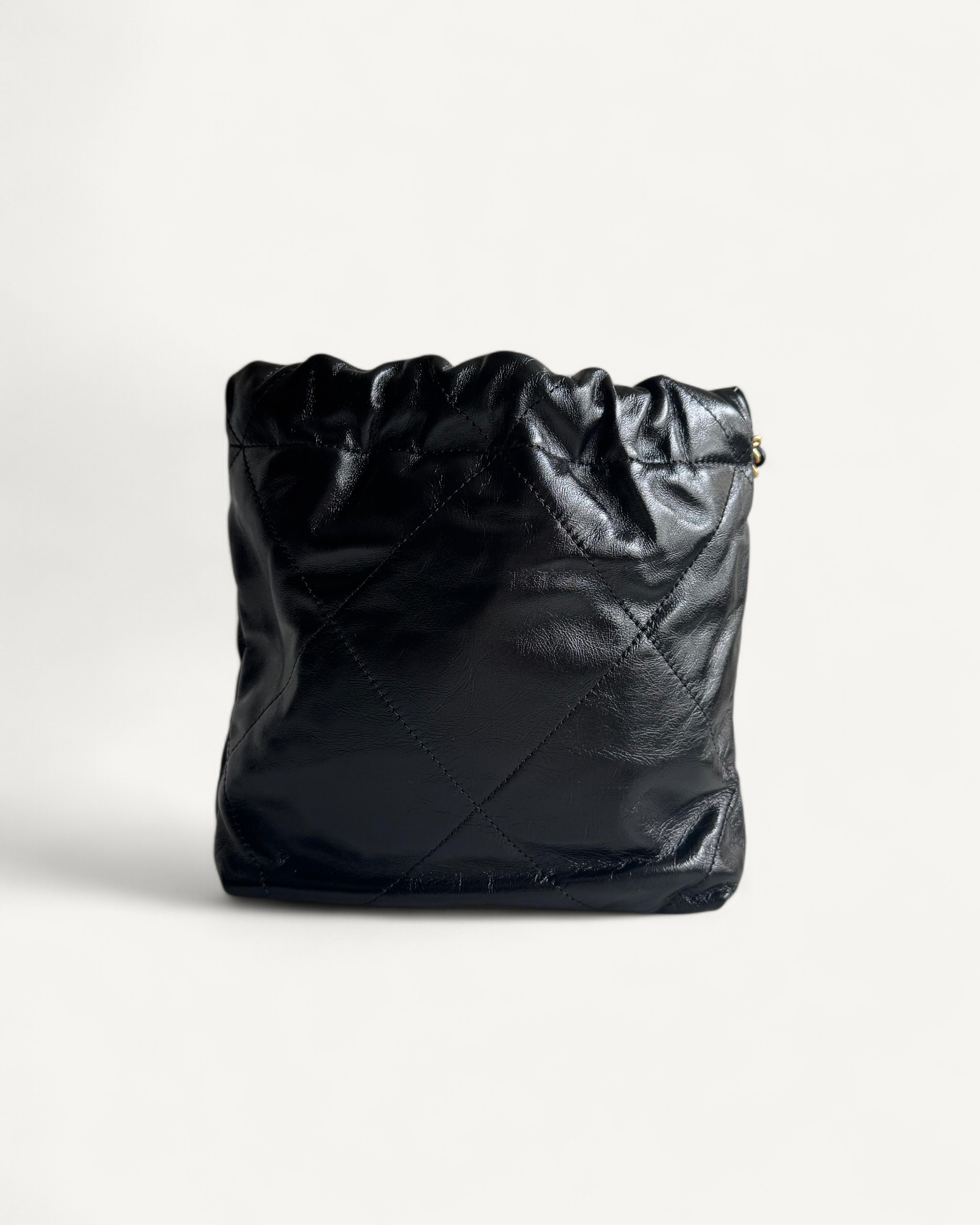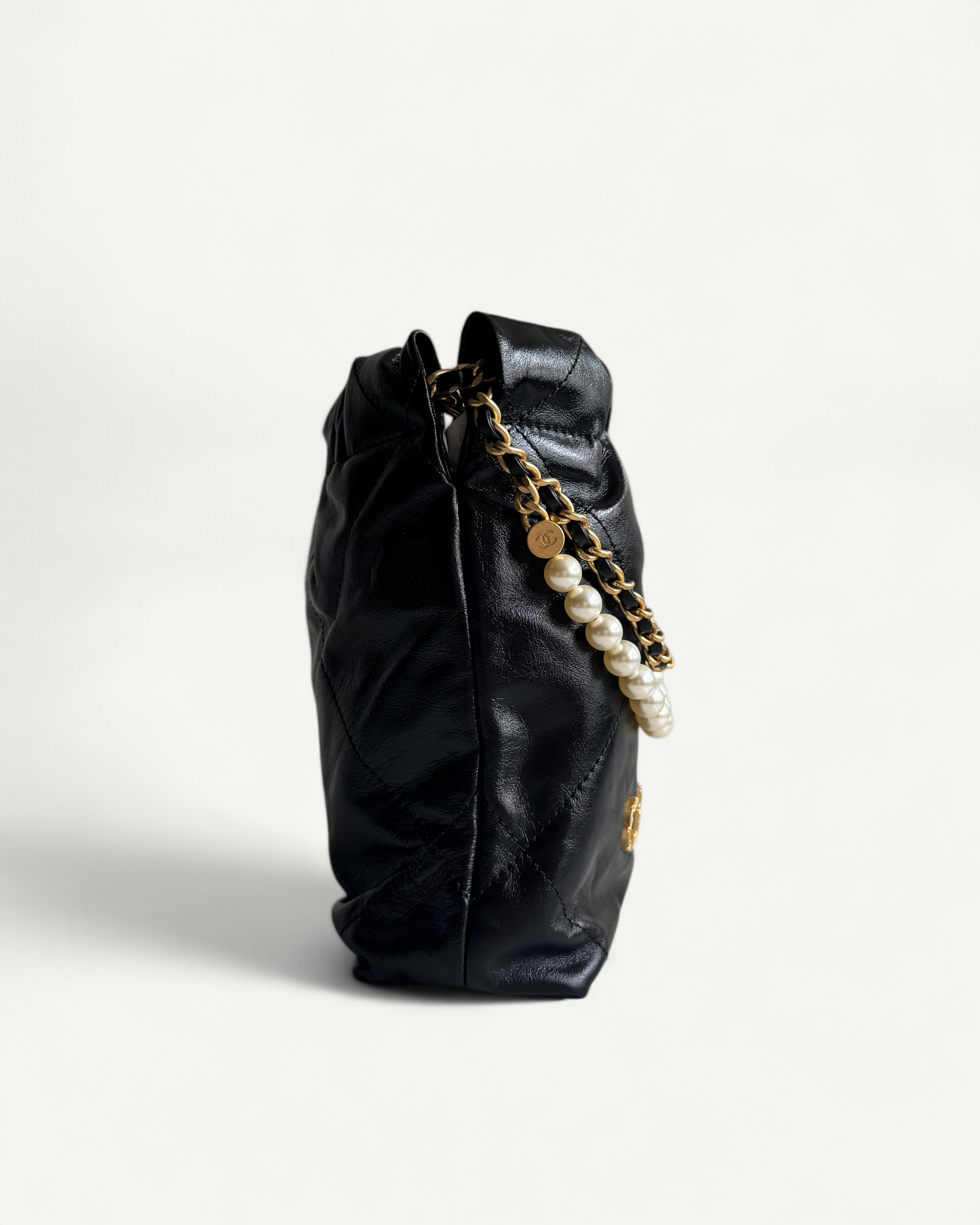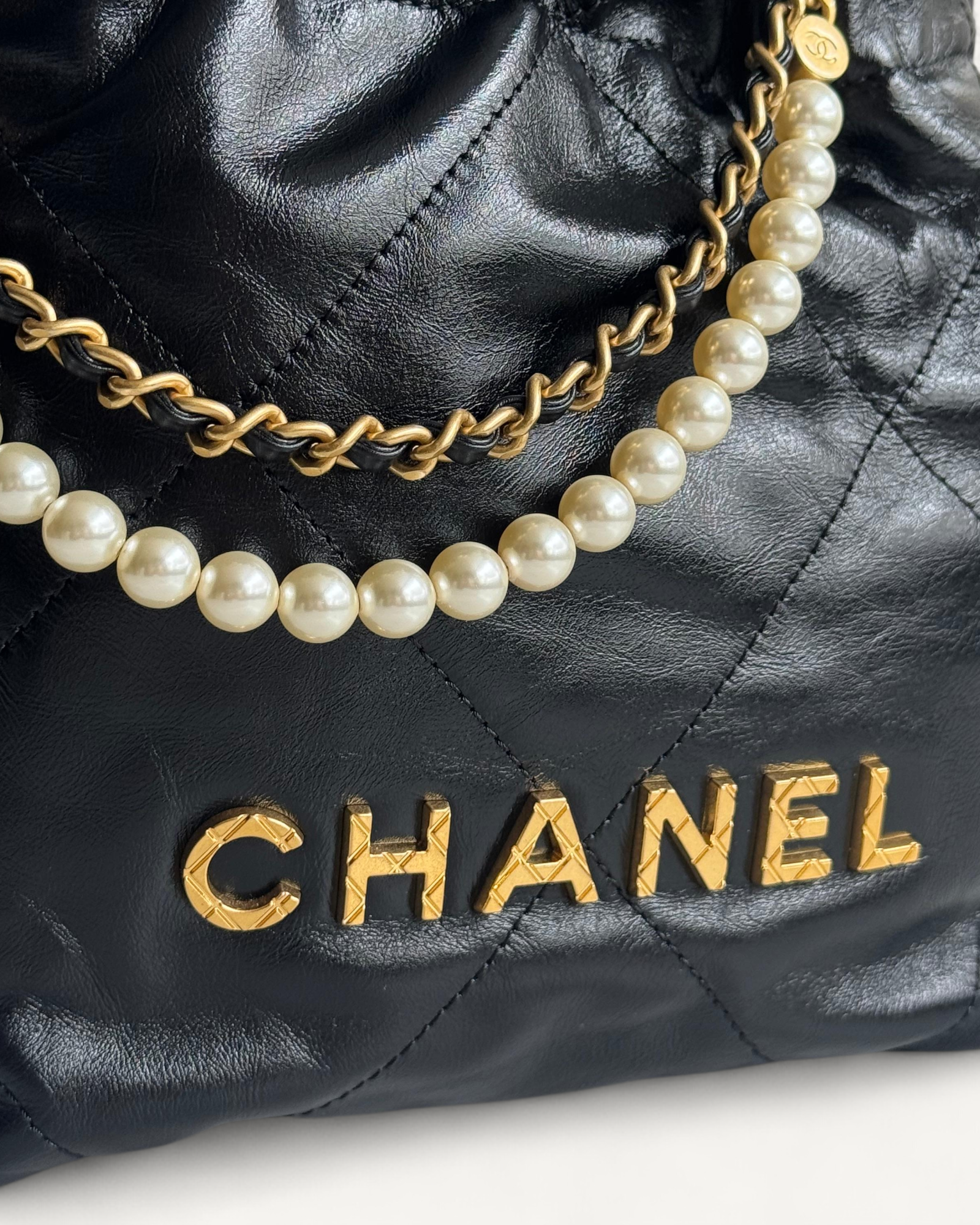 Bolsa Chanel 22 Mini em Couro Calfskin Preta com Ferragens Douradas