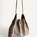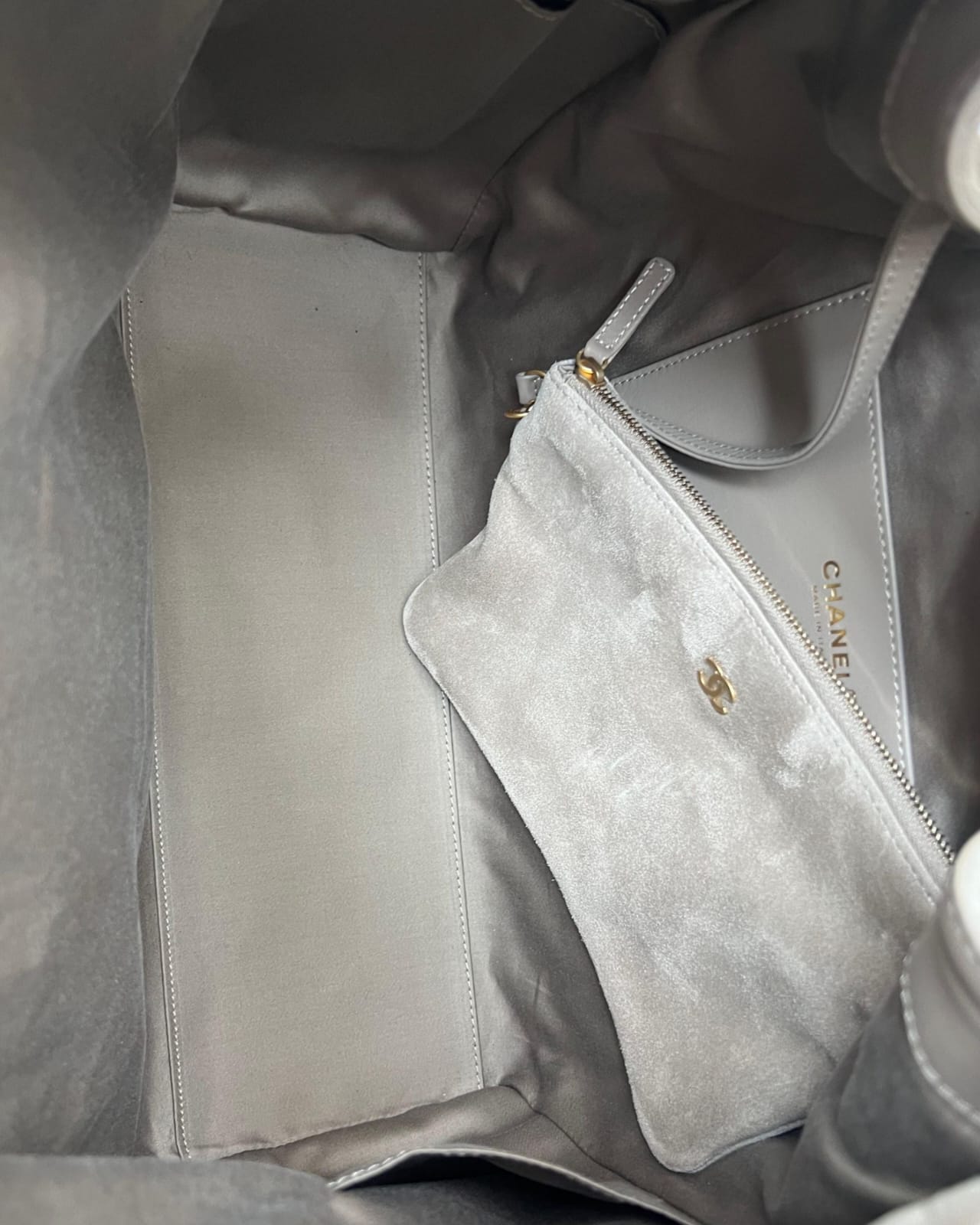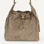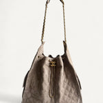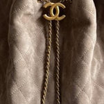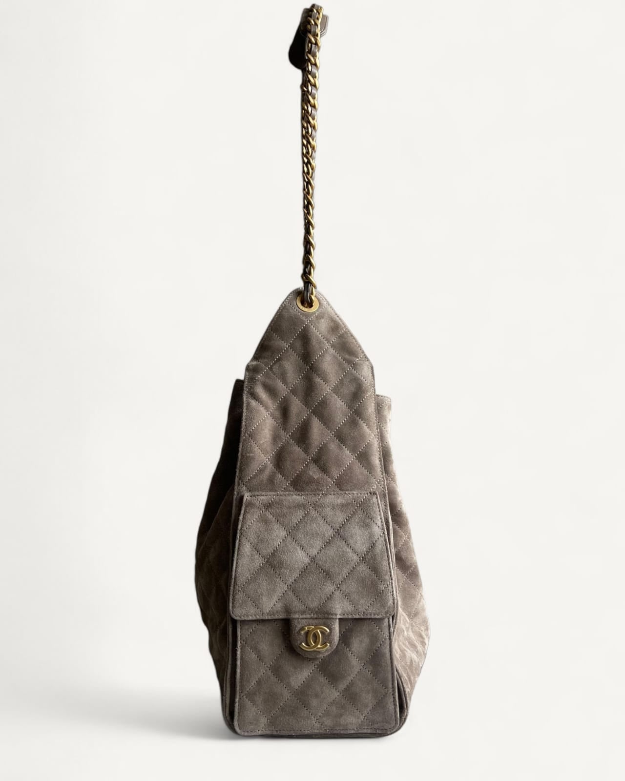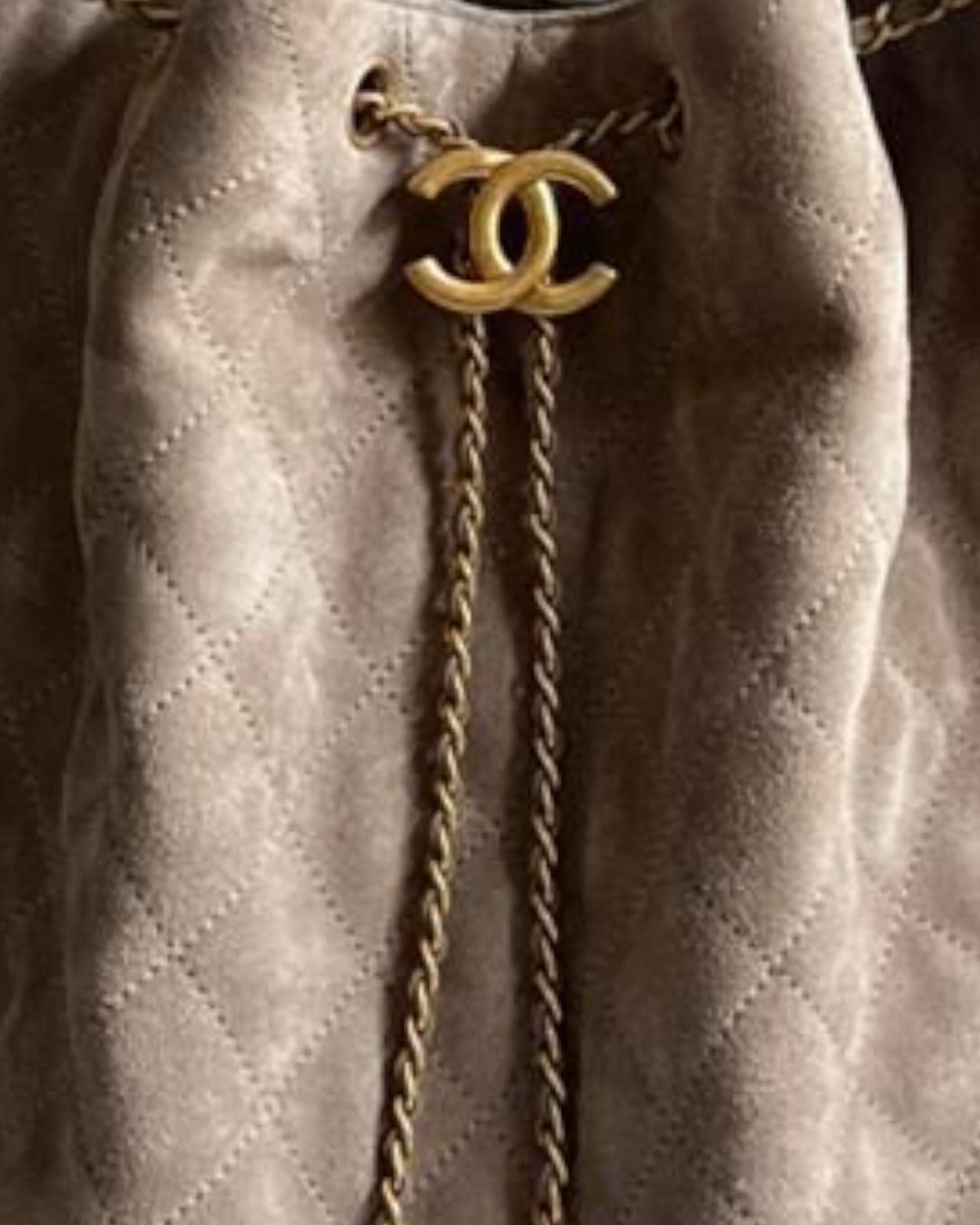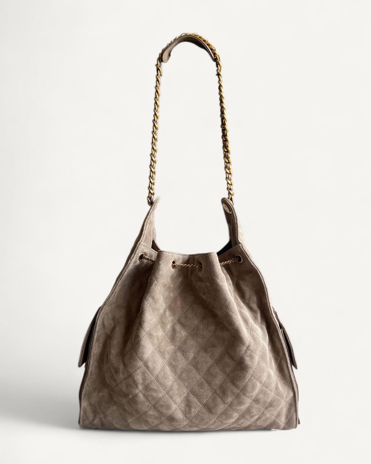 Bolsa Chanel 25 Large Suede Bege com Ferragens Douradas