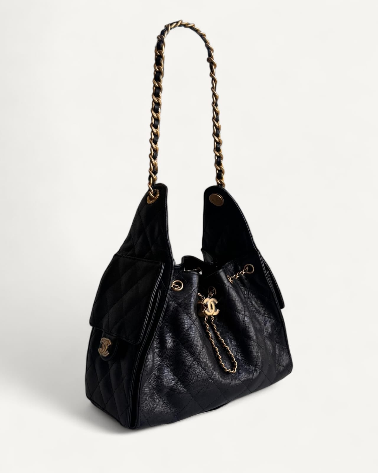 Bolsa Chanel 25 Small Preta com Ferragens Douradas