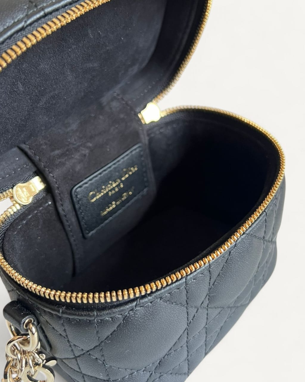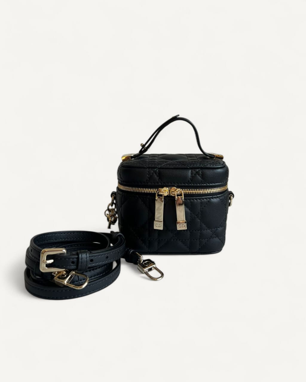 Bolsa Christian Dior Vanity Case Small Preta com Ferragens Douradas